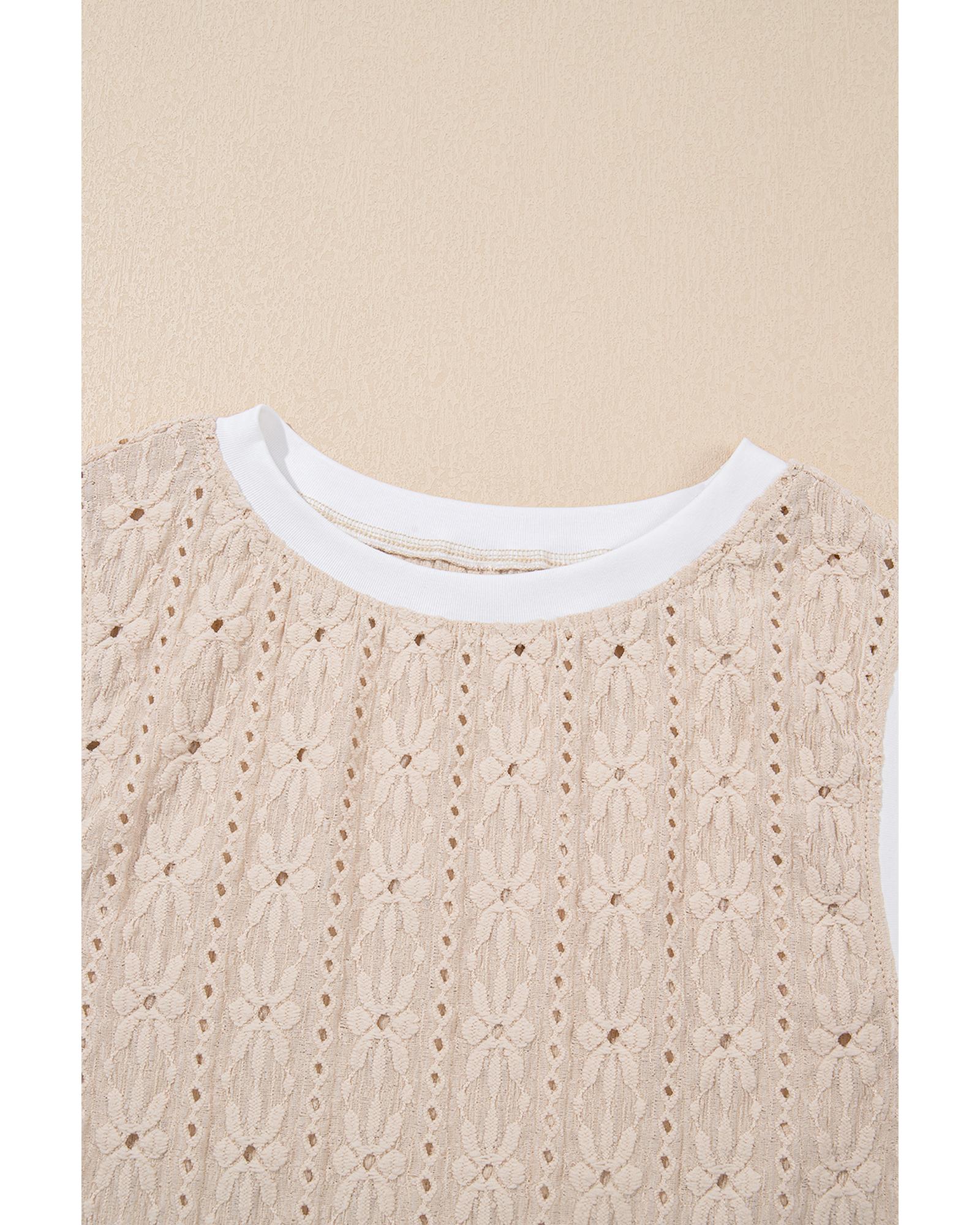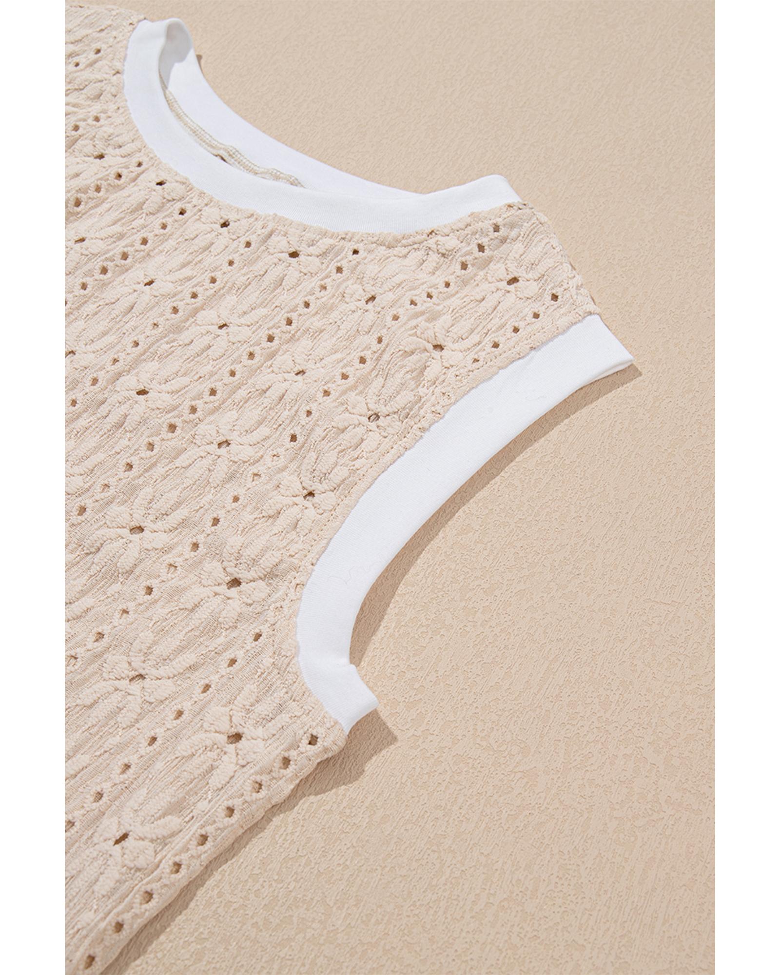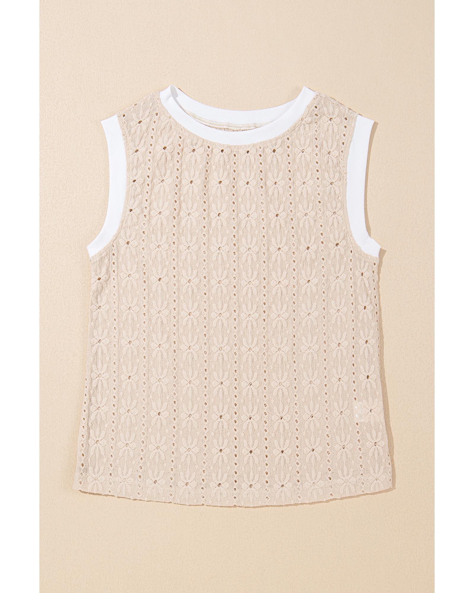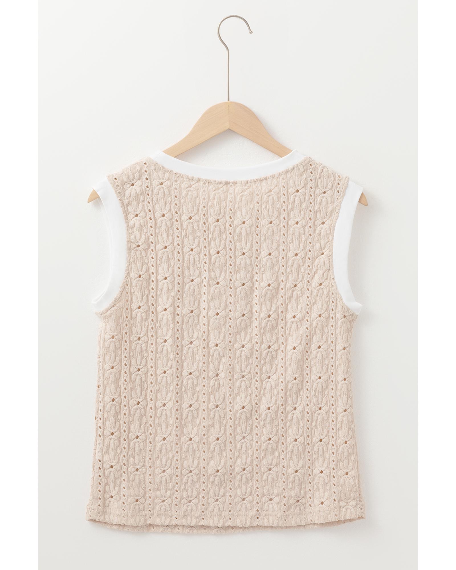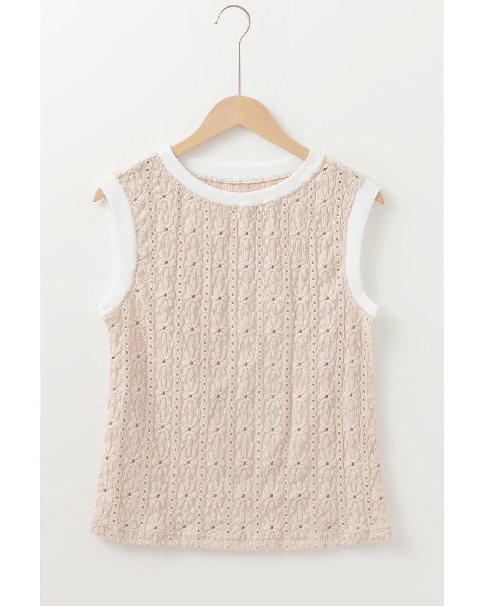 Oatmeal Floral Textured Crew Neck Tank Top – M