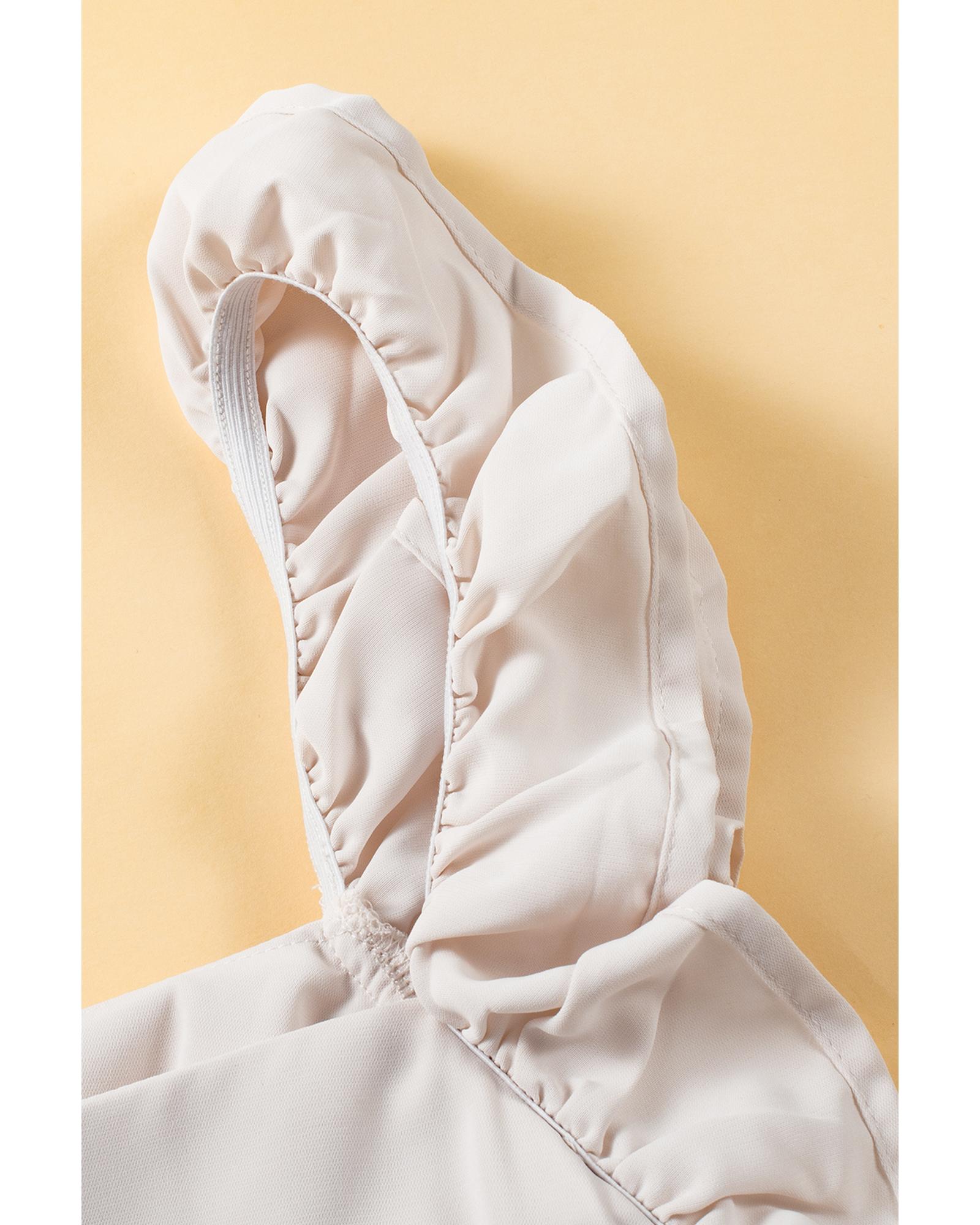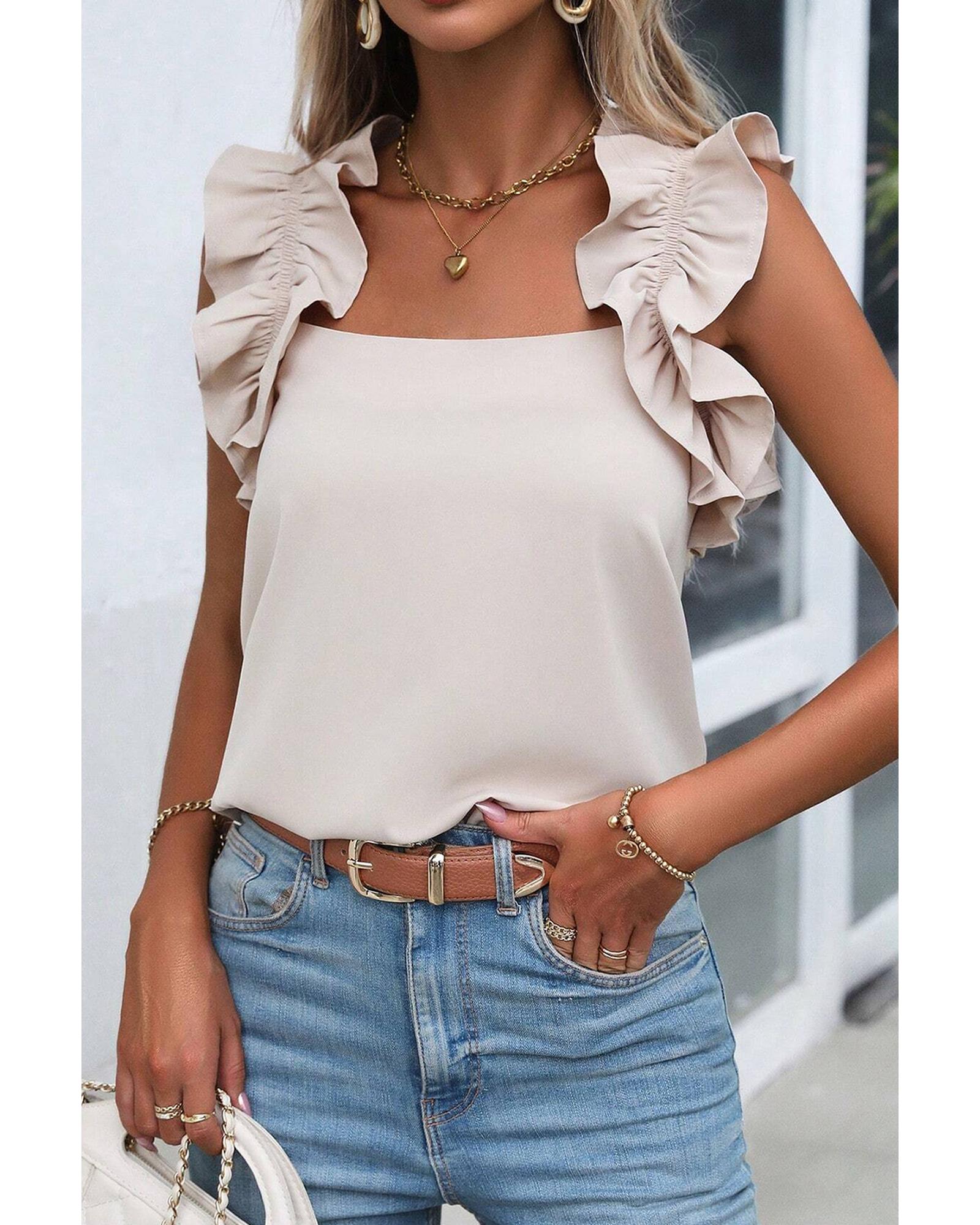 Oatmeal Solid Ruffle Trim Sleeveless Top – L