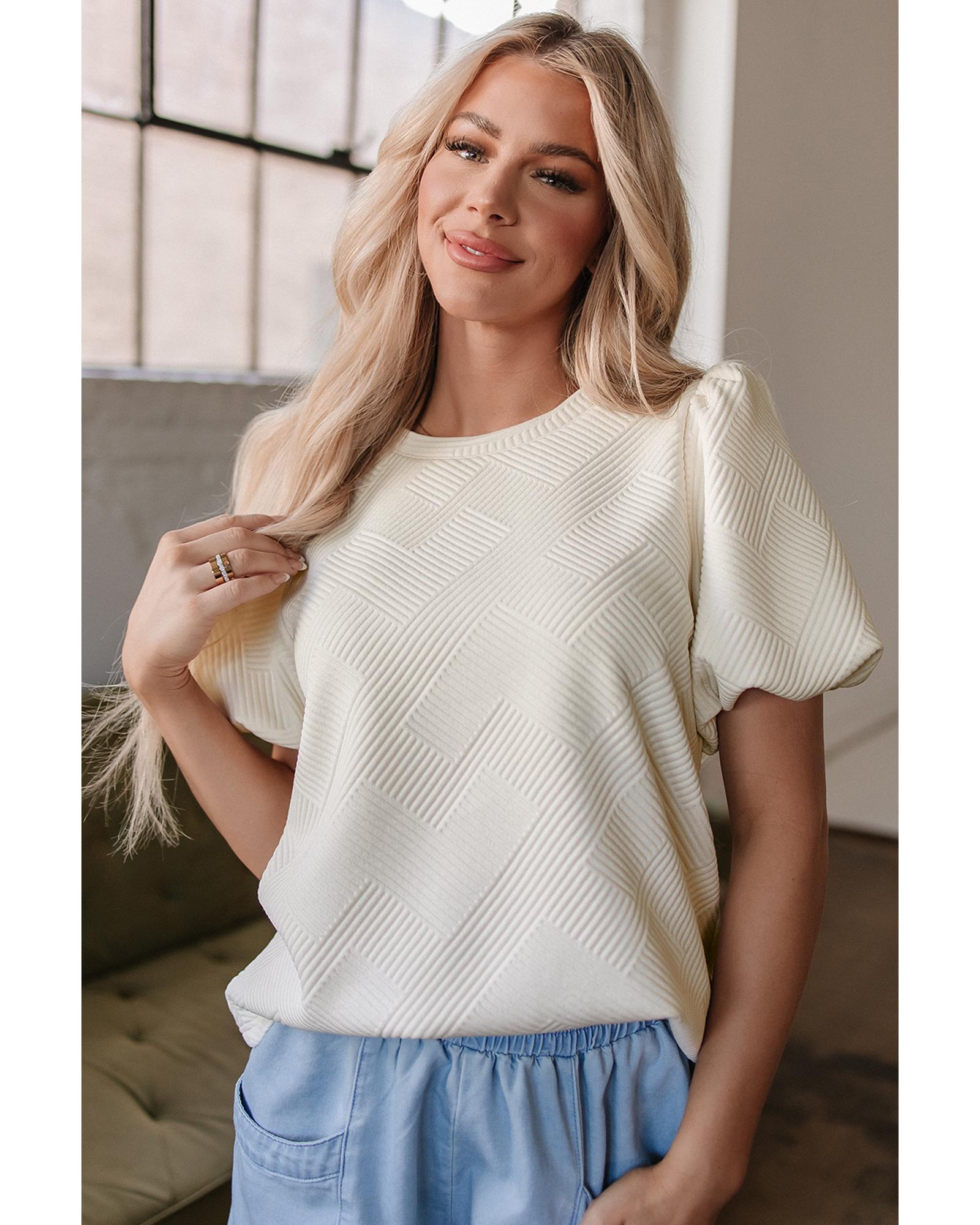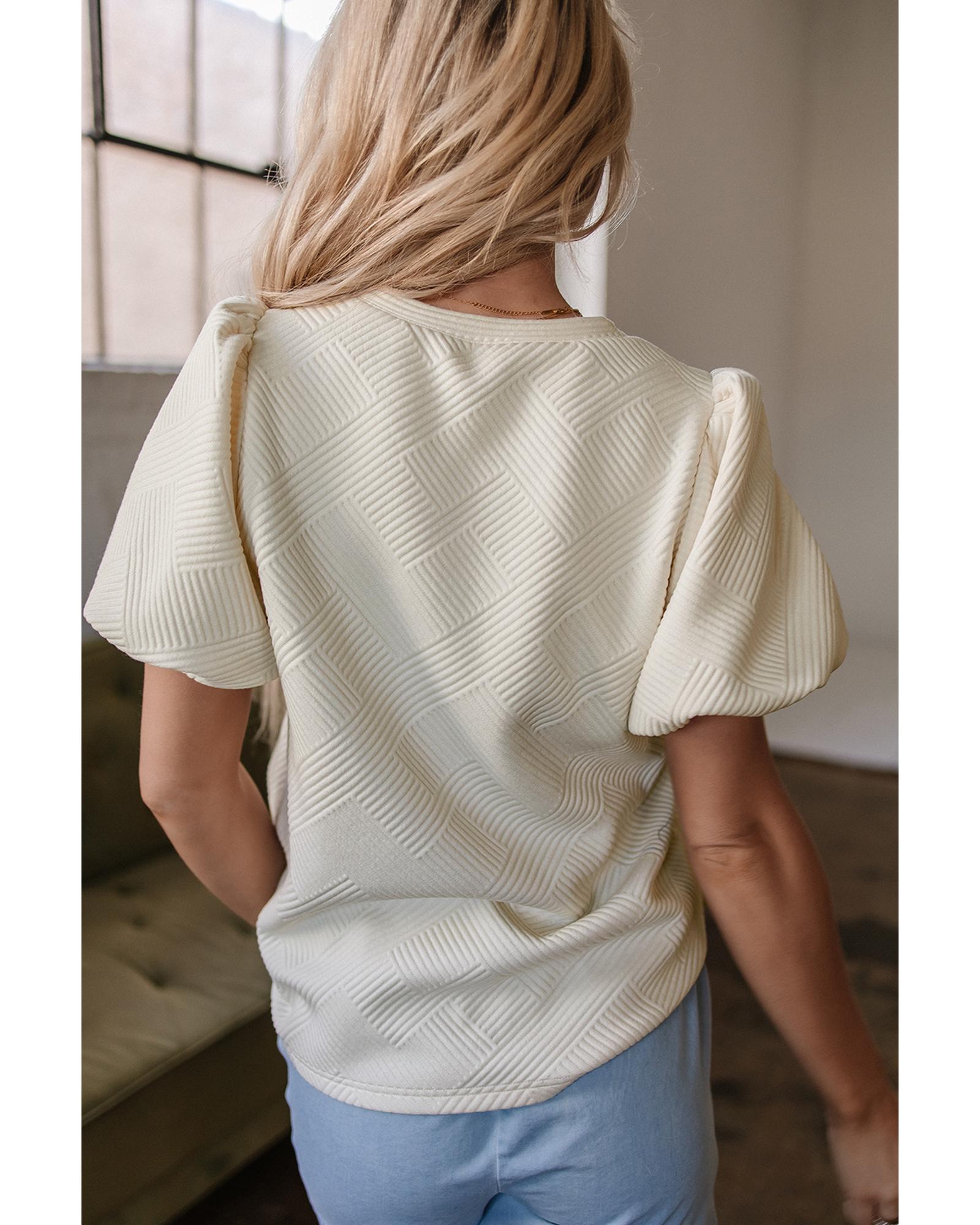 Oatmeal Textured Puff Sleeve T-shirt – S