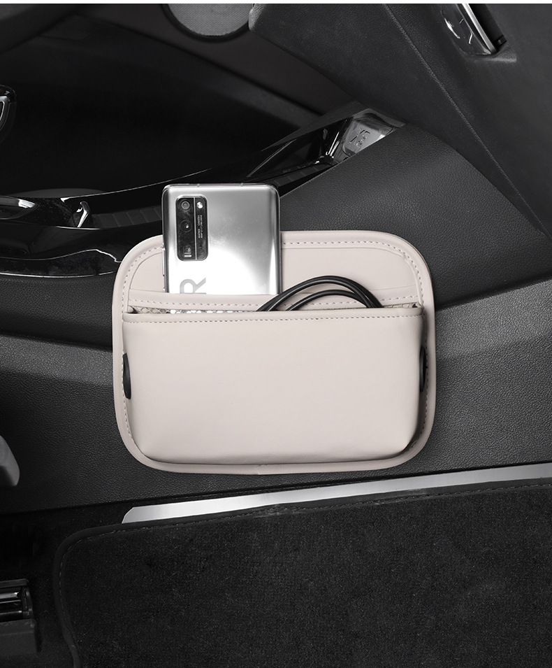 Keep your car neat and organized with this premium PU leather storage bag. Designed for versatility, it easily attaches to car doors, armrests, or central consoles, providing a convenient space for storing phones, keys, and other small accessories.