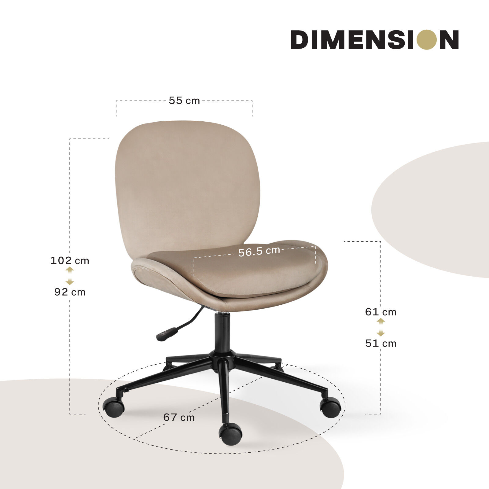 Office Desk Chair – Velvet Armless Swivel Study Seat OVOID PALE KHAKI