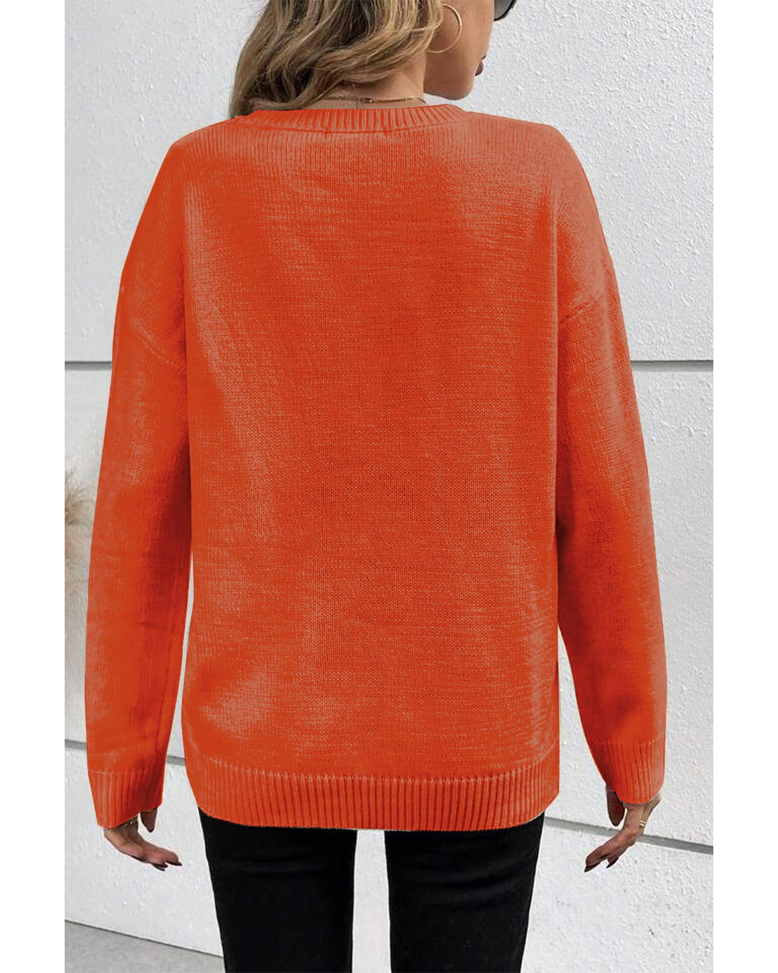 Orange Boo Knitted Pattern Ribbed Edge Drop Shoulder Sweater – S