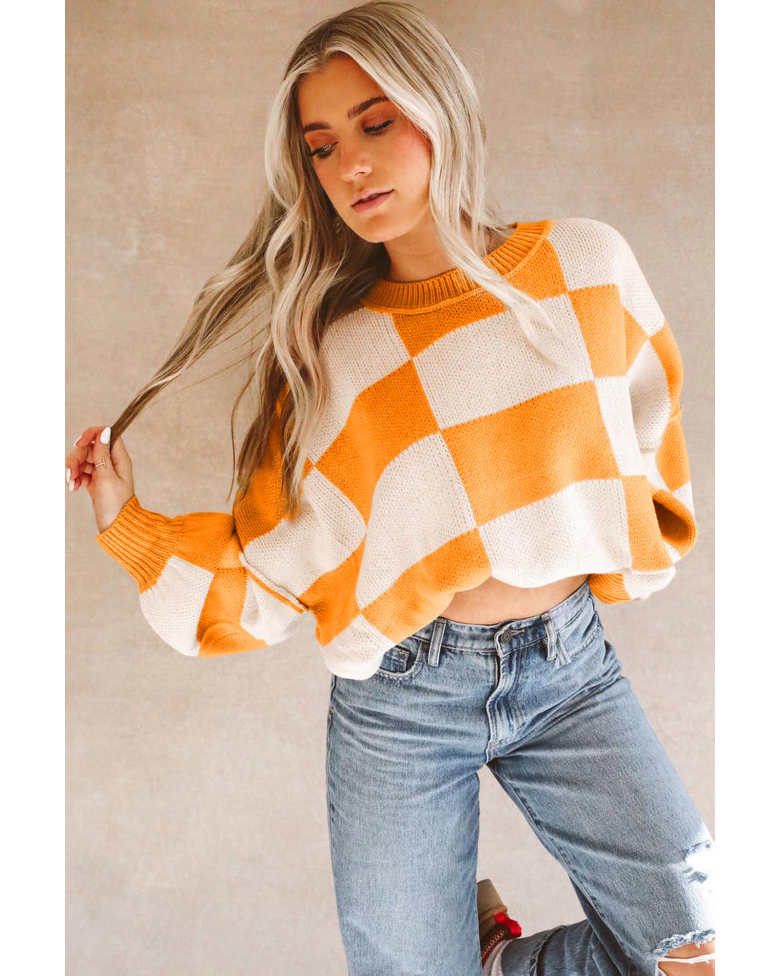 - Orange checkered sweater