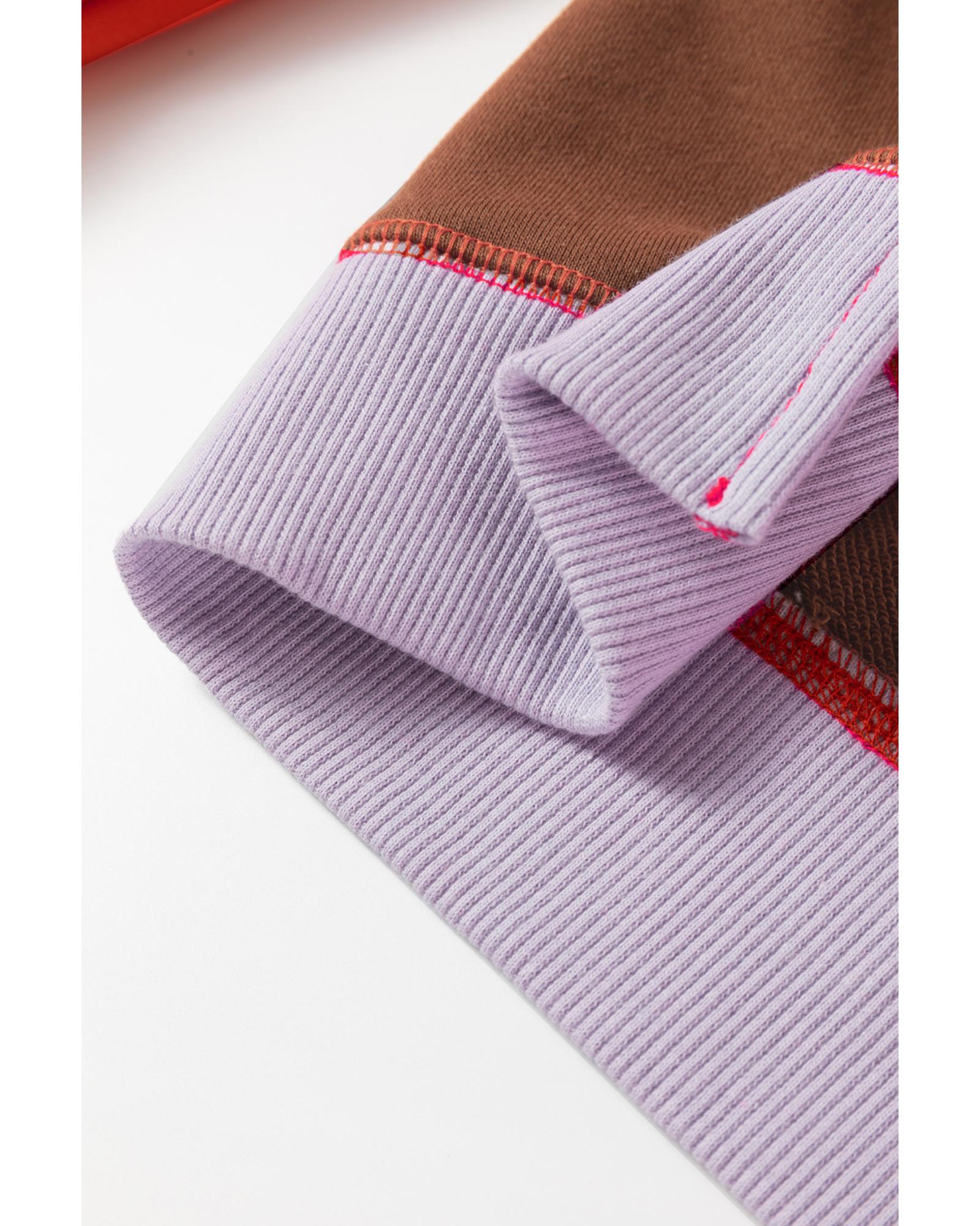 Orange Color Block Side Slits Raglan Sleeve Loose Fit Top – S