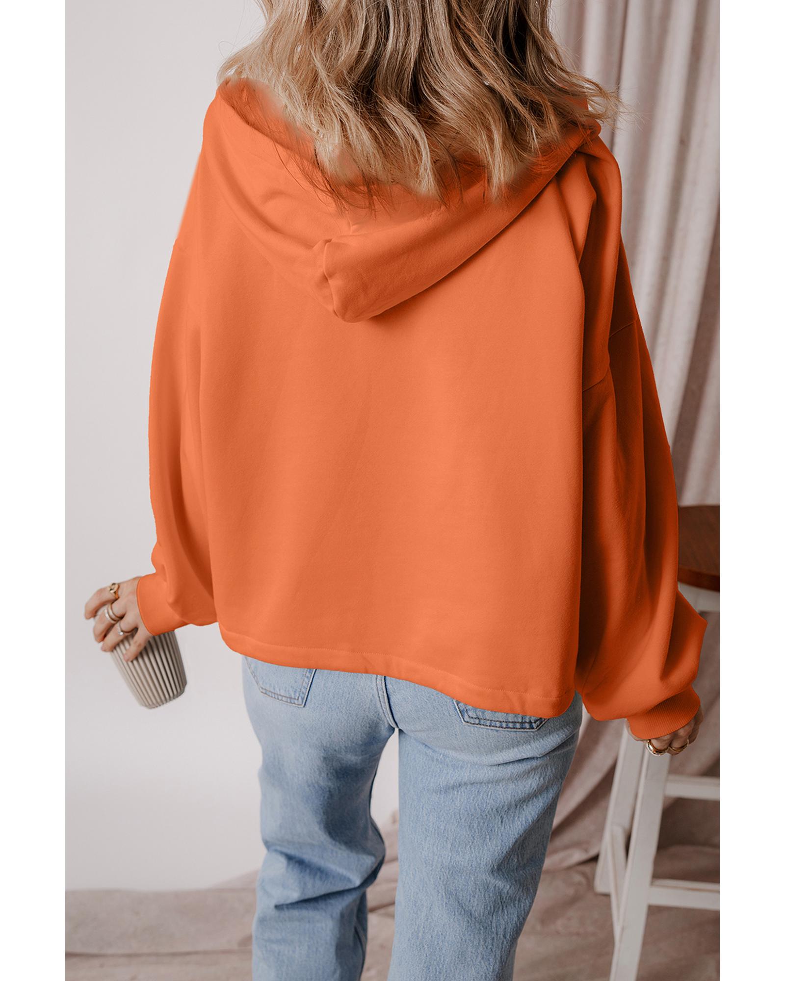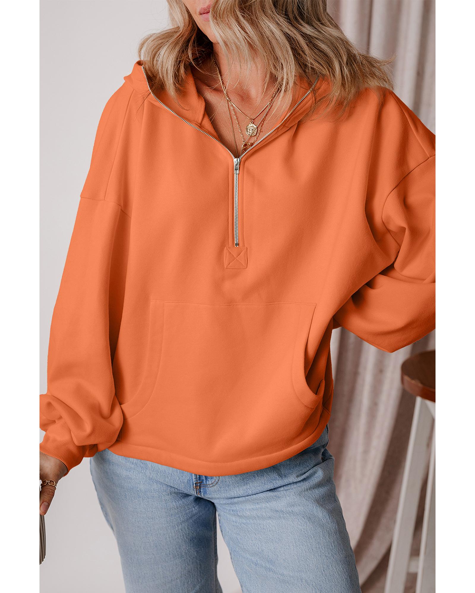 Orange Fleece Lined Half Zipper Kangaroo Pockets Loose Hoodie – L