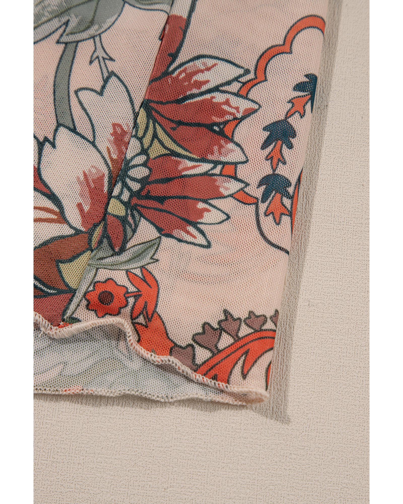 Orange Floral Print Deep V Neck Knot Bell Sleeve Blouse – S