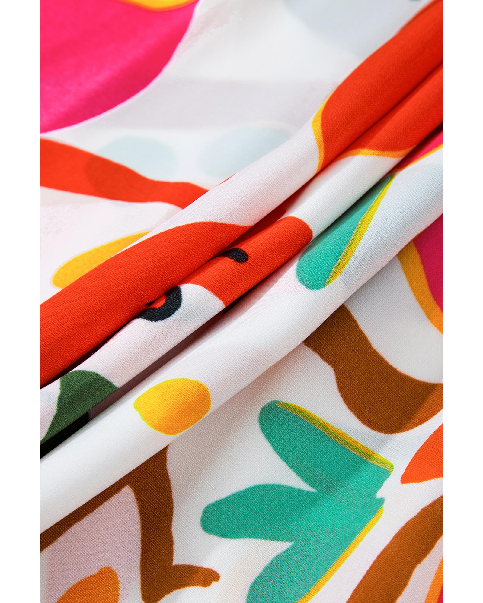 Orange Floral Print Drawstring V Neck Tiered Plus Size Dress – 2X