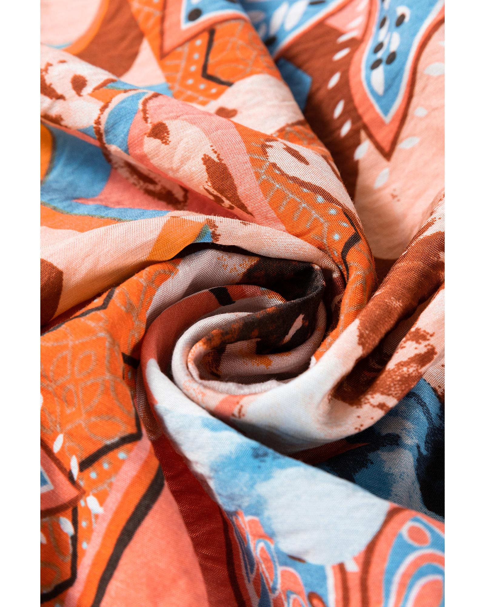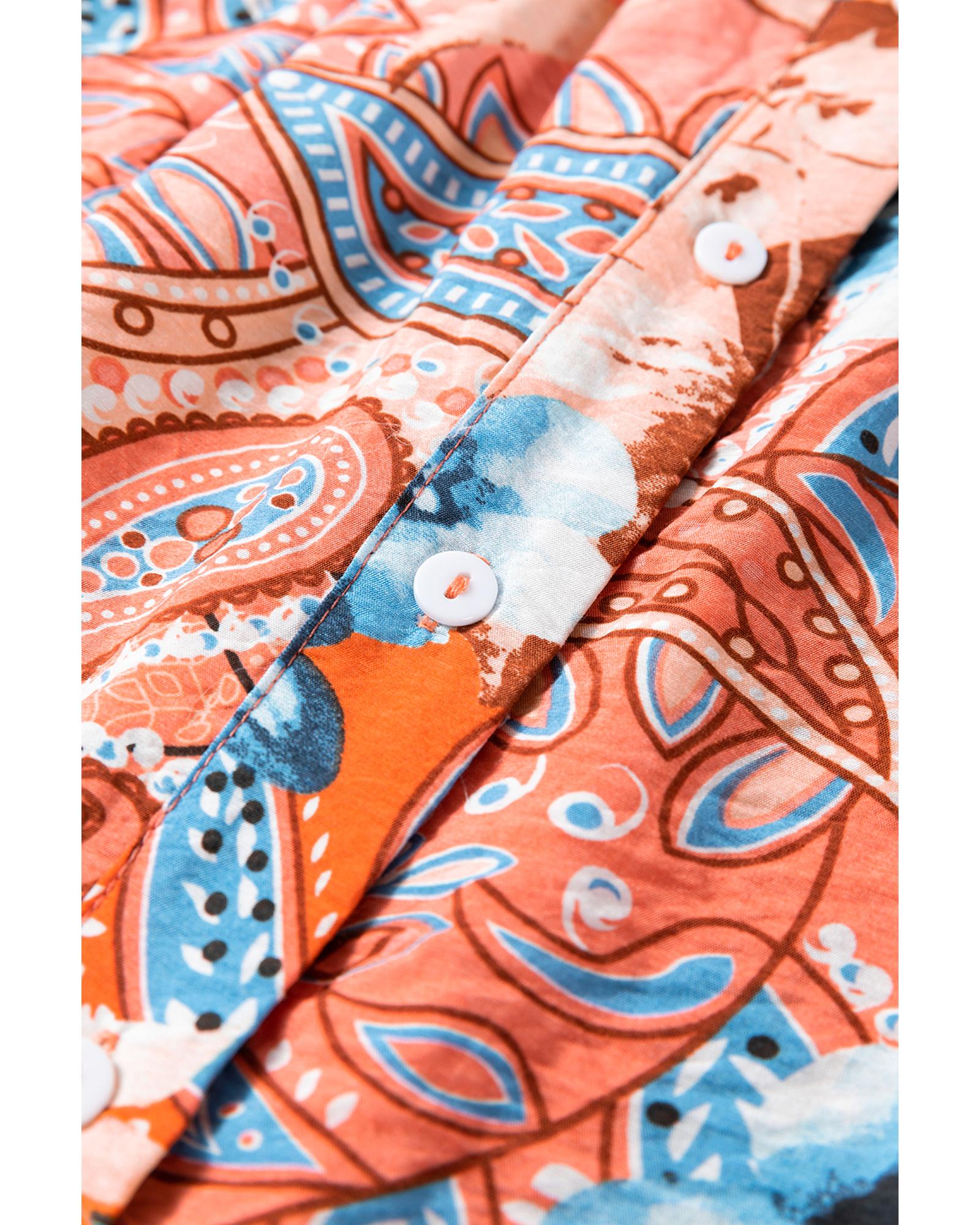 Orange Floral Print Shirred Cuff Buttoned Loose Shirt – XL