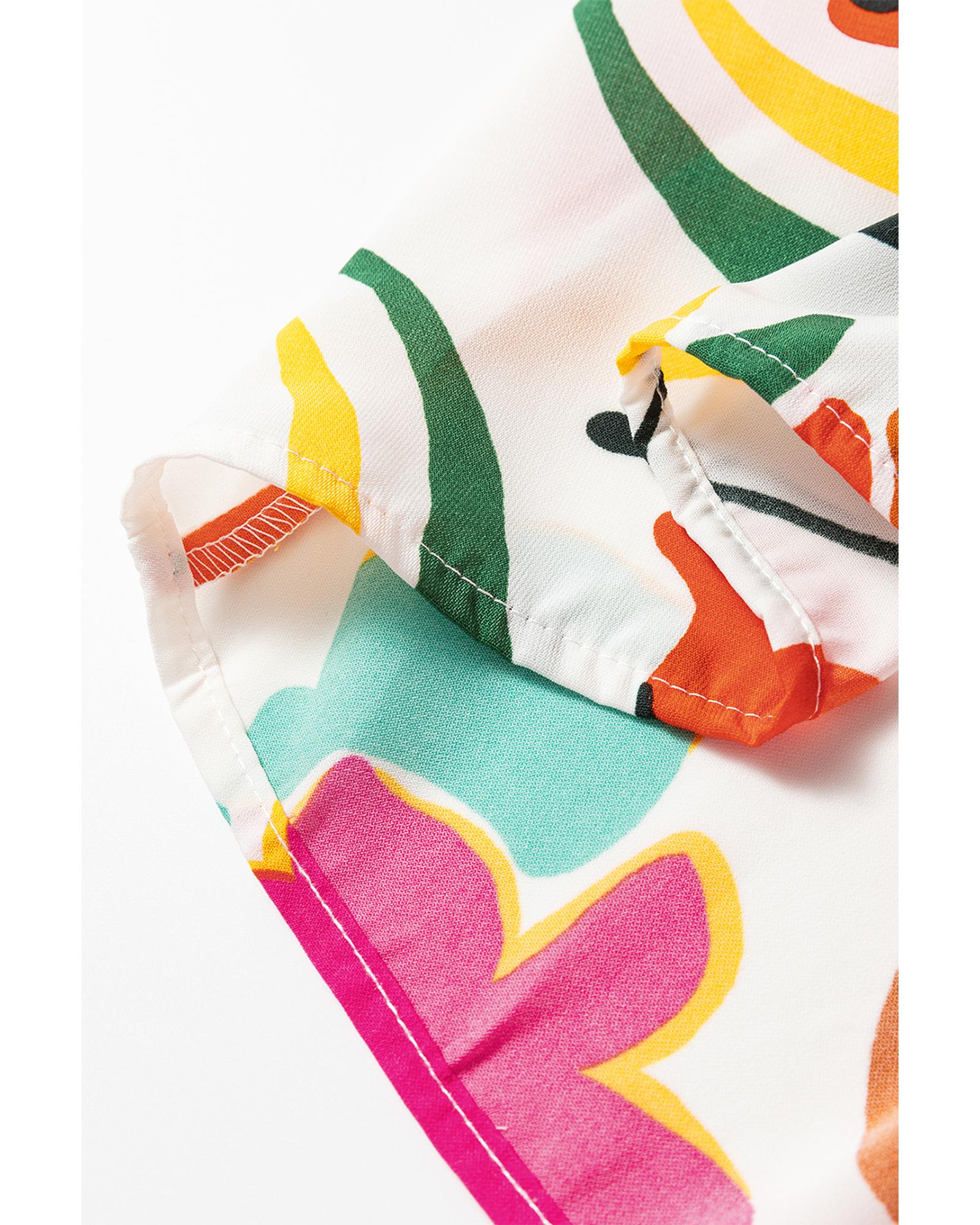 Pink Floral Shirred Puff Sleeve Buttoned Front Midi Dress with Sash - M