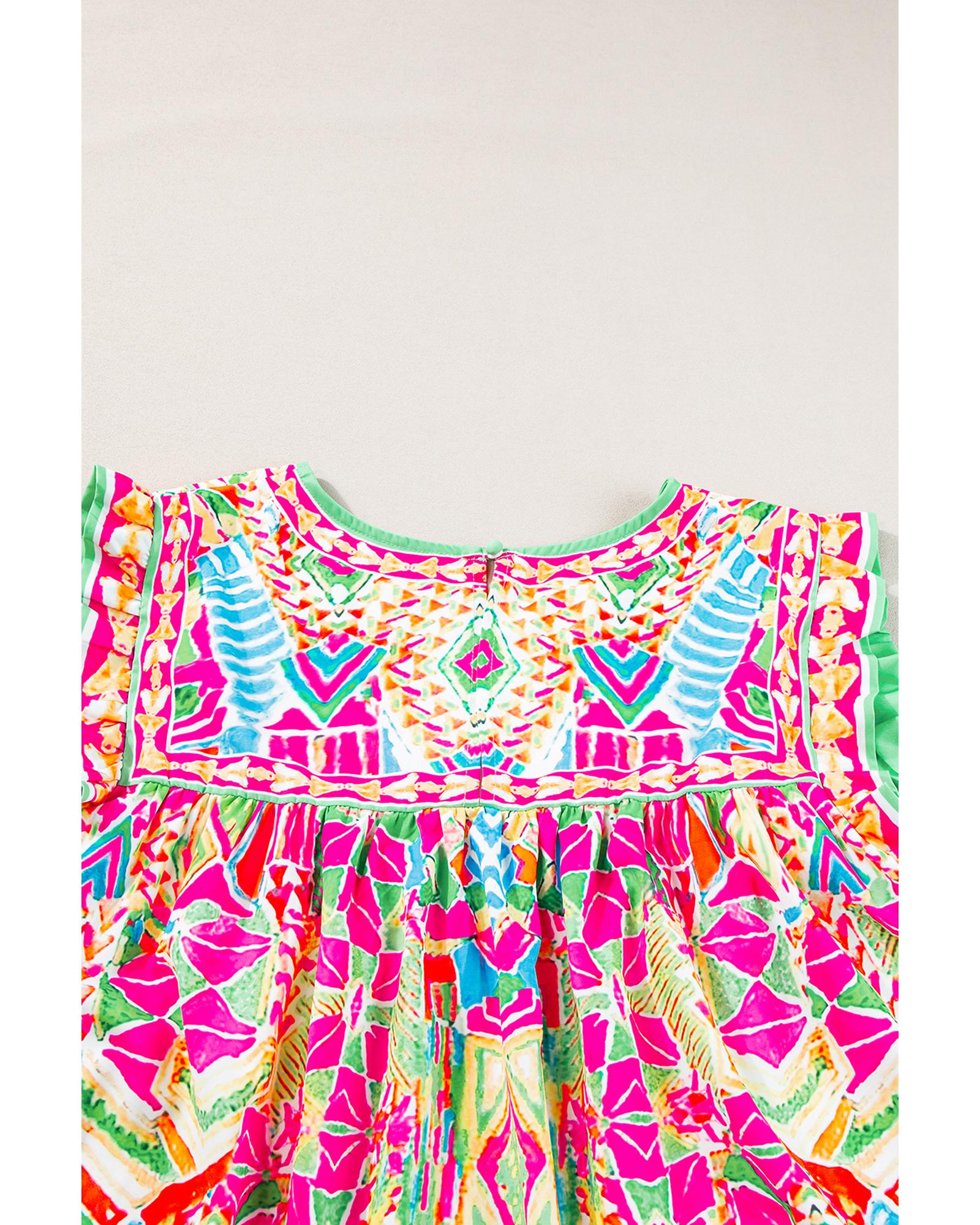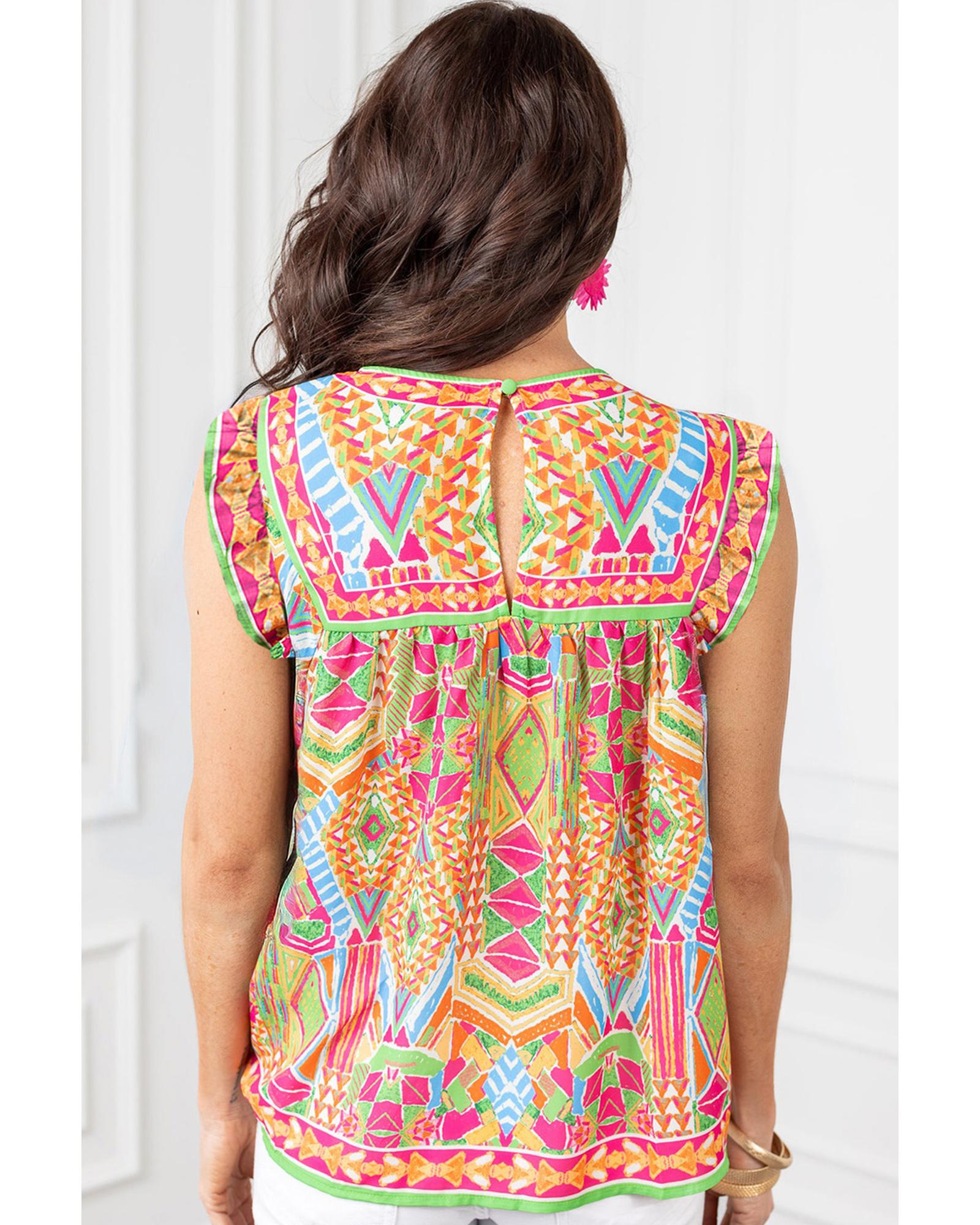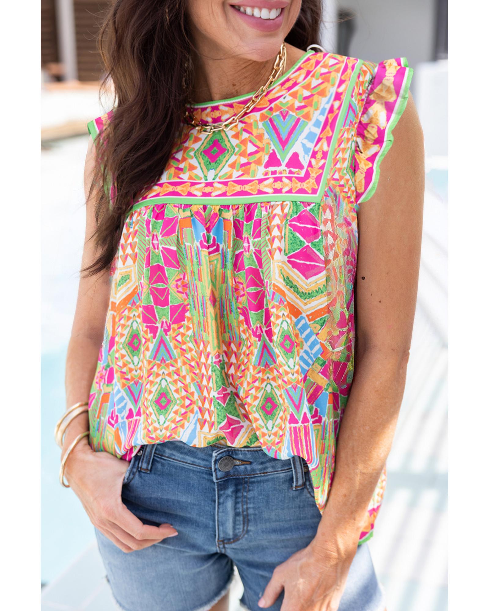 Orange Geometric Print Ruffled Trim Tank Top – M