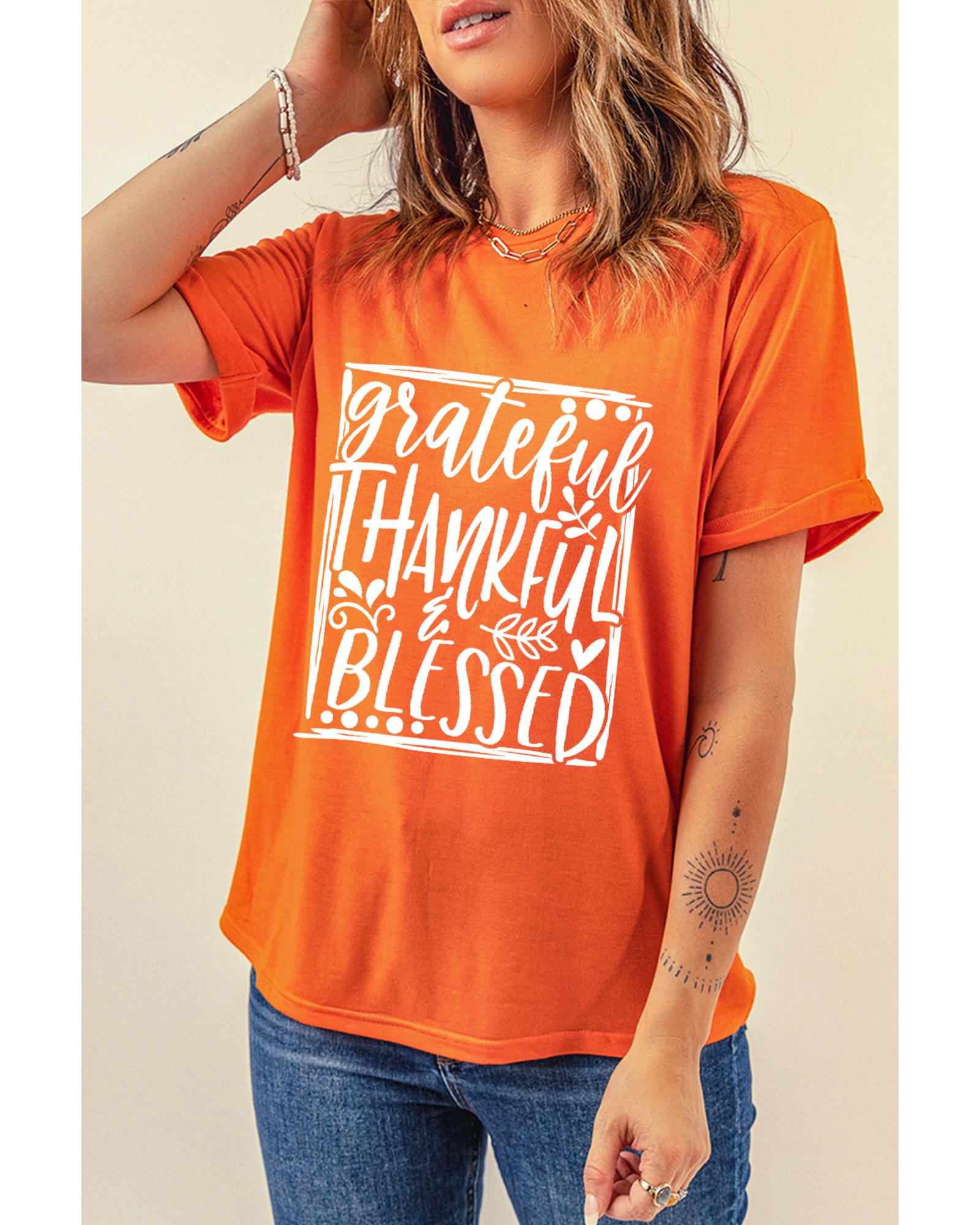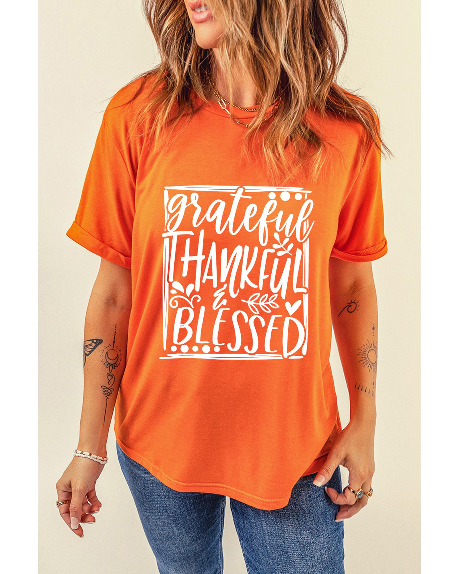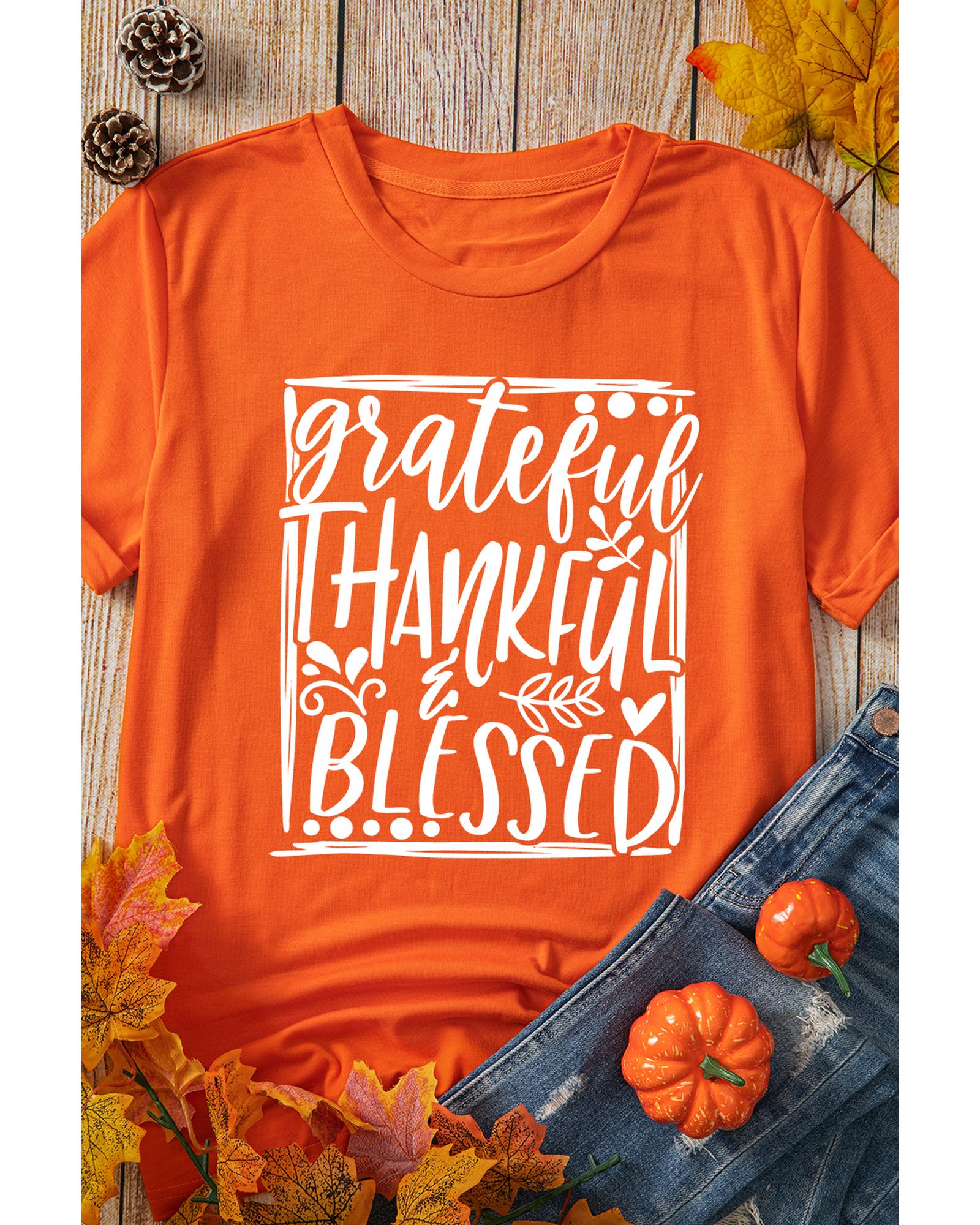 Orange Grateful Thankful Blessed Printed Thanksgiving T Shirt – S