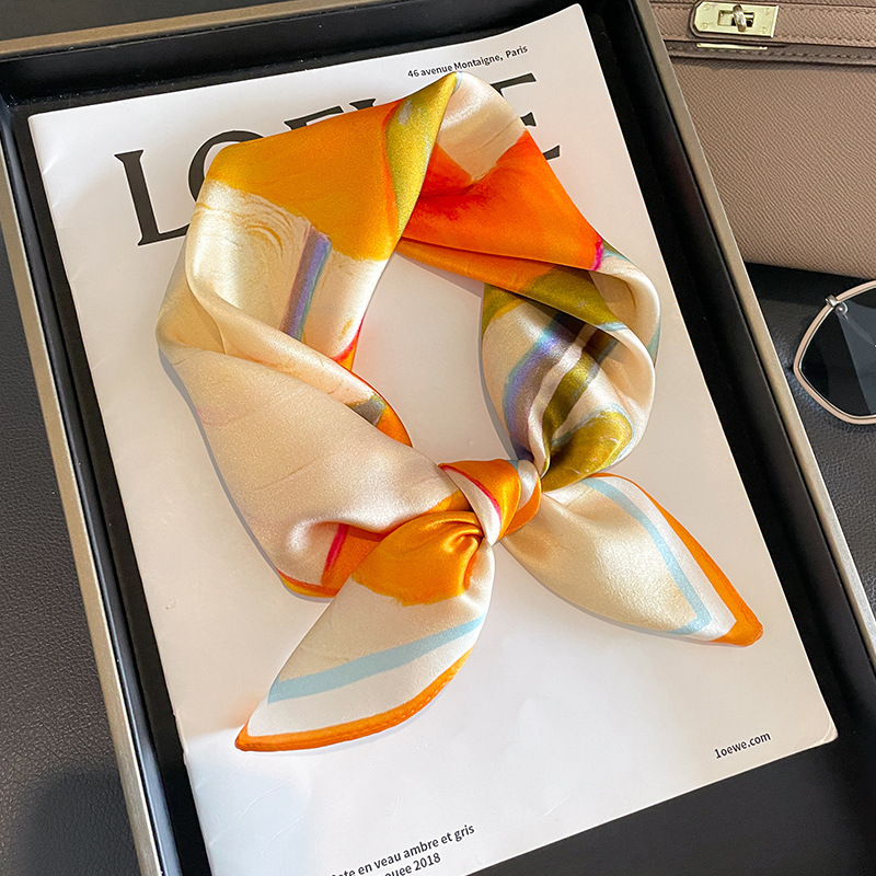 Perfect as a neck scarf, headscarf, or accessory for your bag, this versatile silk scarf is a must-have addition to any woman’s wardrobe. It also makes a thoughtful and stylish gift for any special occasion.