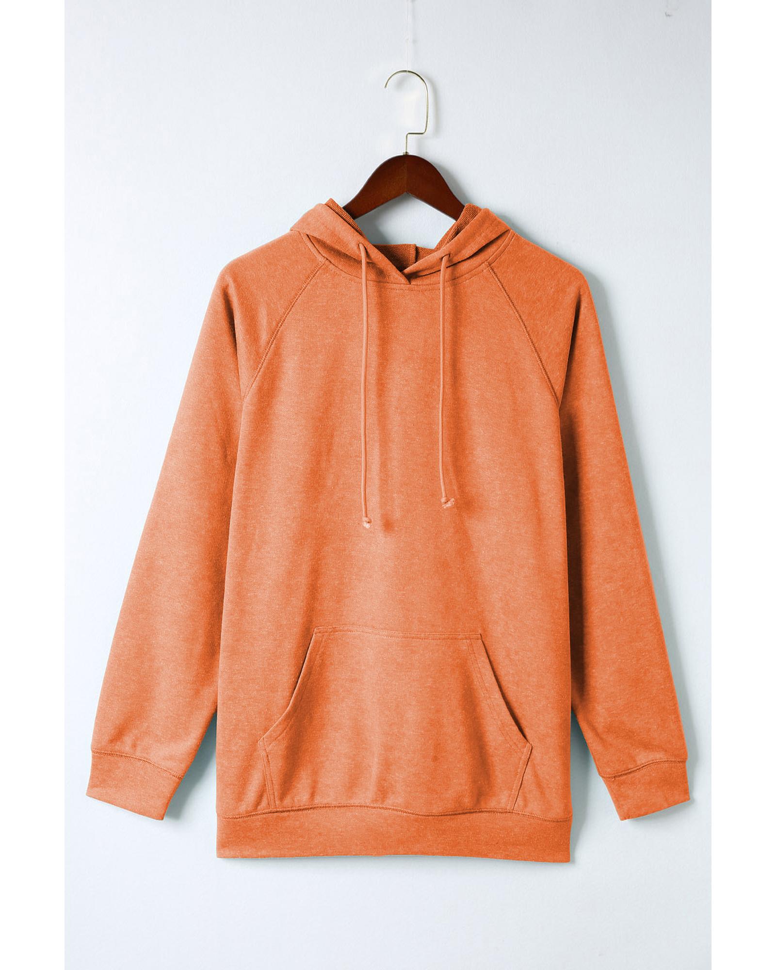 Orange Mineral Wash Kangaroo Pocket Drawstring Pullover Hoodie – M