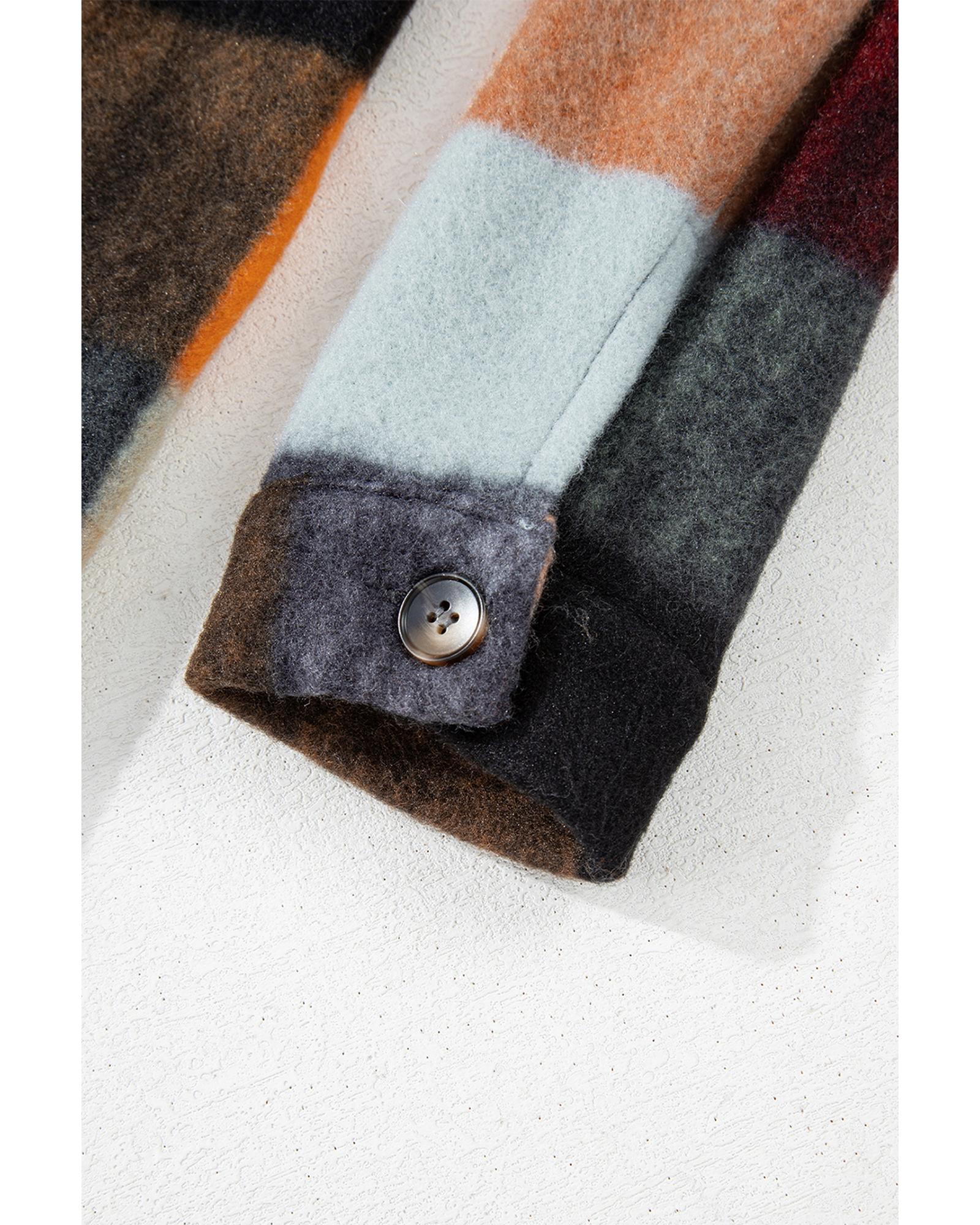 Orange Plaid Print Flap Pocket Long Jacket – S