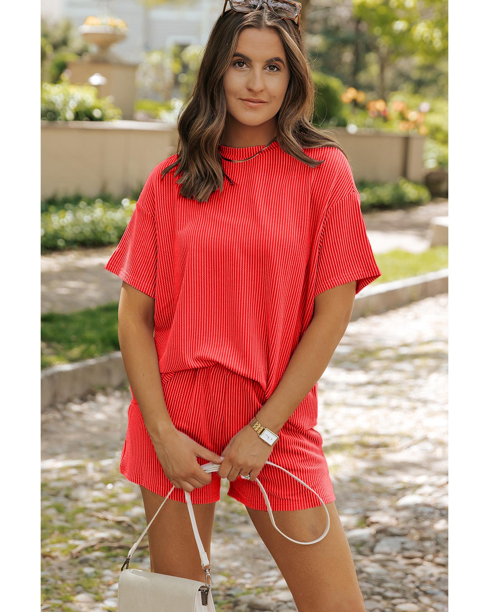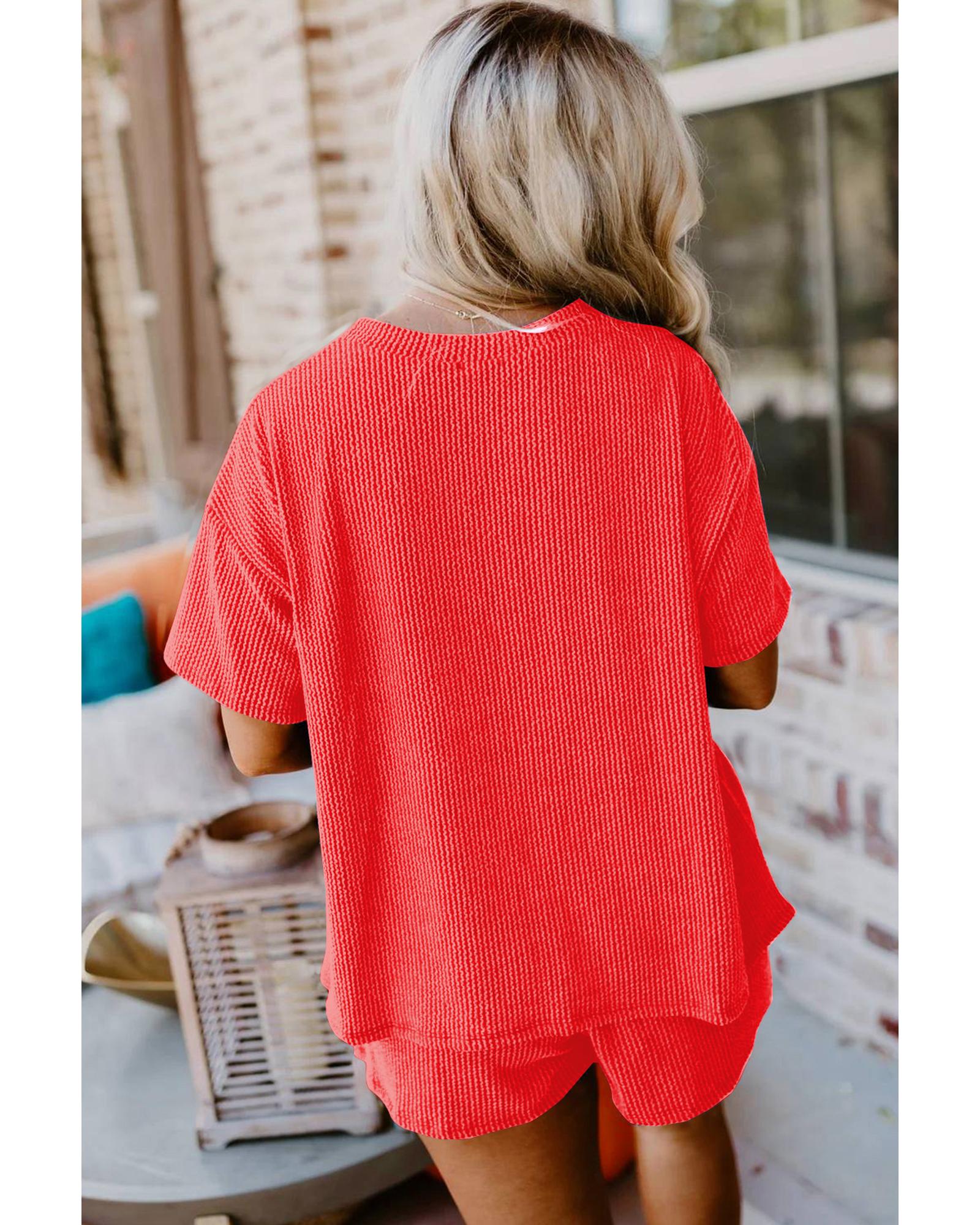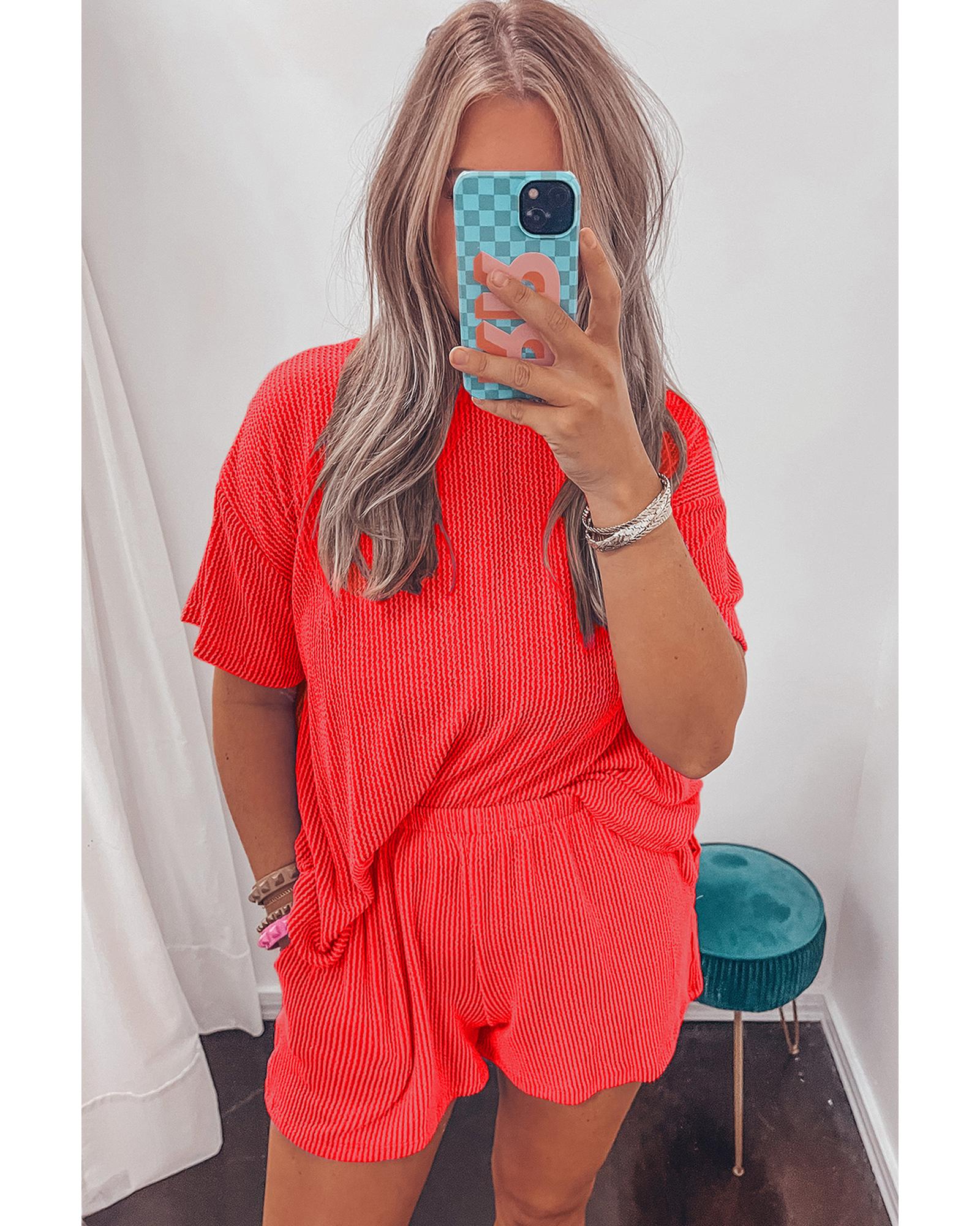 Orange Ribbed Textured Knit Loose Fit Tee and Shorts Set – L