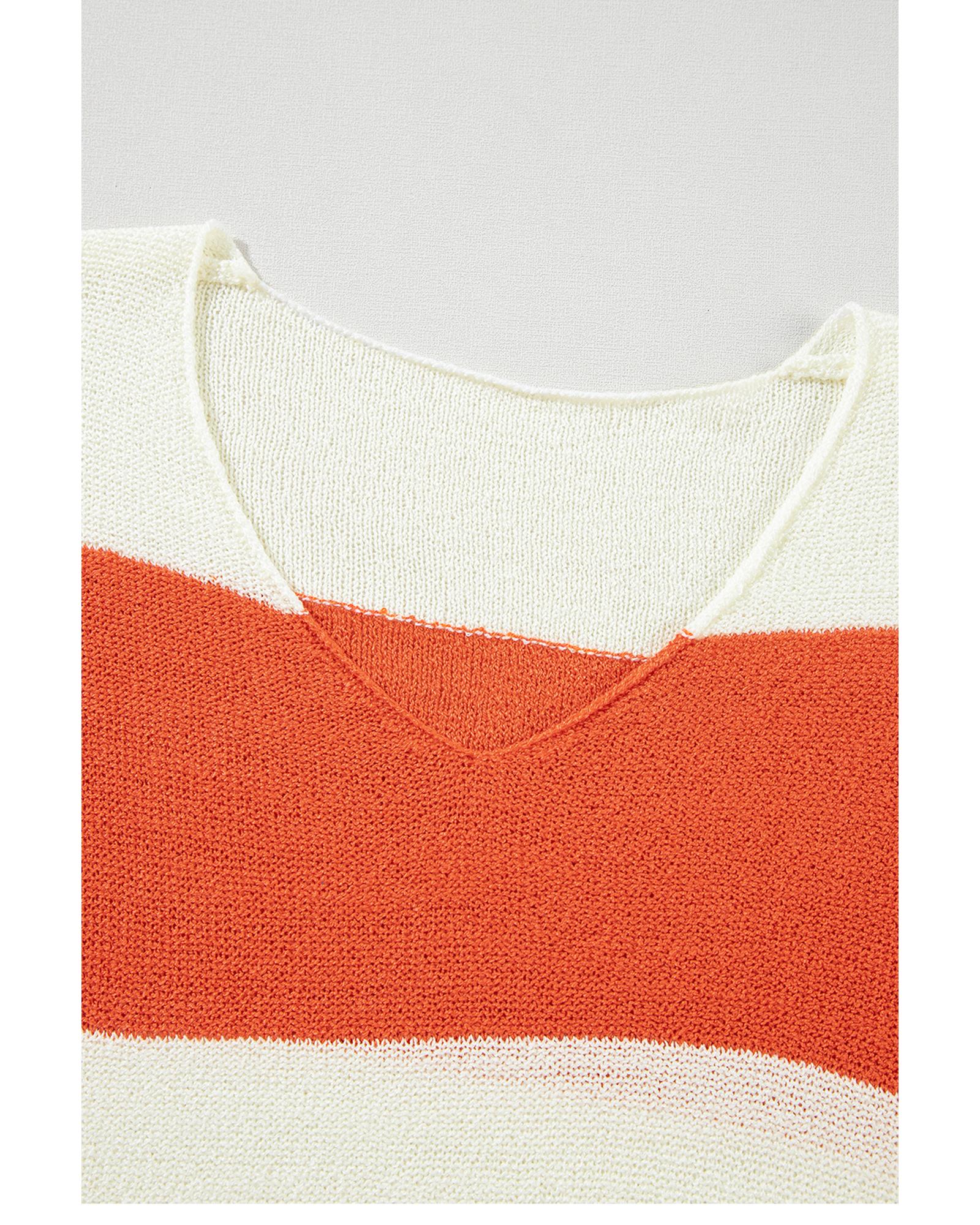 Orange Stripe Loose Color Block Drop Shoulder Bubble Sleeve Sweater – M