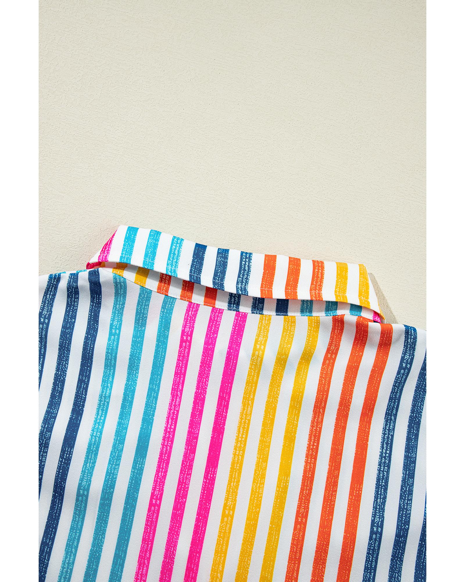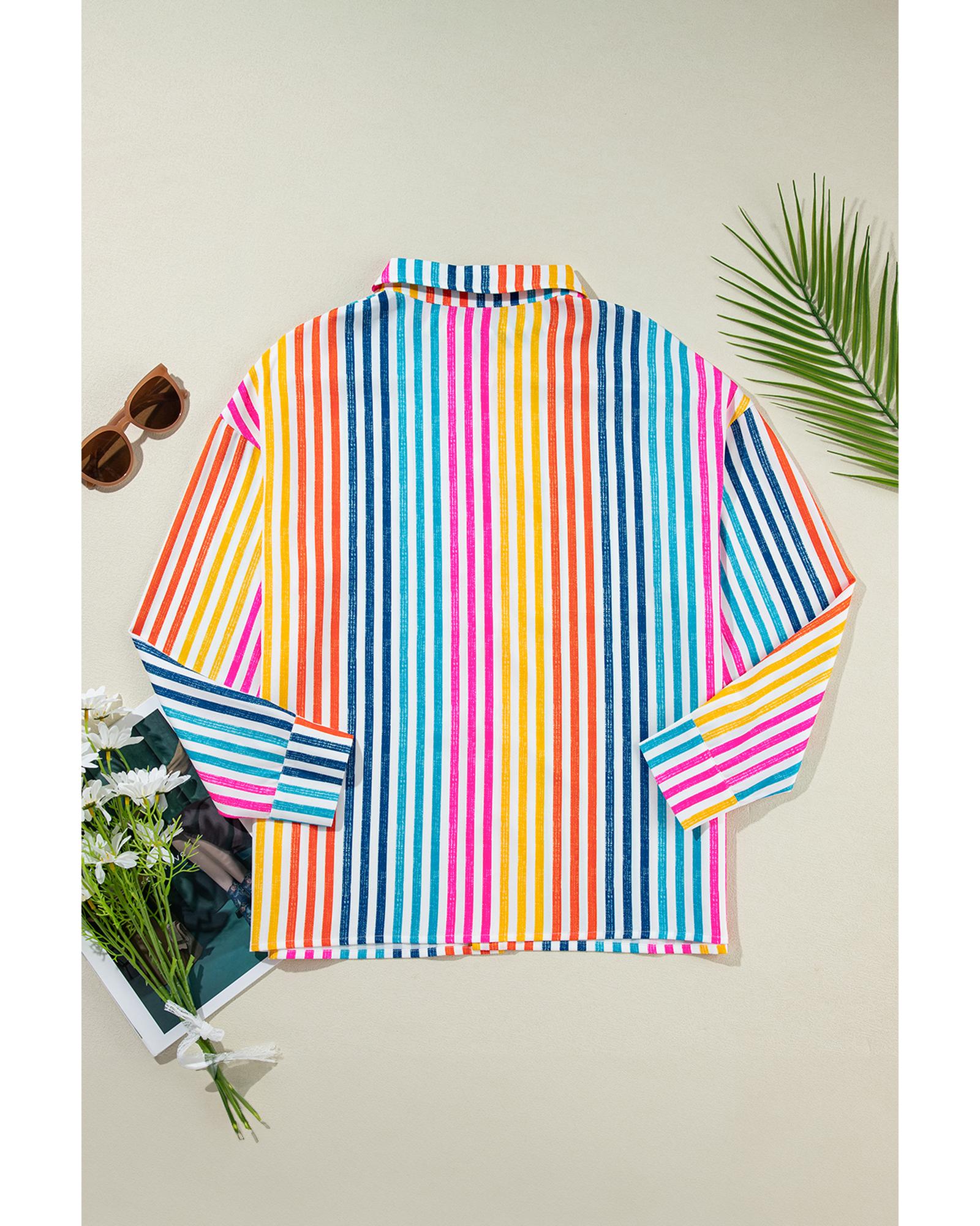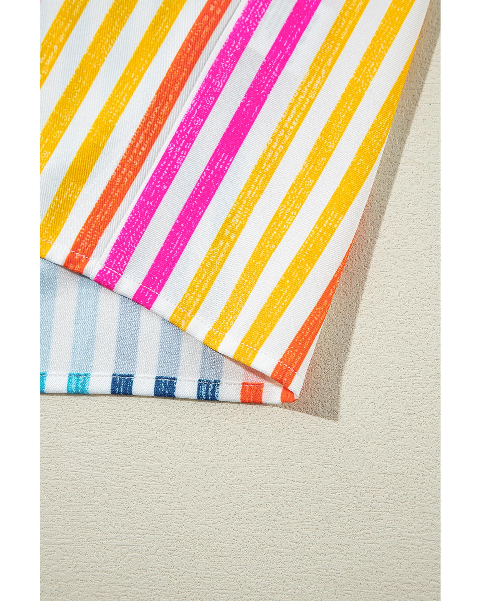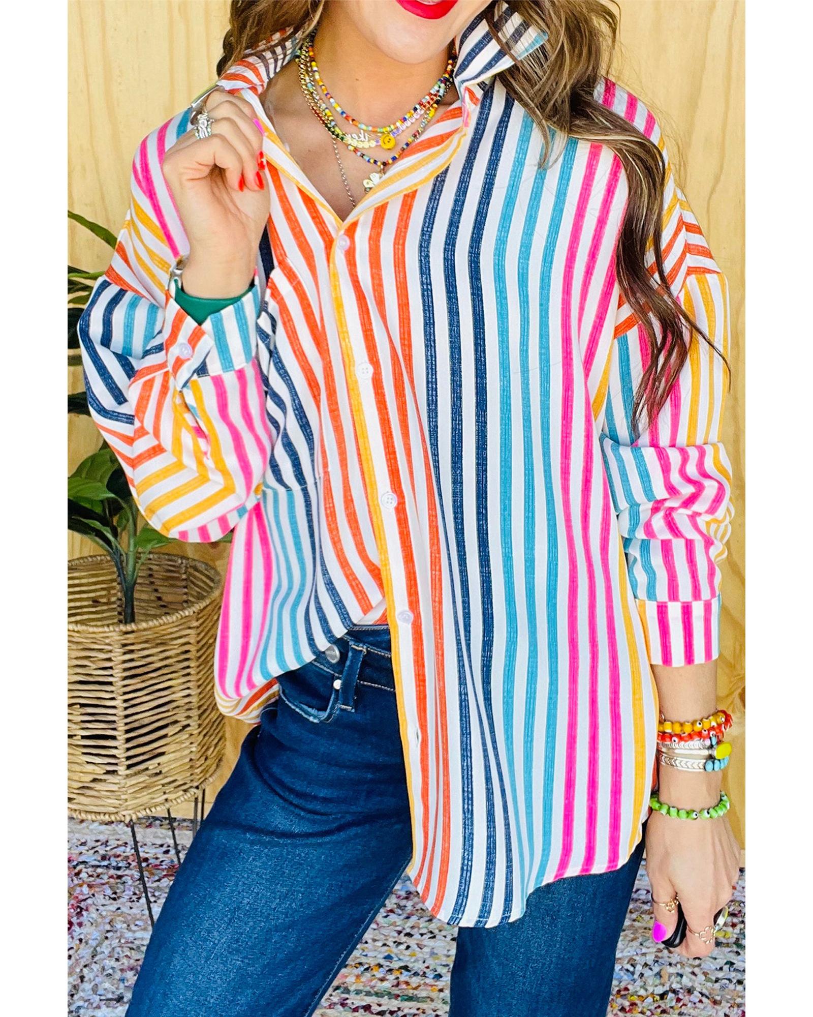 Orange Stripe Multicolor Drop Shoulder Loose Shirt – M