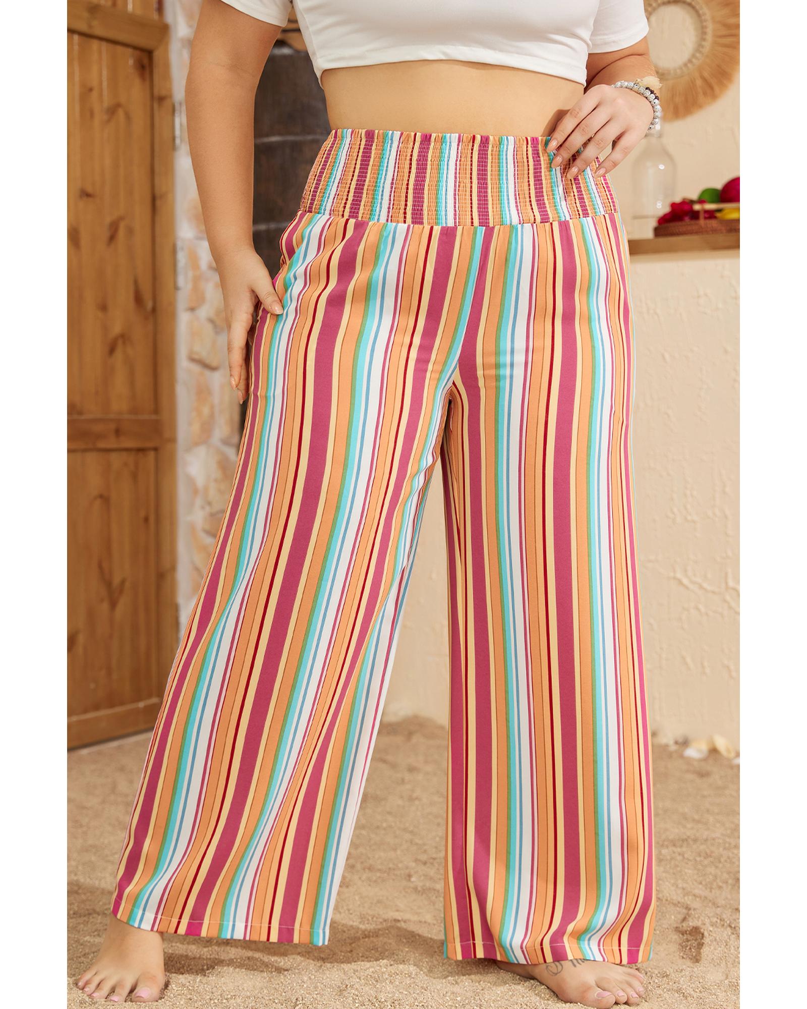 Orange Stripe Plus Size Boho Smocked Waist Loose Pants – 2X