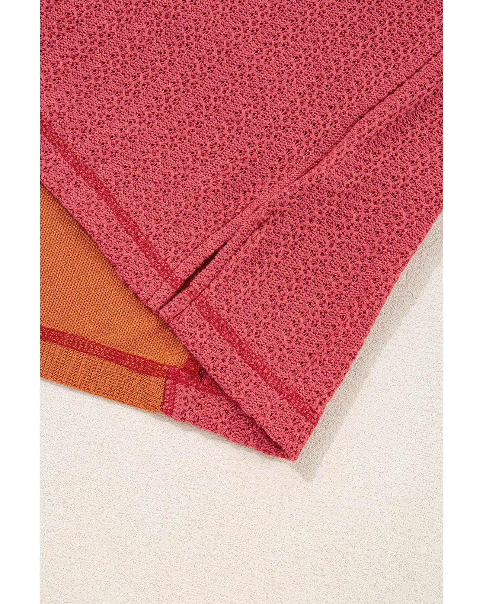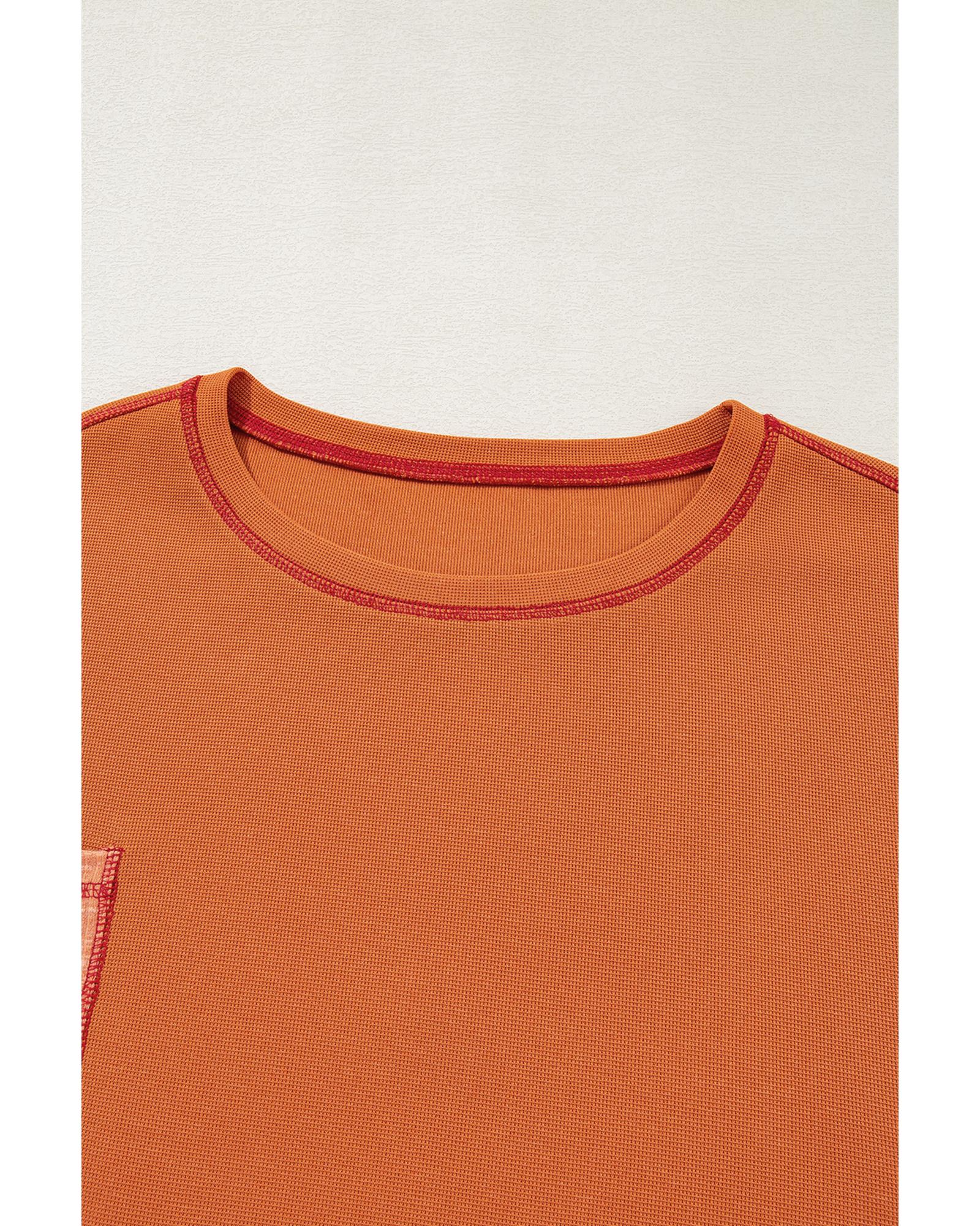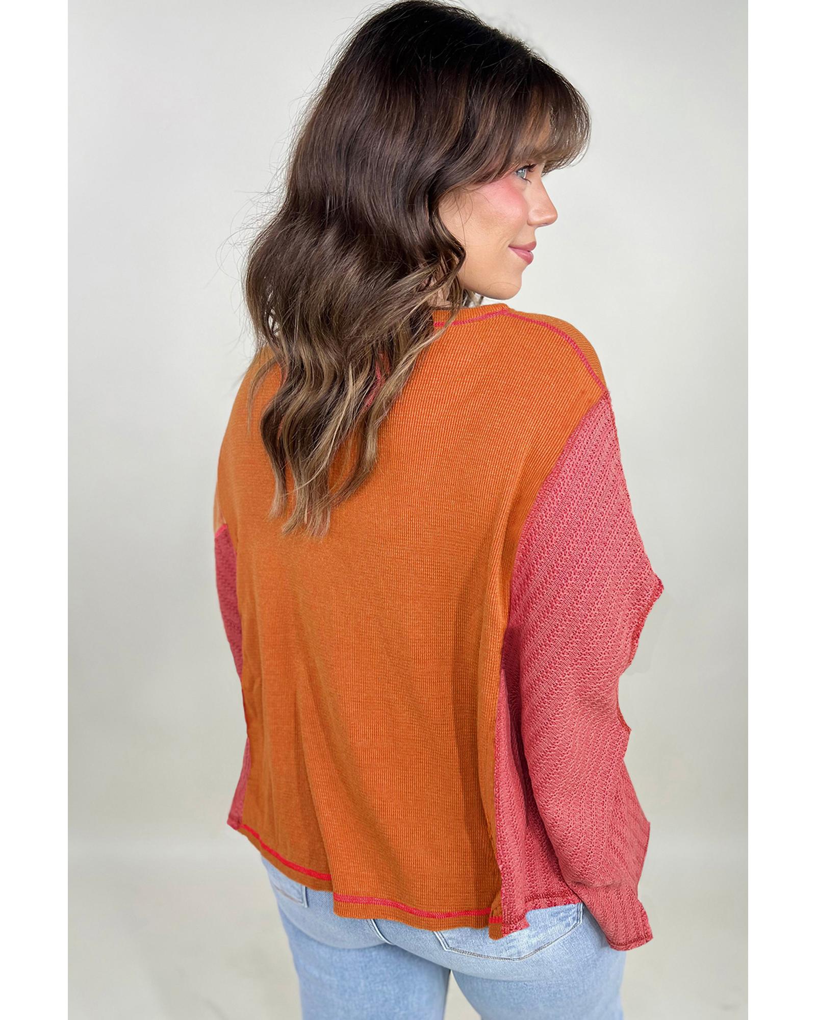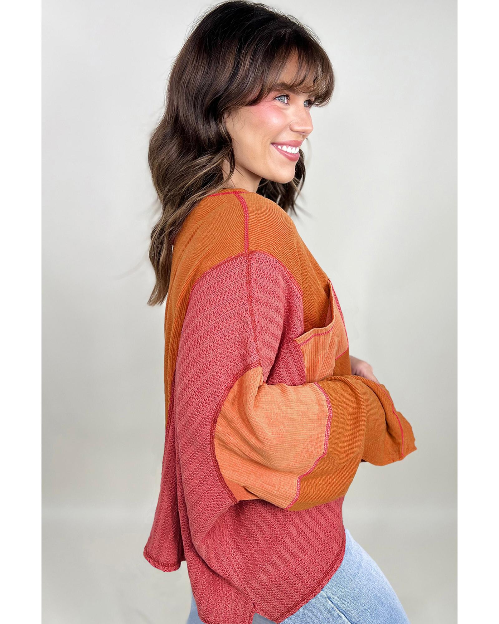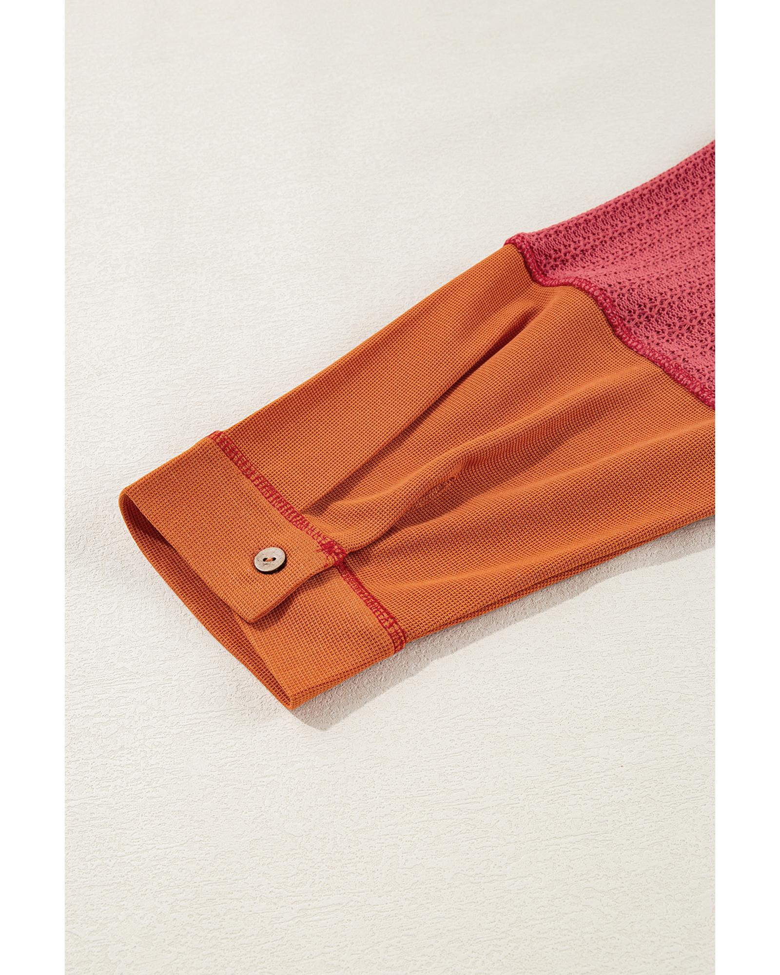 Orange Textured Knit Color Block Patchwork Chest Pocket Plus Size Top – 1X