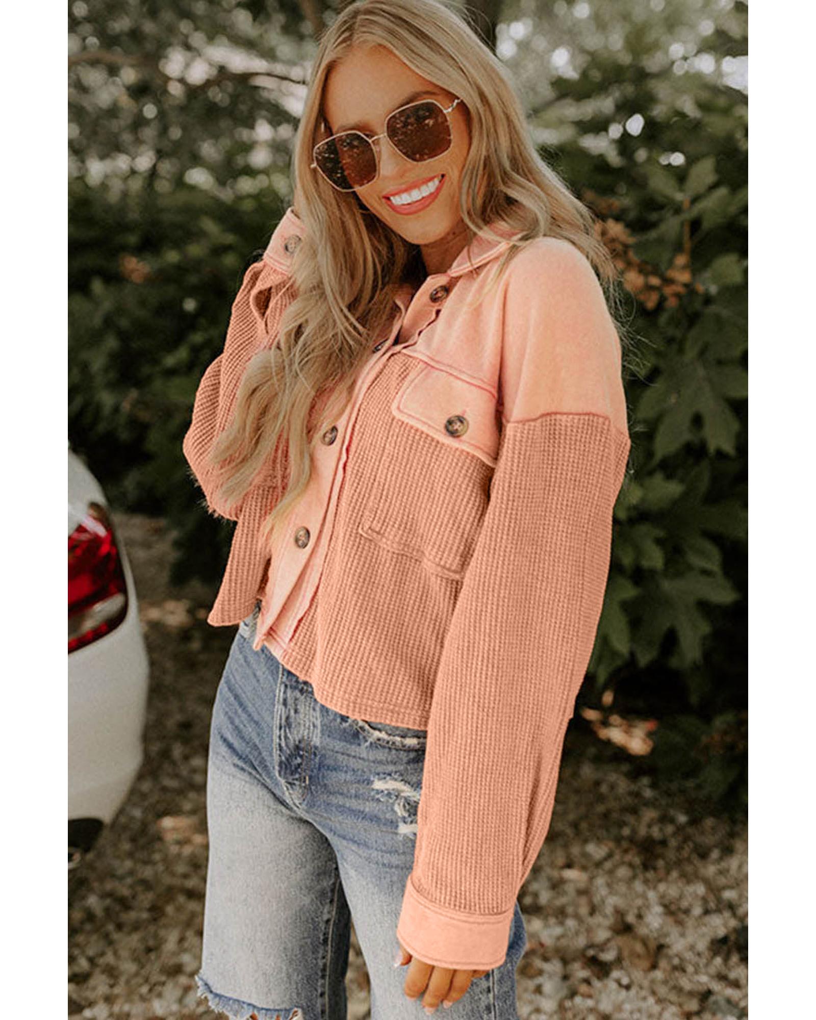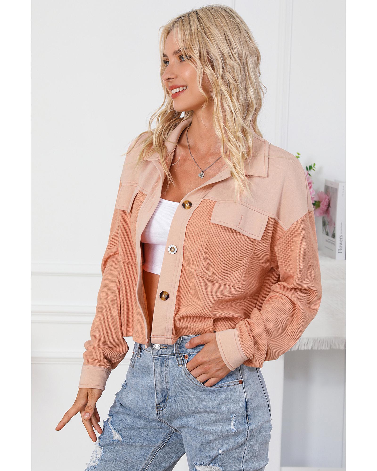 Orange Textured Waffle Knit Chest Pockets Cropped Shacket – XL