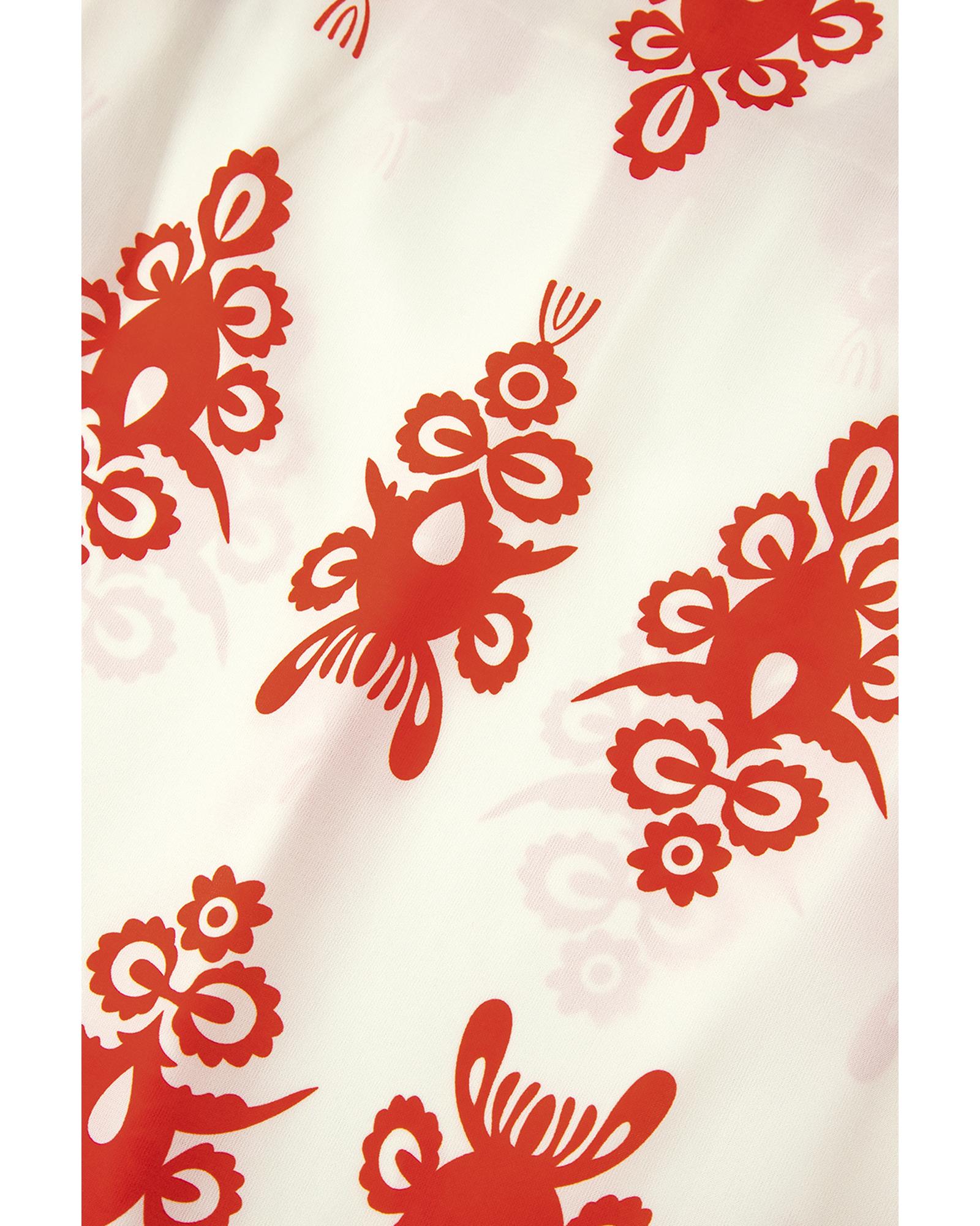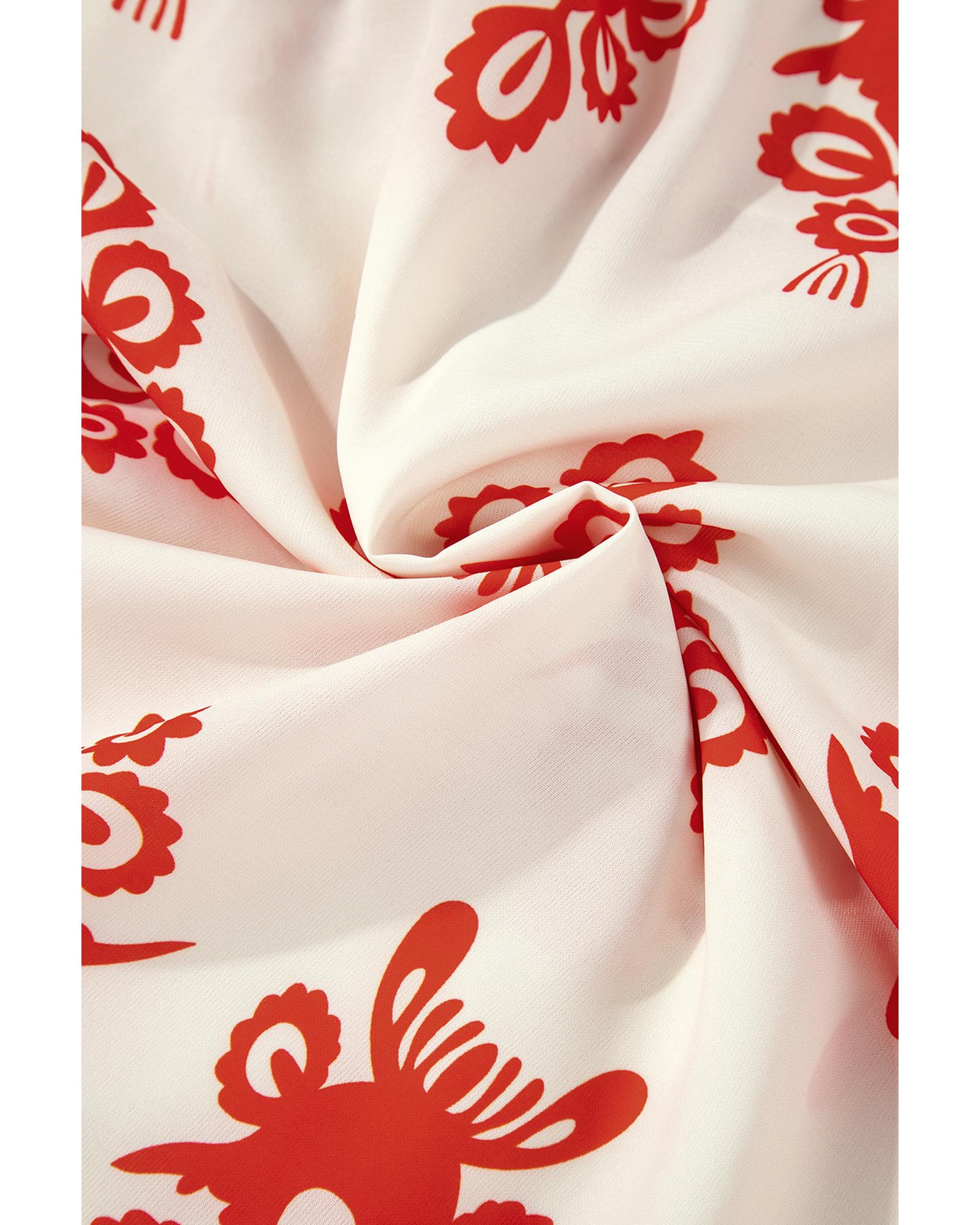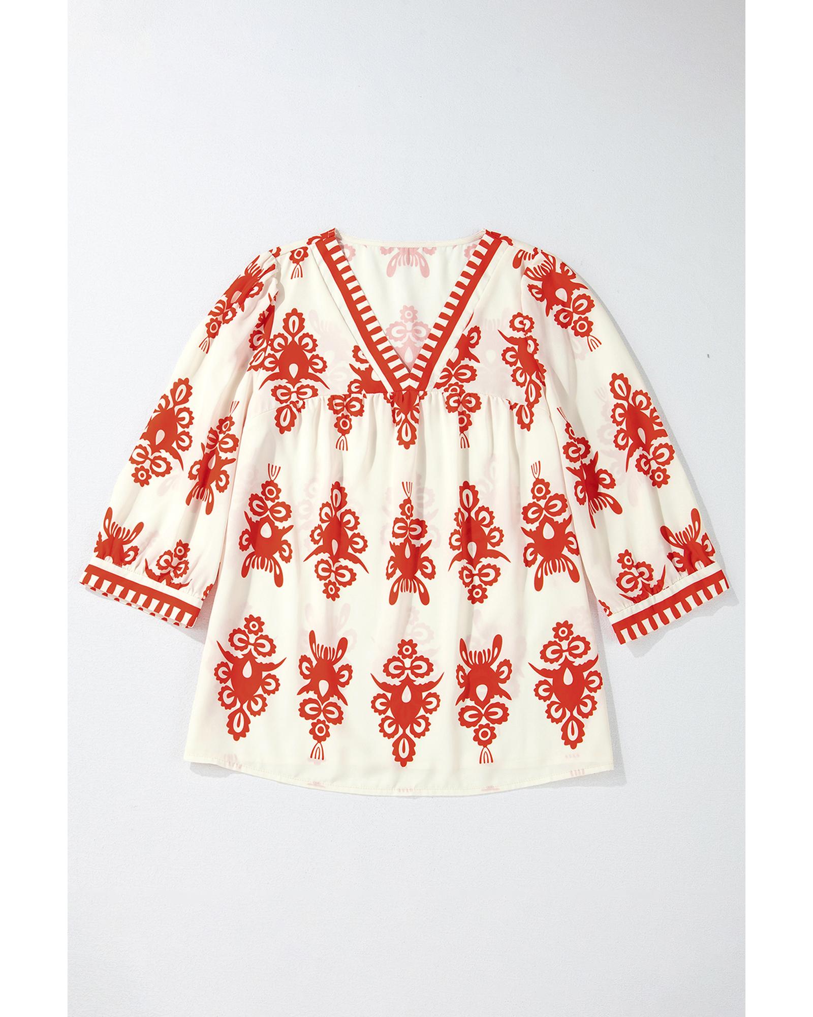 Orange Vintage Geometric Printed 3/4 Sleeve V Neck Blouse – M