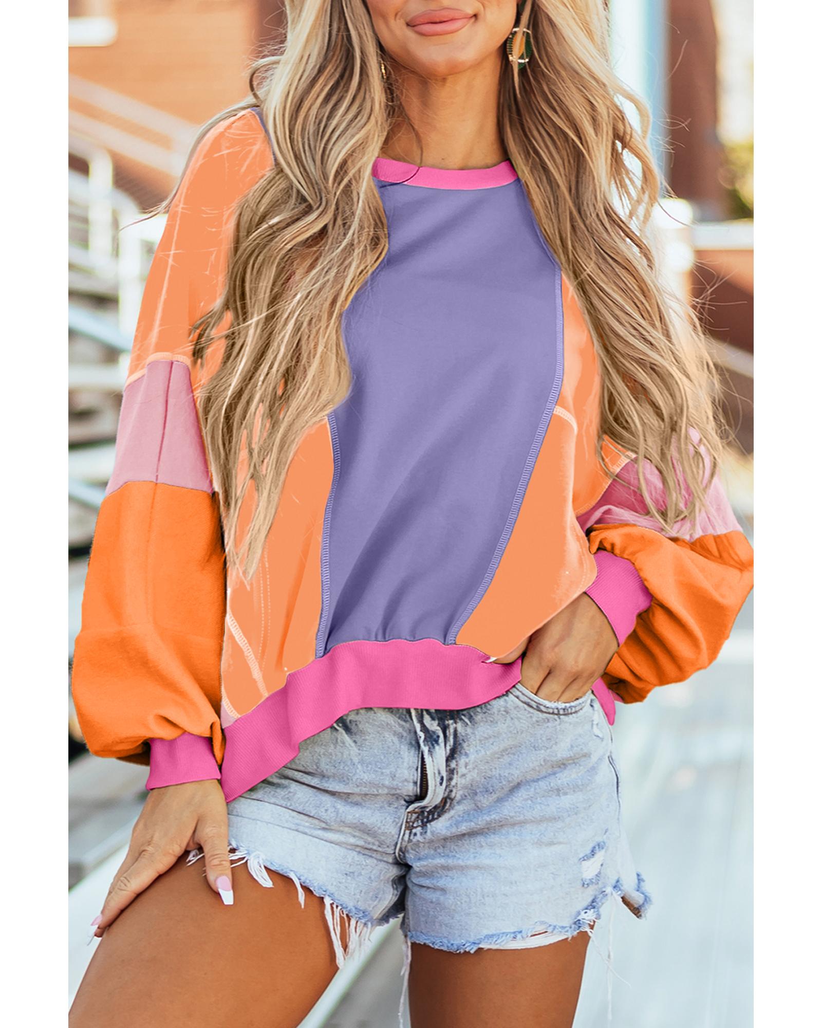 - Orchid Petal Colorblock Patchwork Exposed Stitching Oversize Top
