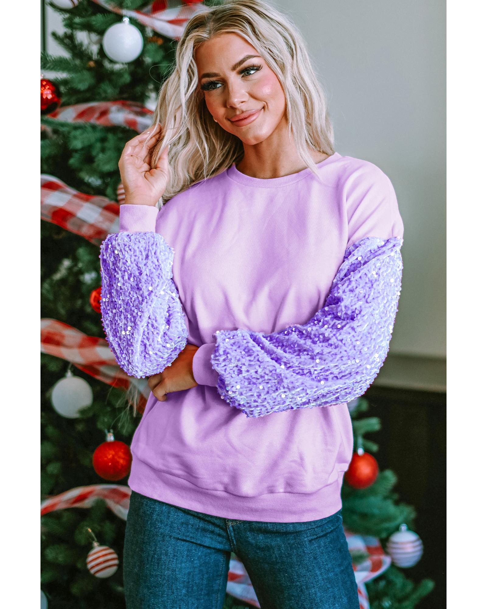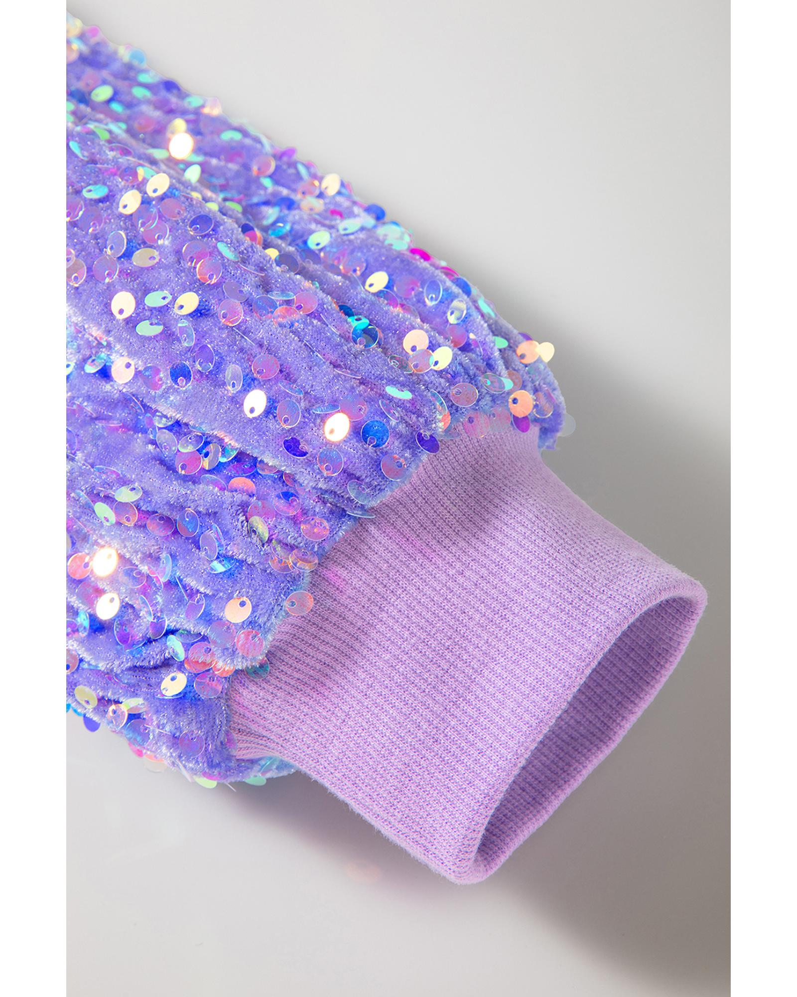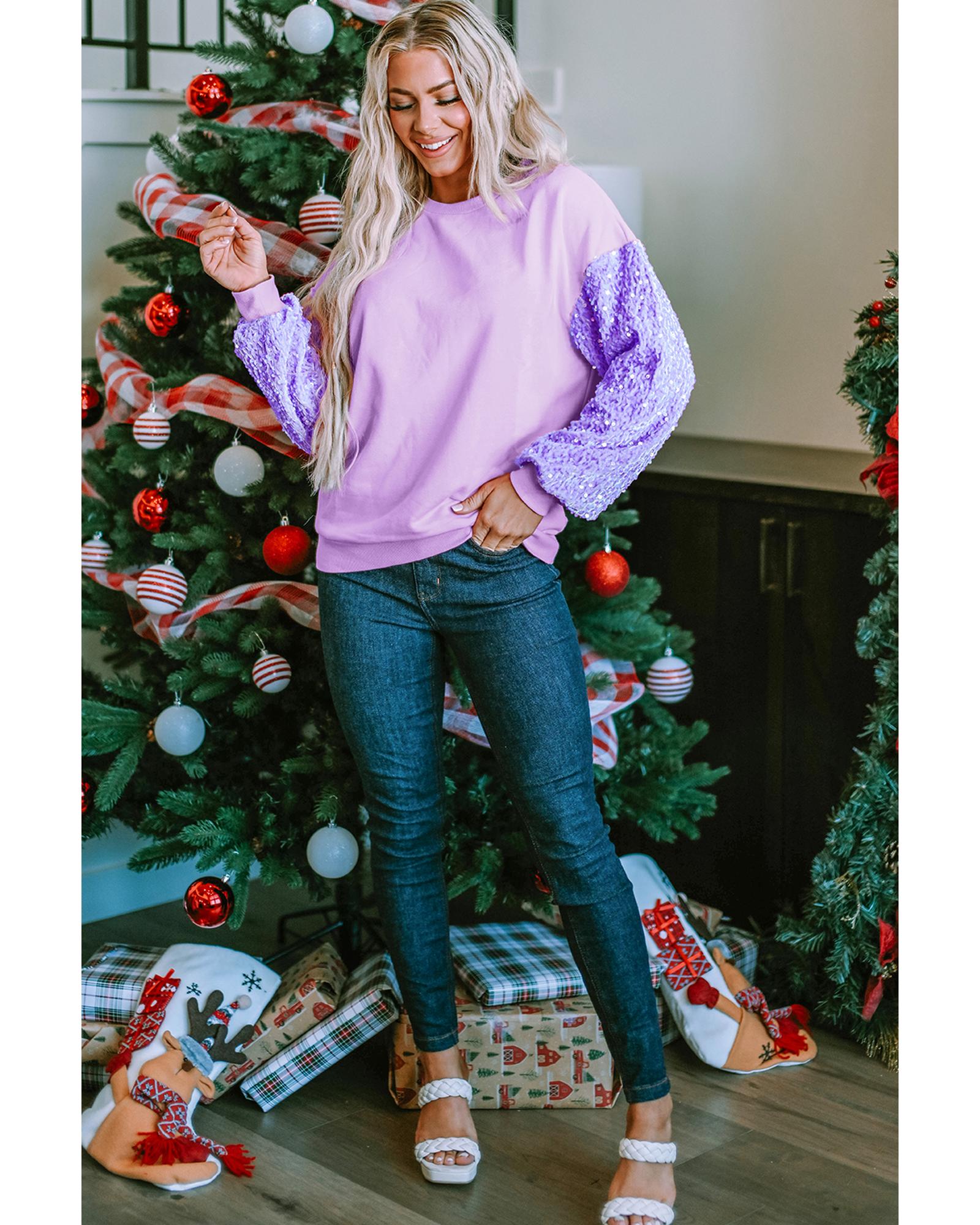 Orchid Petal Sequin Patchwork Long Sleeve Pullover Top – L