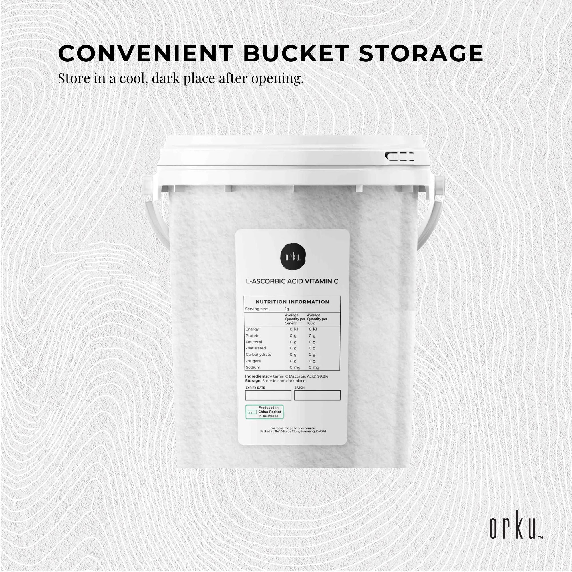 Orku 1.3Kg Vitamin C Powder in Tub Pure L-Ascorbic Acid – USP Grade Non-GMO