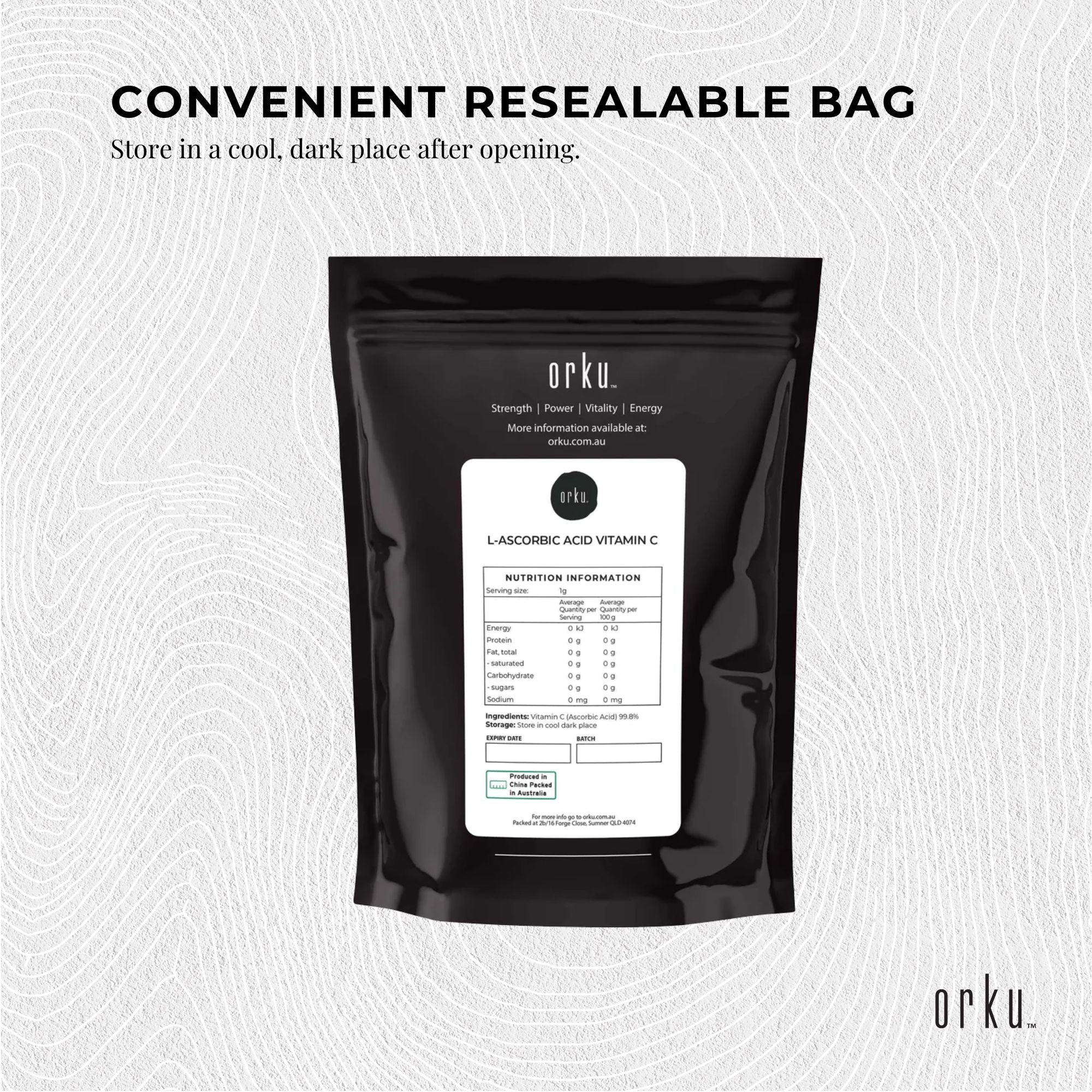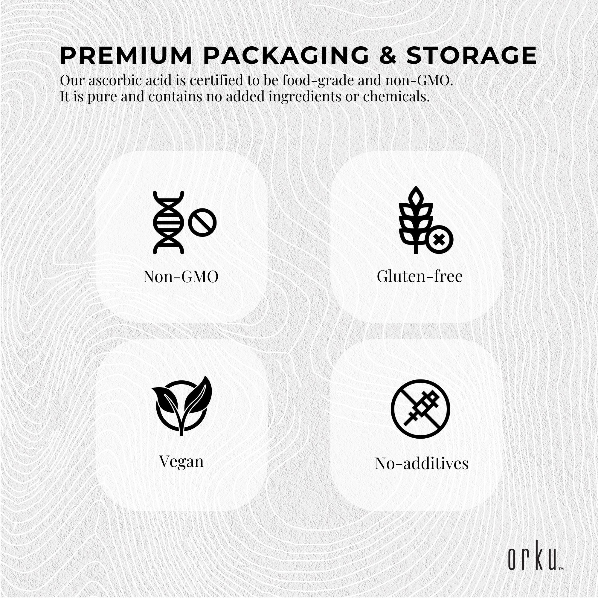 Orku 50g Vitamin C Powder Pure L-Ascorbic Acid – USP Grade Non-GMO