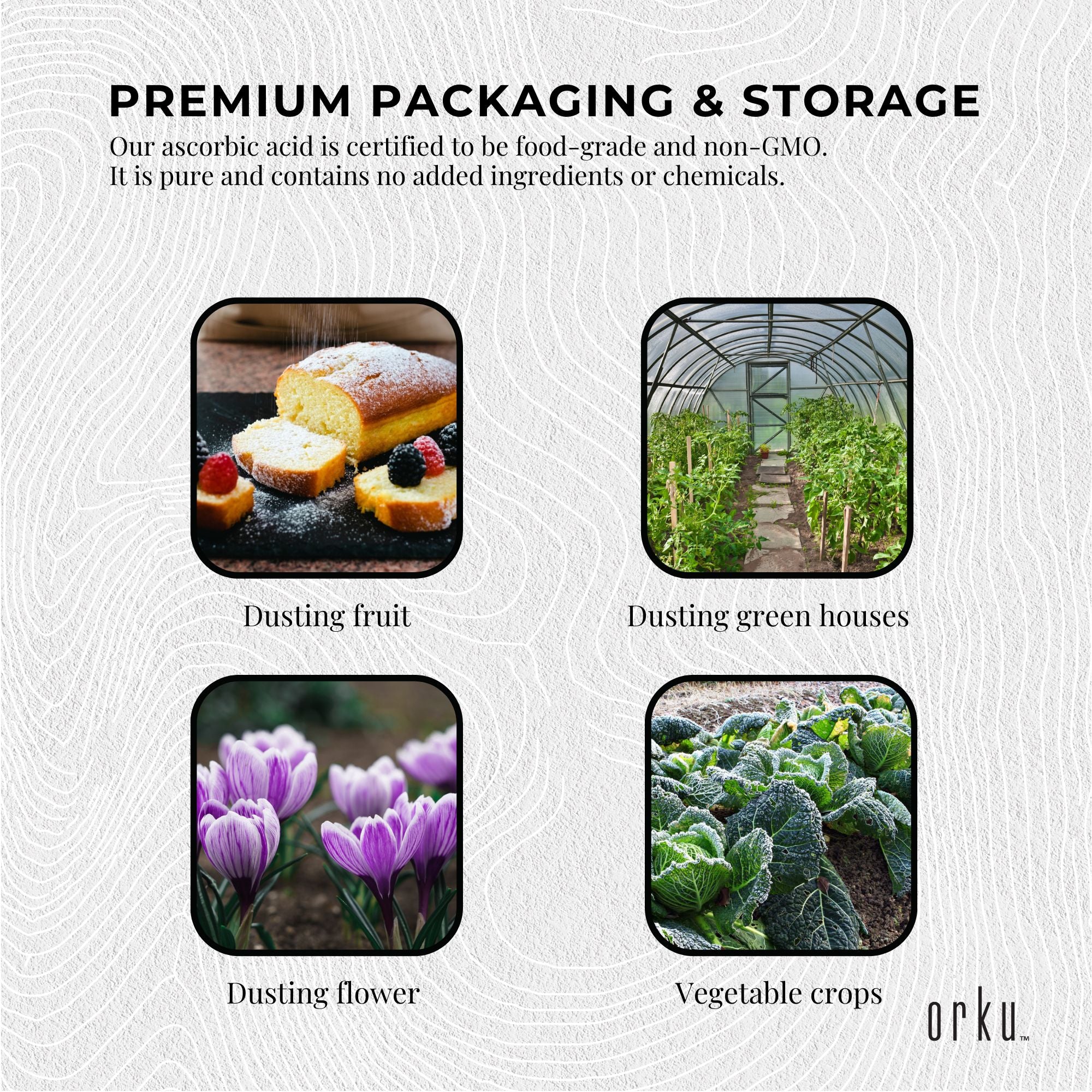 Orku 5Kg Vitamin C Powder in Tub Pure L-Ascorbic Acid – USP Grade Non-GMO