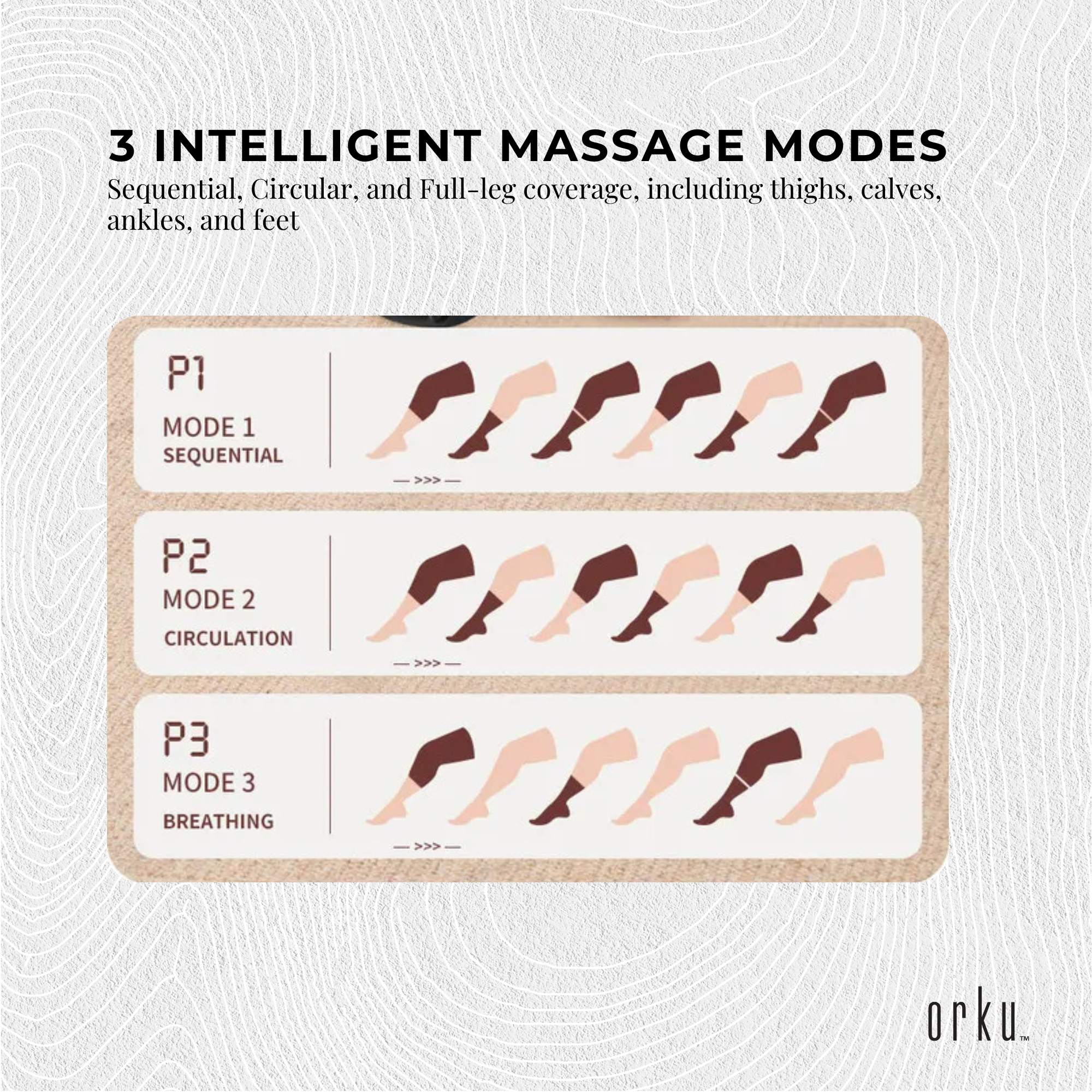 • 3 Intelligent Massage Modes: Sequential, Circular, and Full-leg coverage, including thighs, calves, ankles, and feet