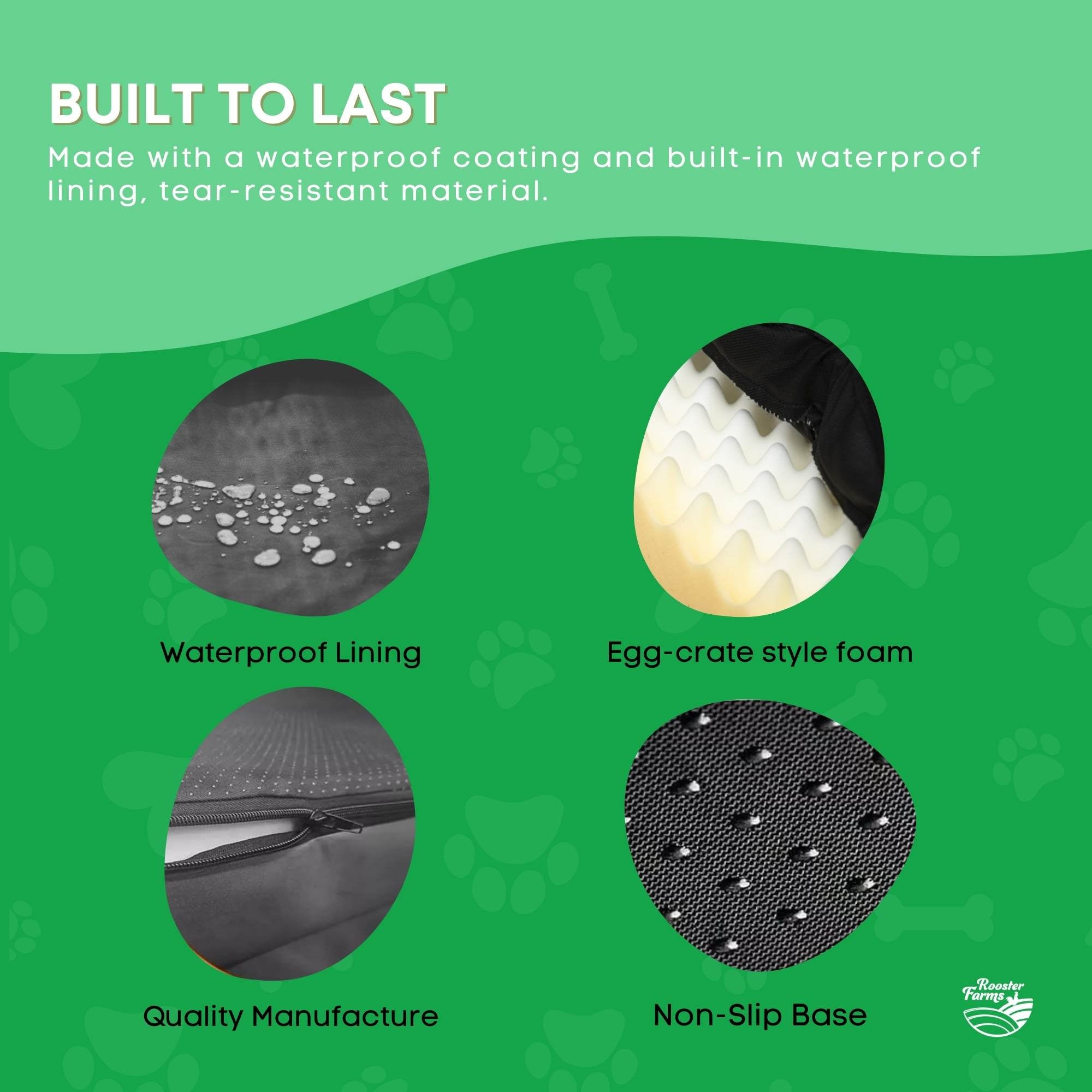 Supportive Foam Comfort – Egg-crate style foam gently cushions your dog’s body for enhanced relaxation and a cozy rest.