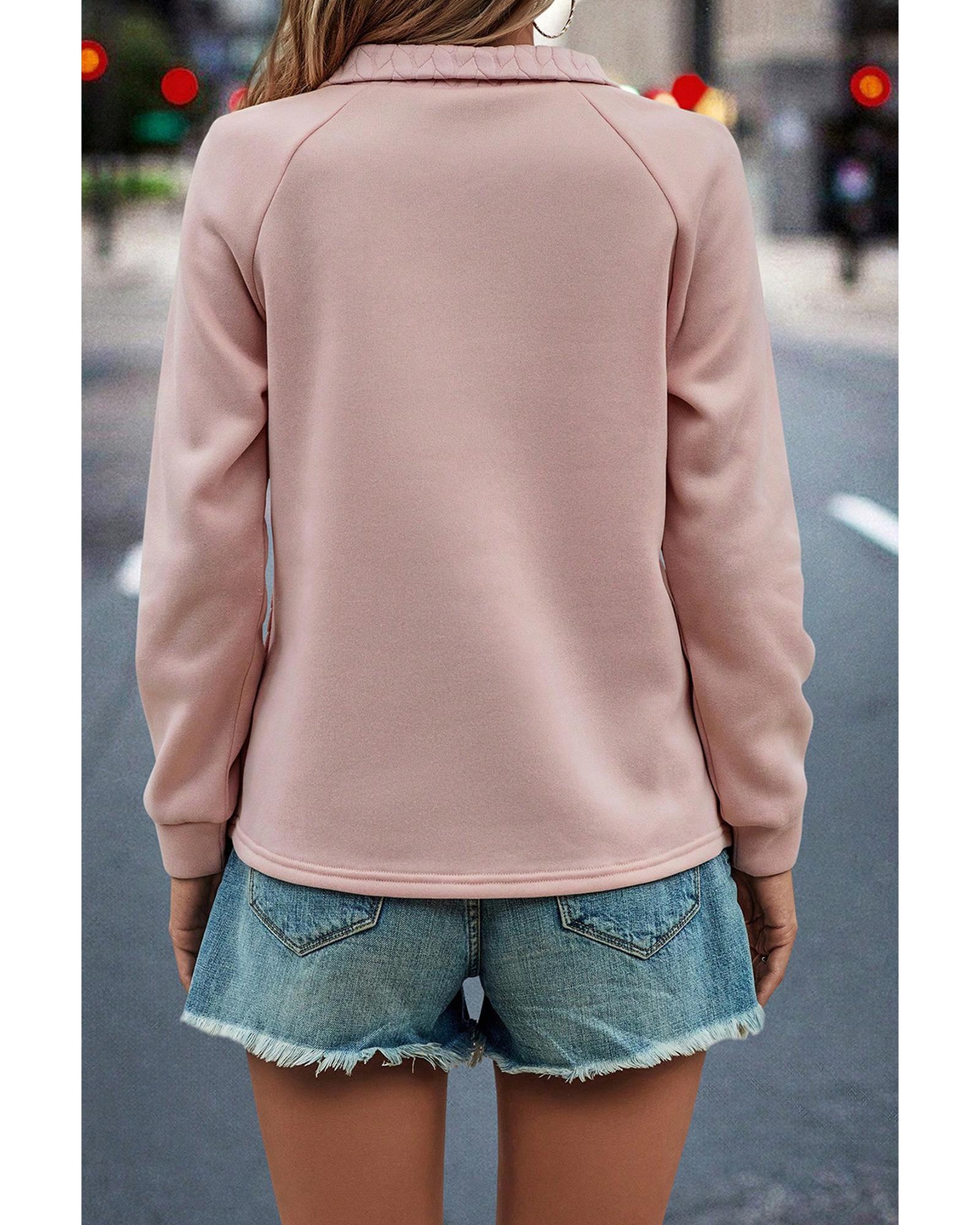 Pale Chestnut Textured Quarter Zip Raglan Sleeve Sweatshirt – S