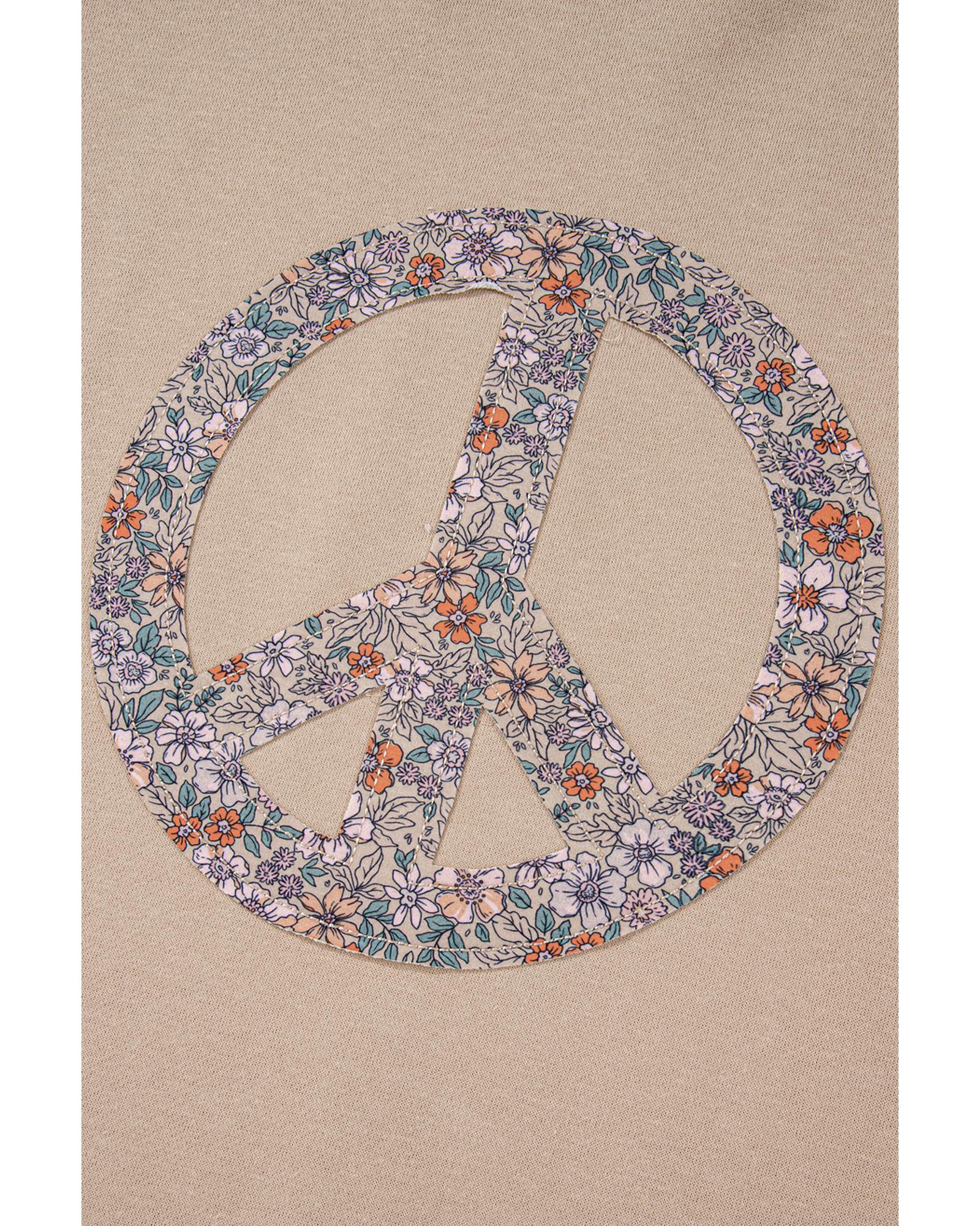 Pale Khaki Floral Peace Sign Graphic Washed Terry Plus Size Sweatshirt – 4X