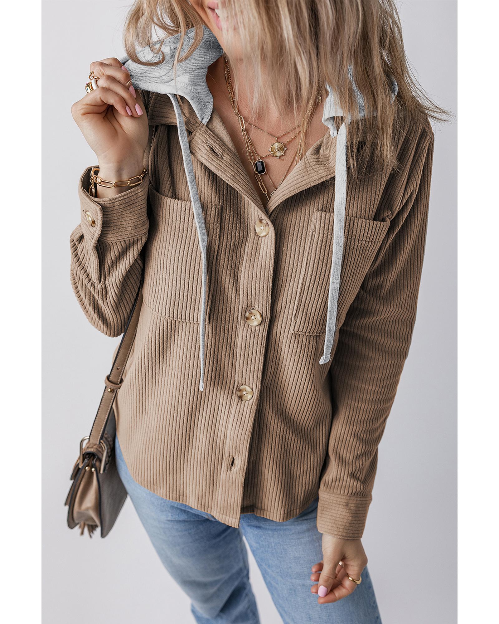 Pale Khaki Hooded Drawstring Pockets Corduroy Shacket – 2XL