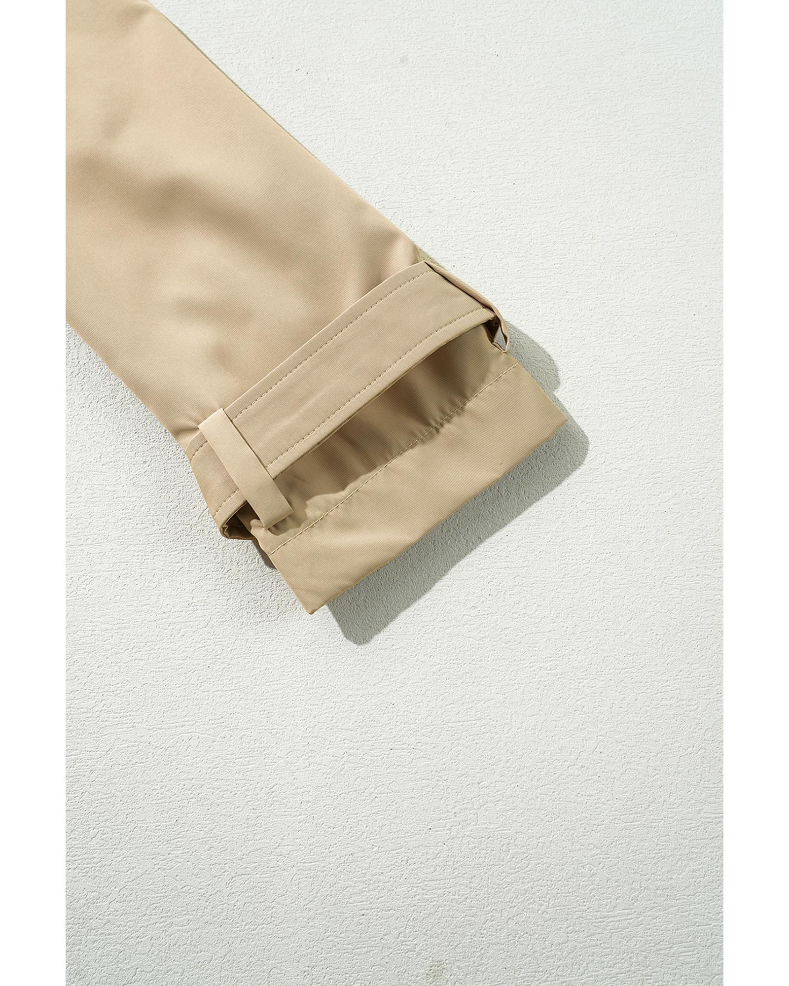 Pale Khaki Solid Color Lapel Collar Waist Tie Wind Coat – M