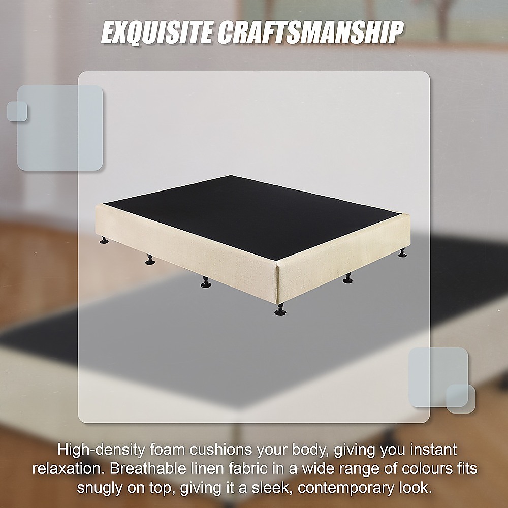 • Materials: Solid pine timber, high-density foam, and premium linen fabric upholstered bed base