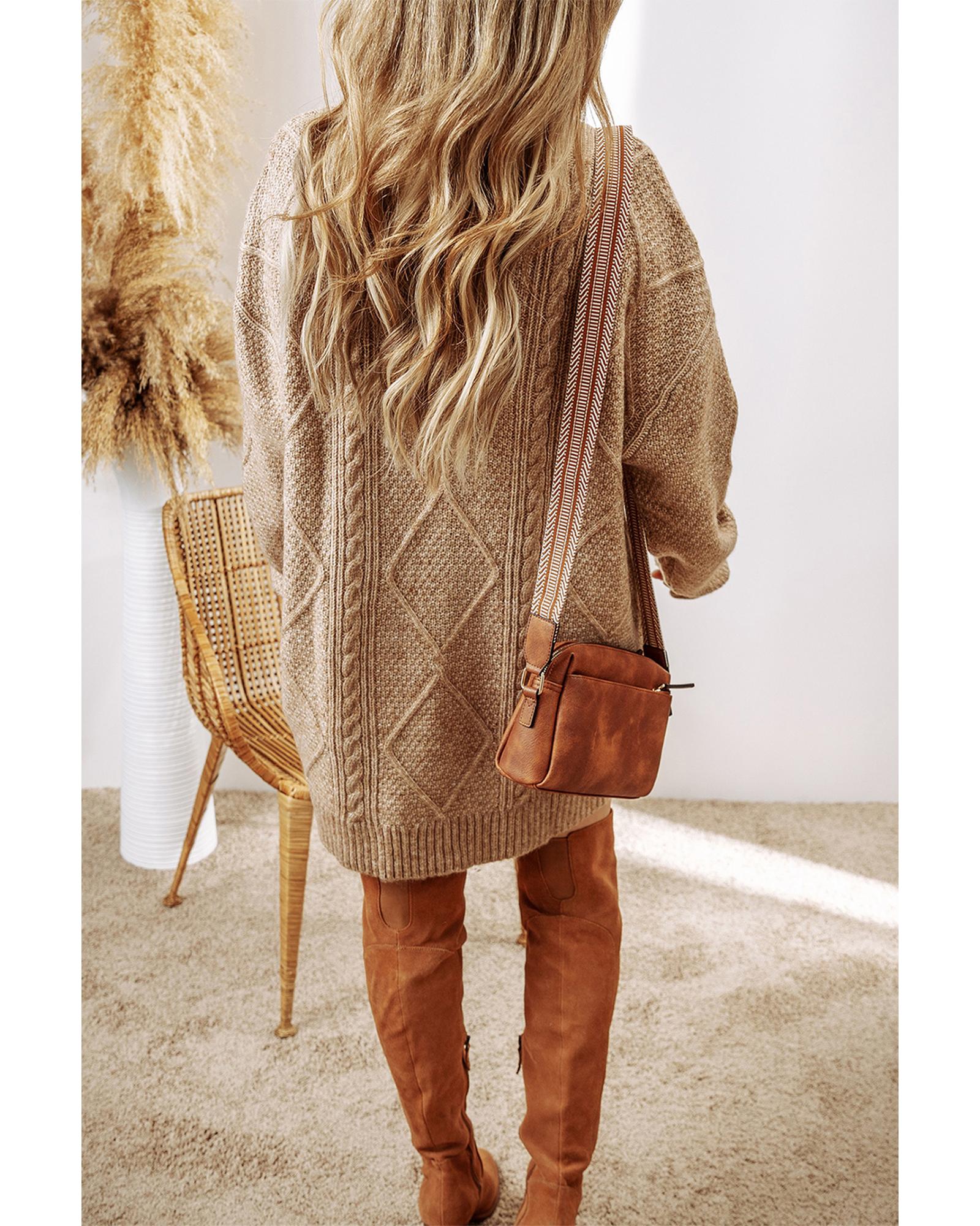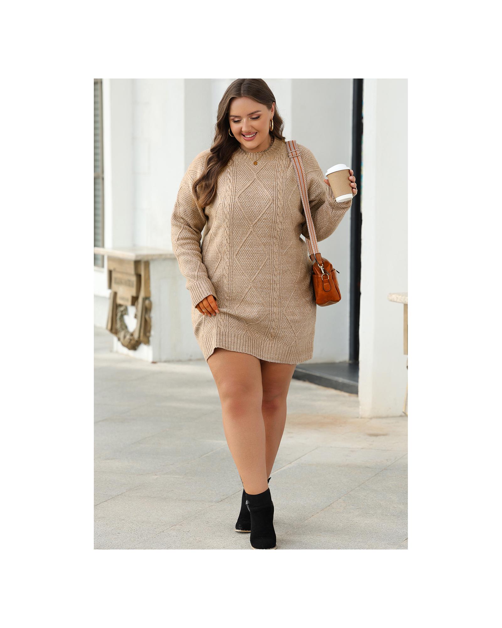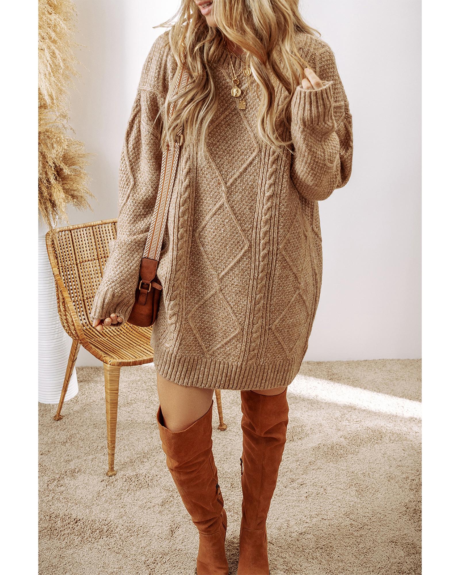 Parchment Cable Knit Drop Shoulder Loose Fit Sweater Dress – S