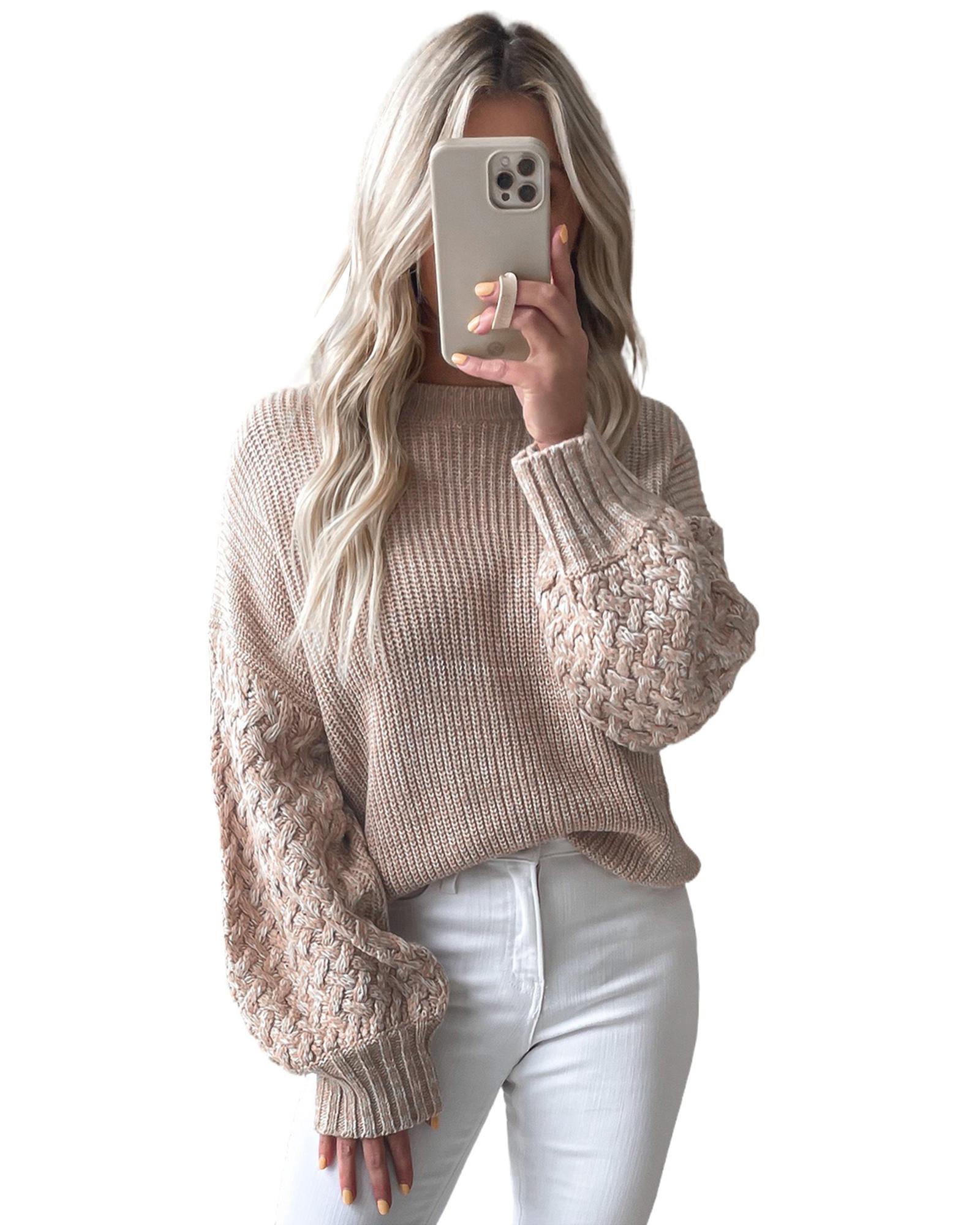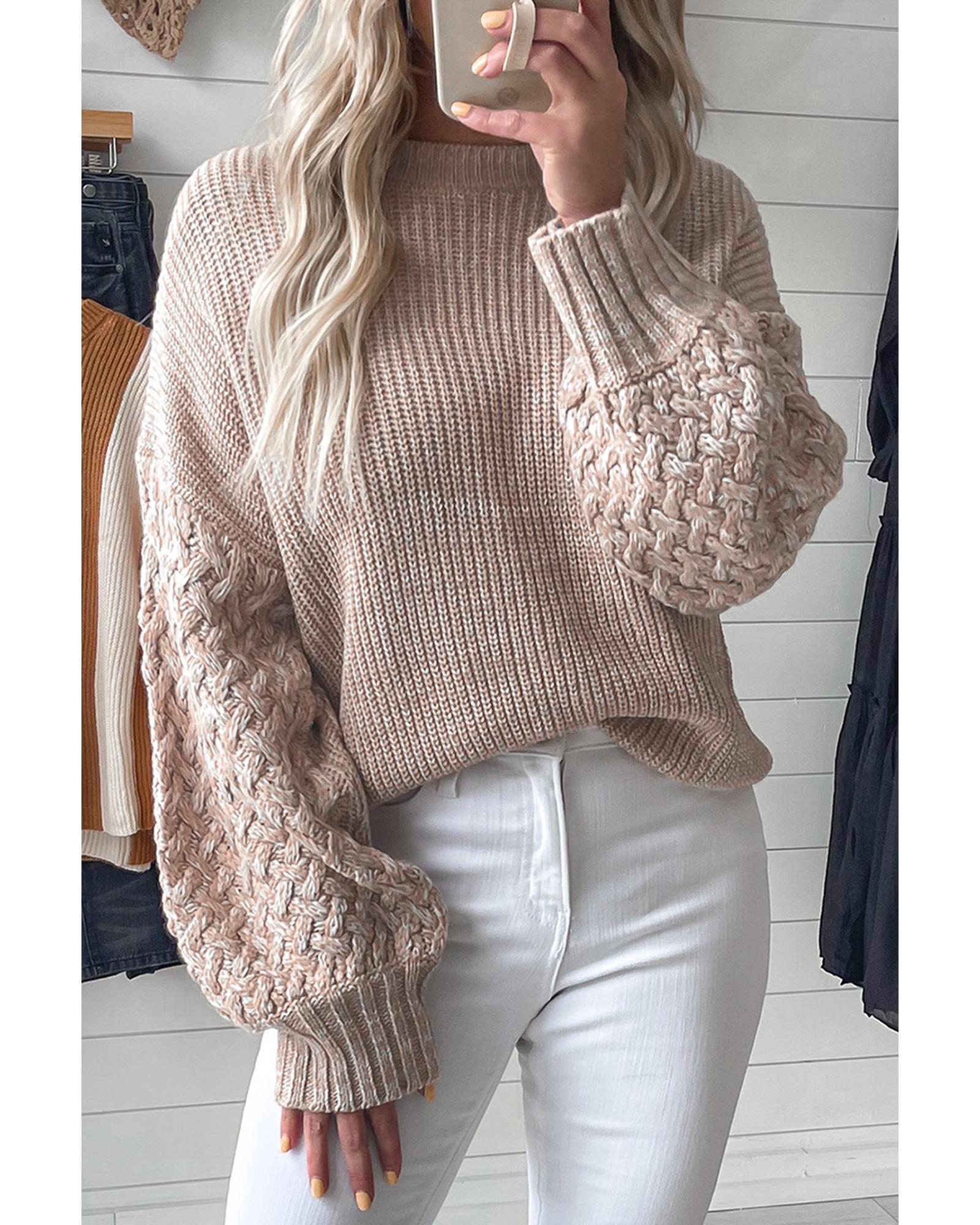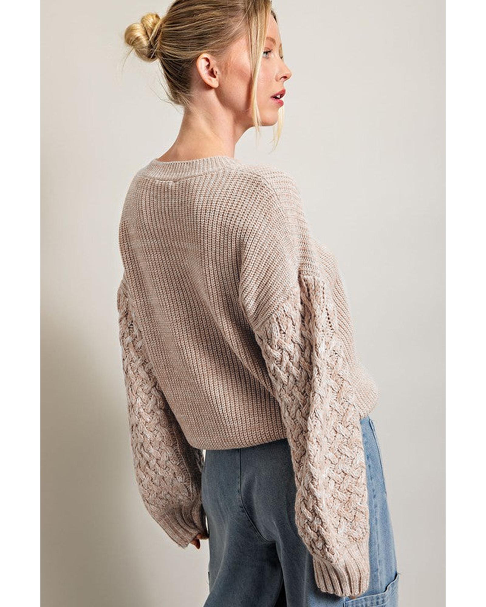 Parchment Cable Knit Sleeve Drop Shoulder Sweater – L