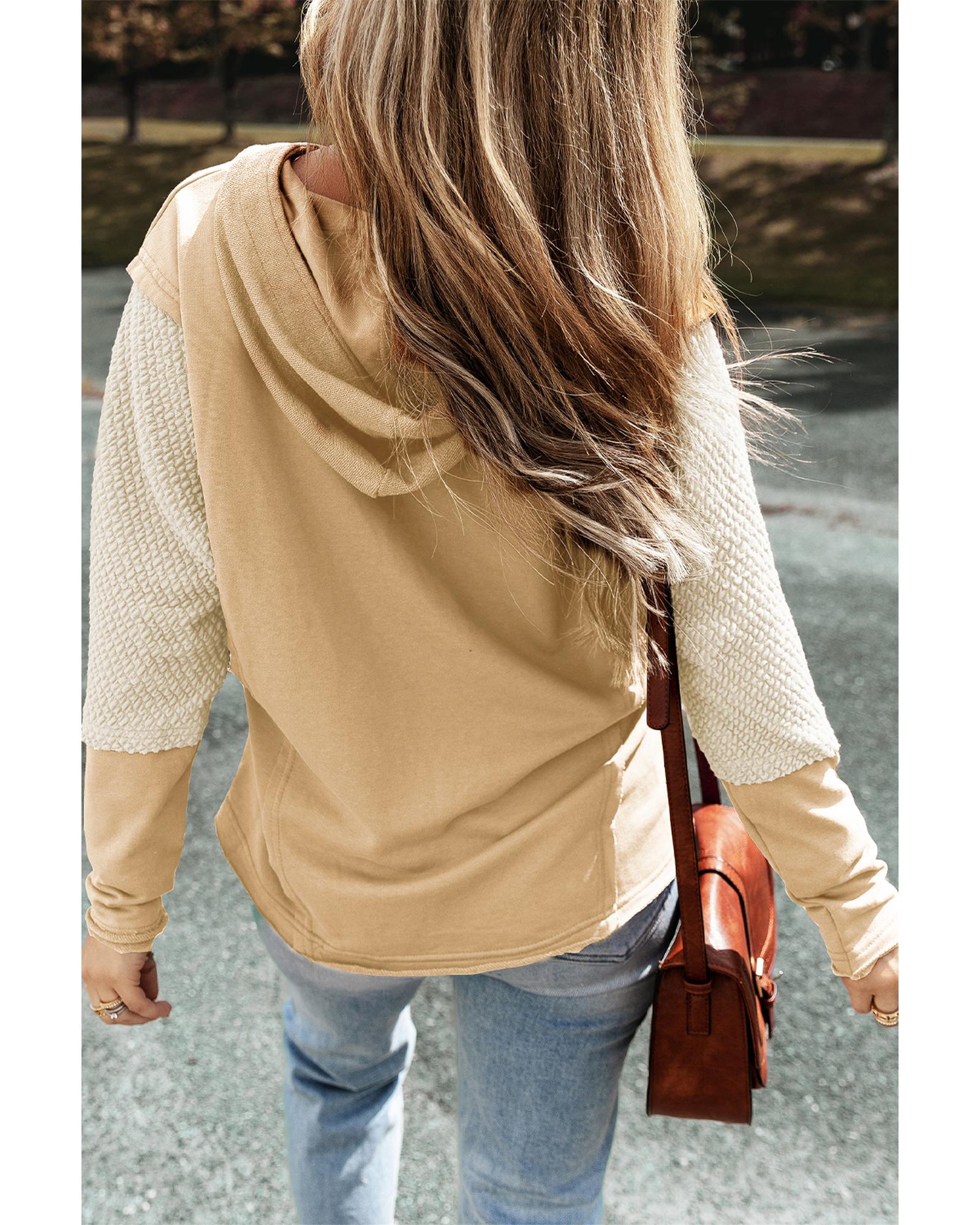 • Parchment Contrast Sleeves Patchwork Colorblock Hoodie