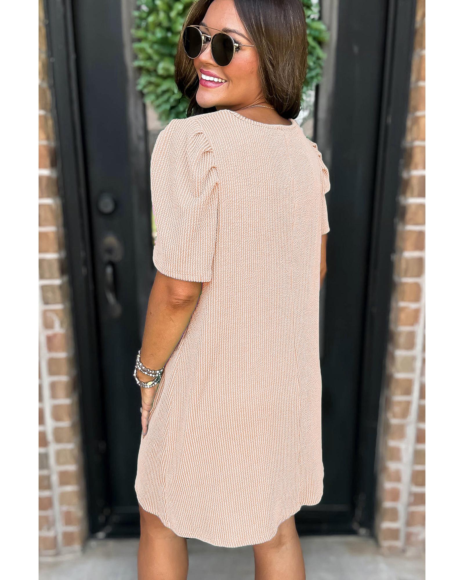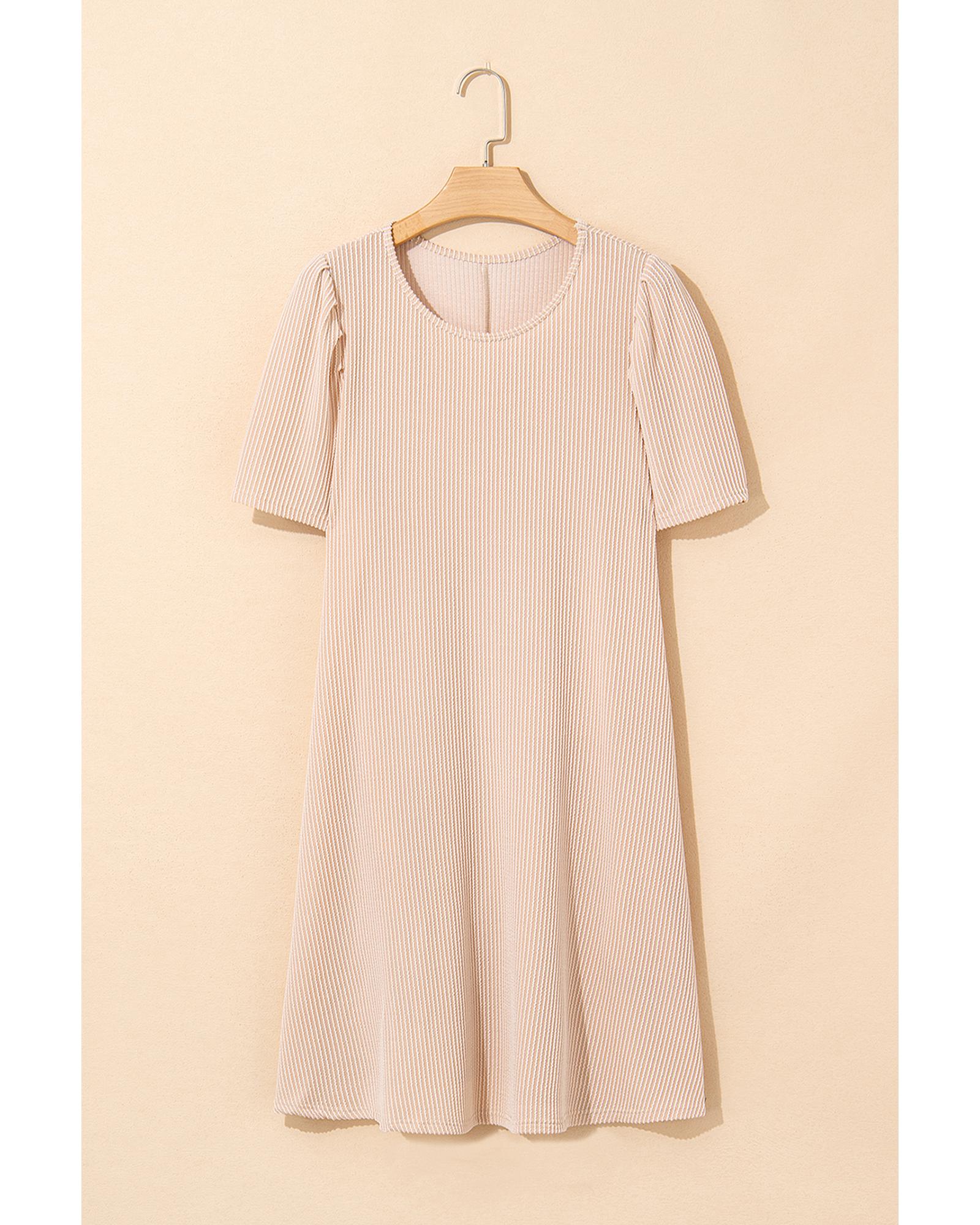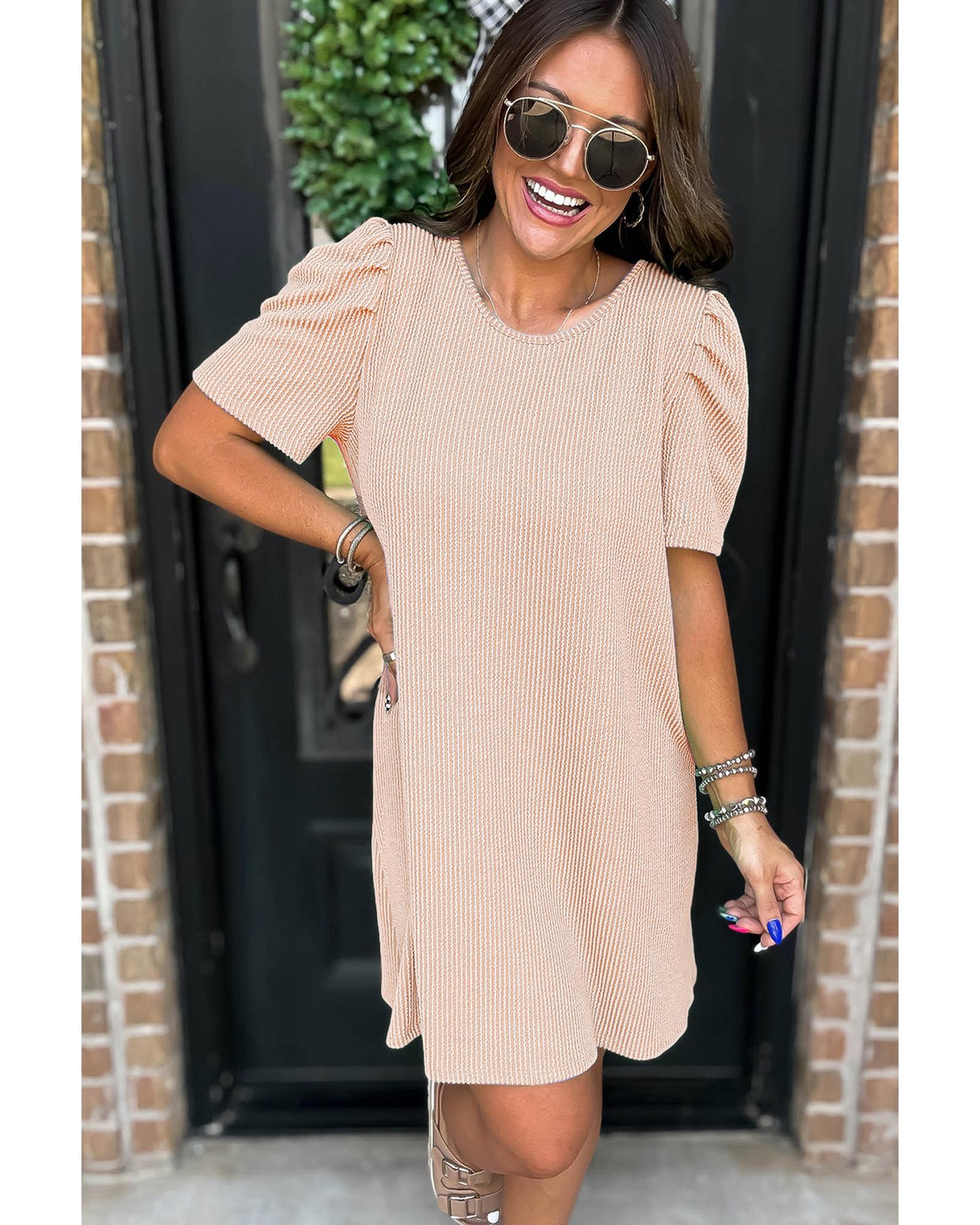Parchment Corded Knit Crew Neck Puff Sleeve Shift Mini Dress – L