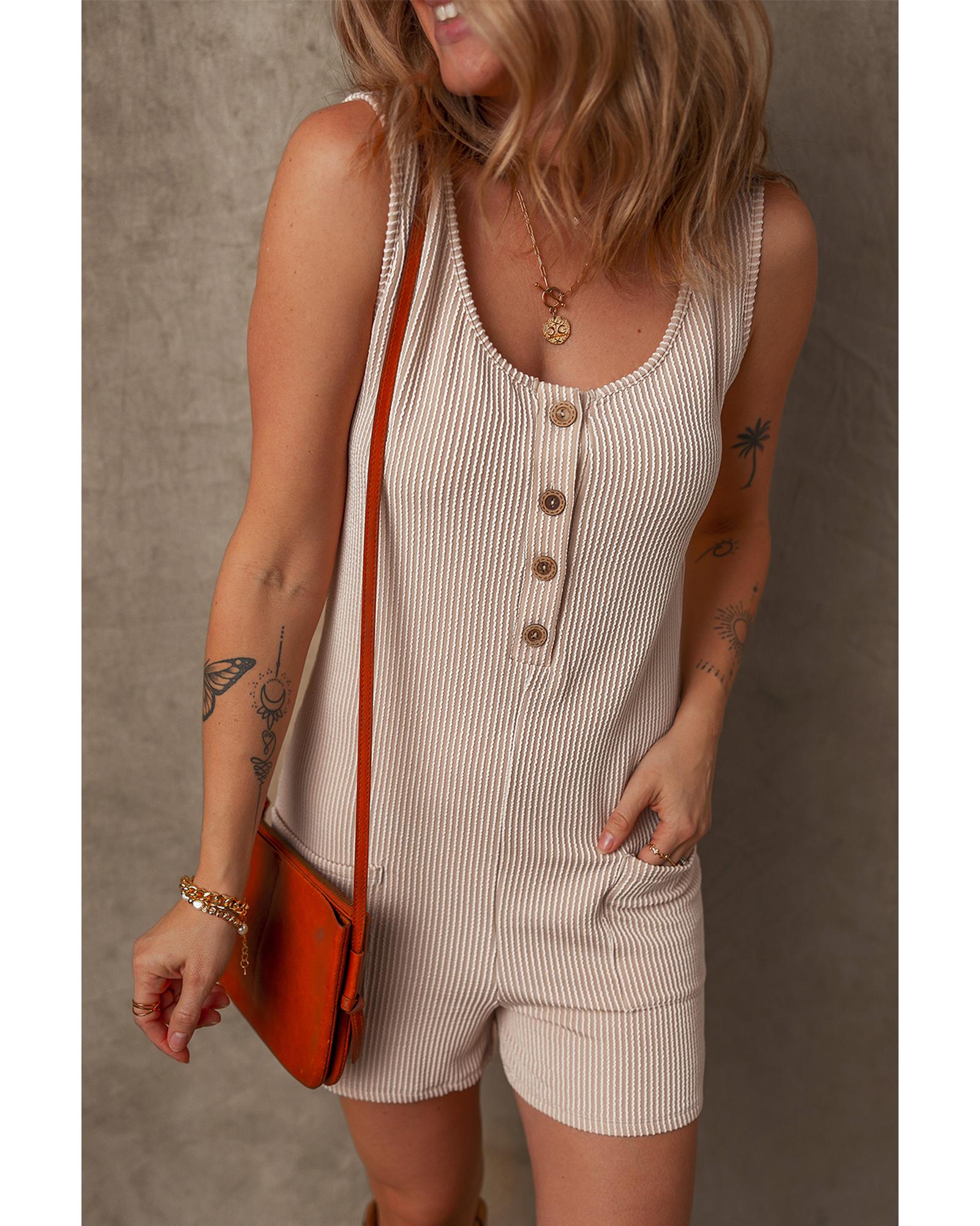 Parchment Corded Knit Side Pockets Buttoned Sleeveless Romper – XL