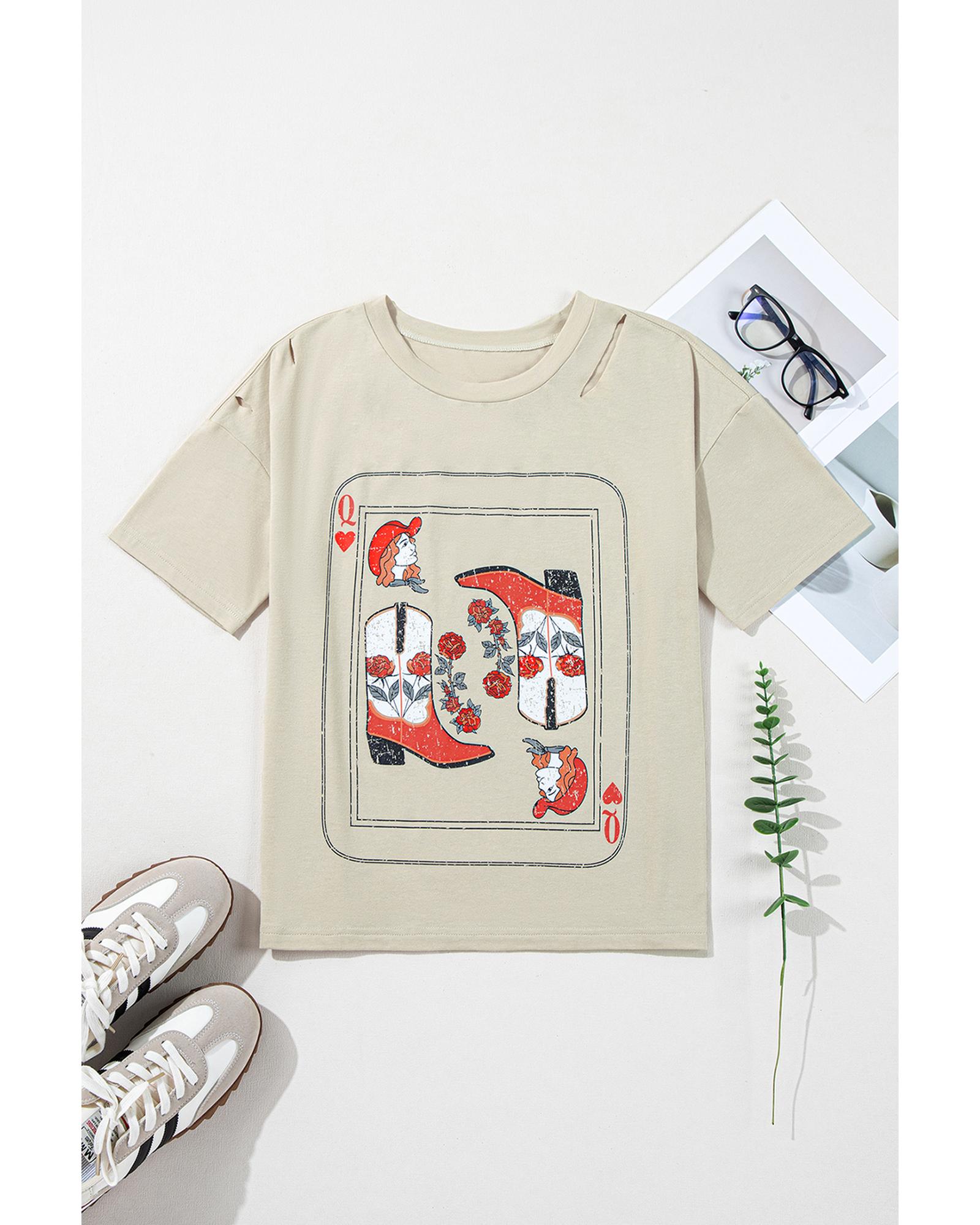 White Rhinestone Decor Bolt Graphic Ripped Western Tee - S