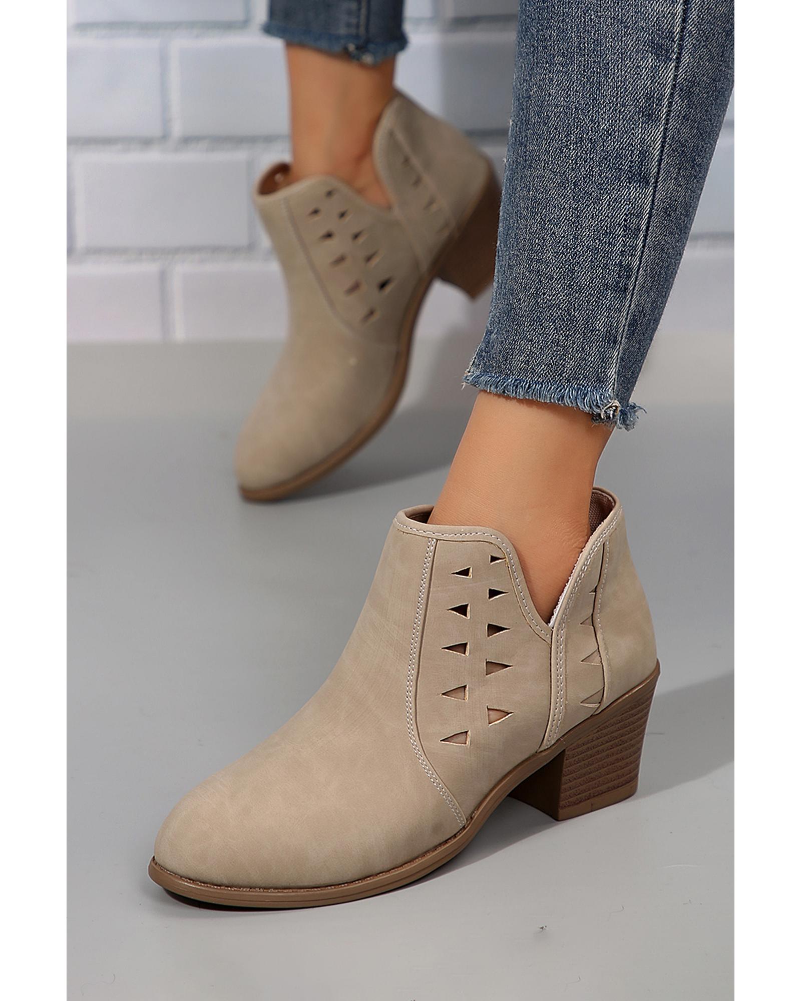 Parchment Cut Out Suede Pointed Toe Heeled Ankle Boots – 40 EU