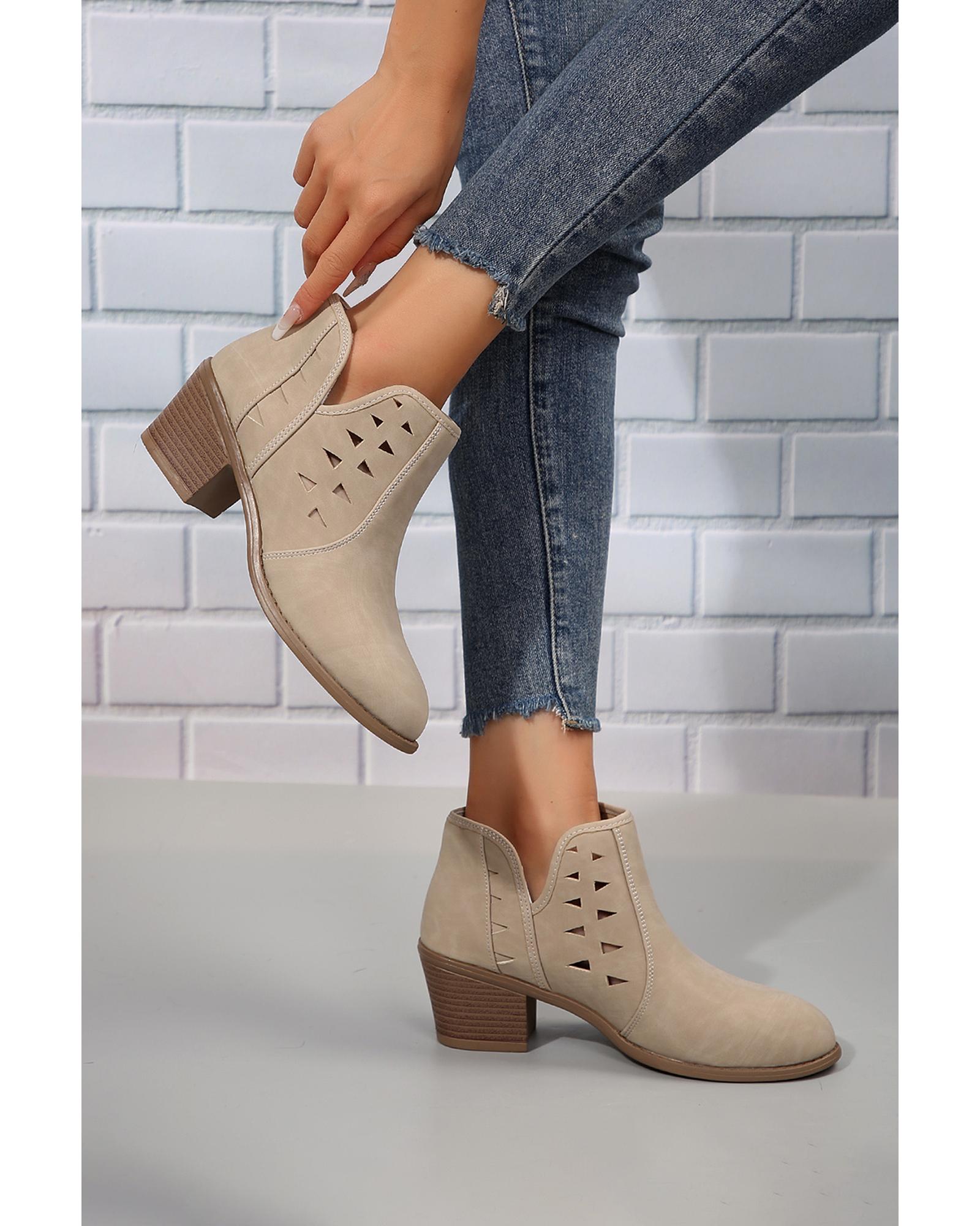 Parchment Cut Out Suede Pointed Toe Heeled Ankle Boots – 42 EU
