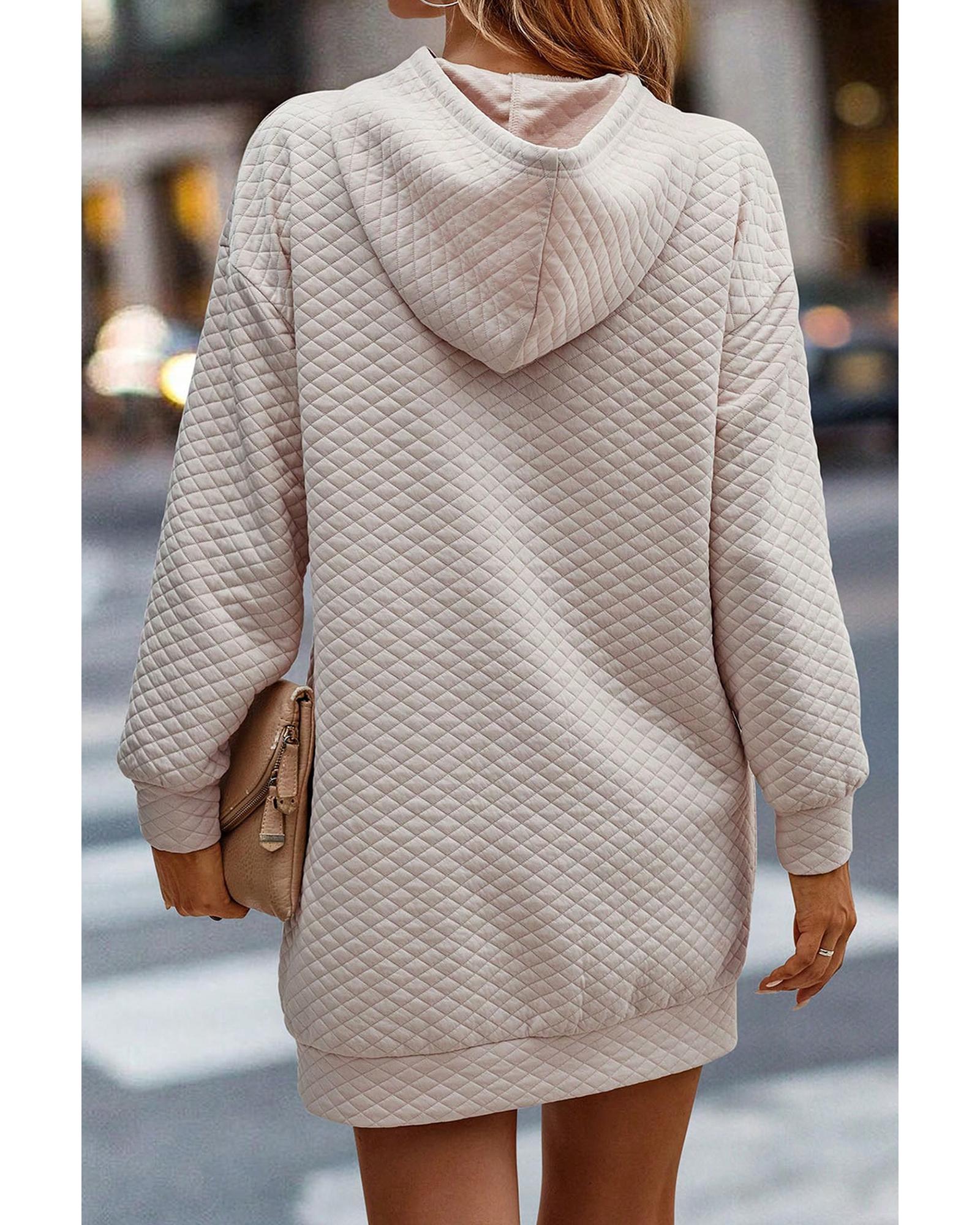 - Parchment Drawstring Kangaroo Pocket Quilted Hooded Dress