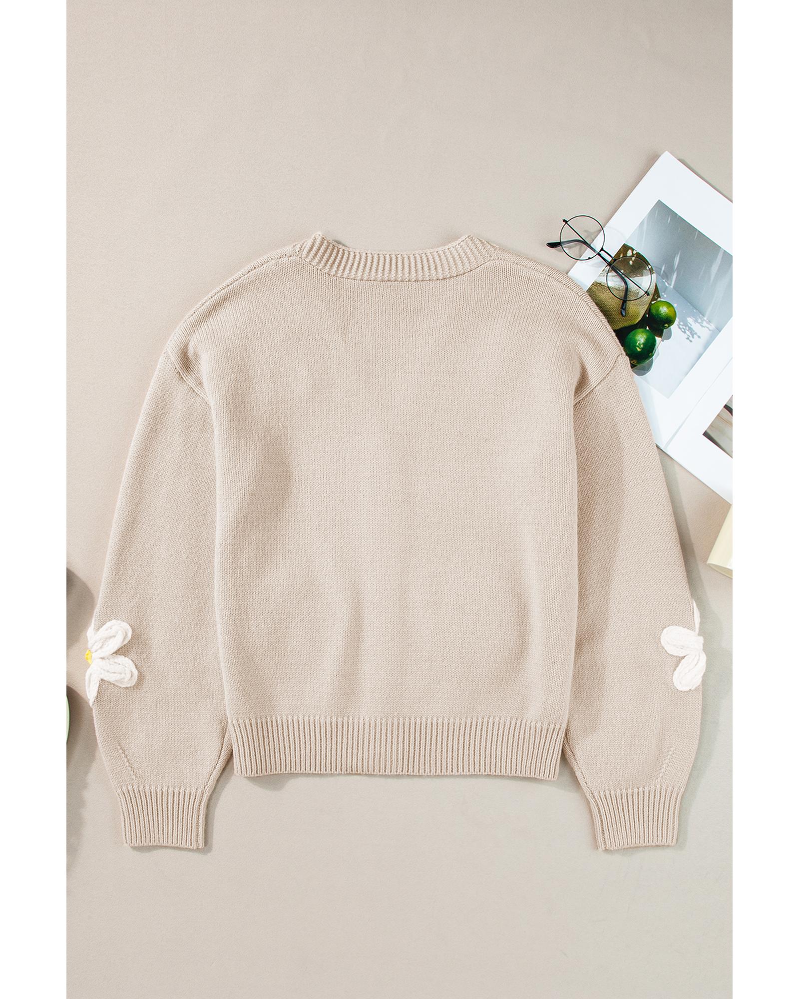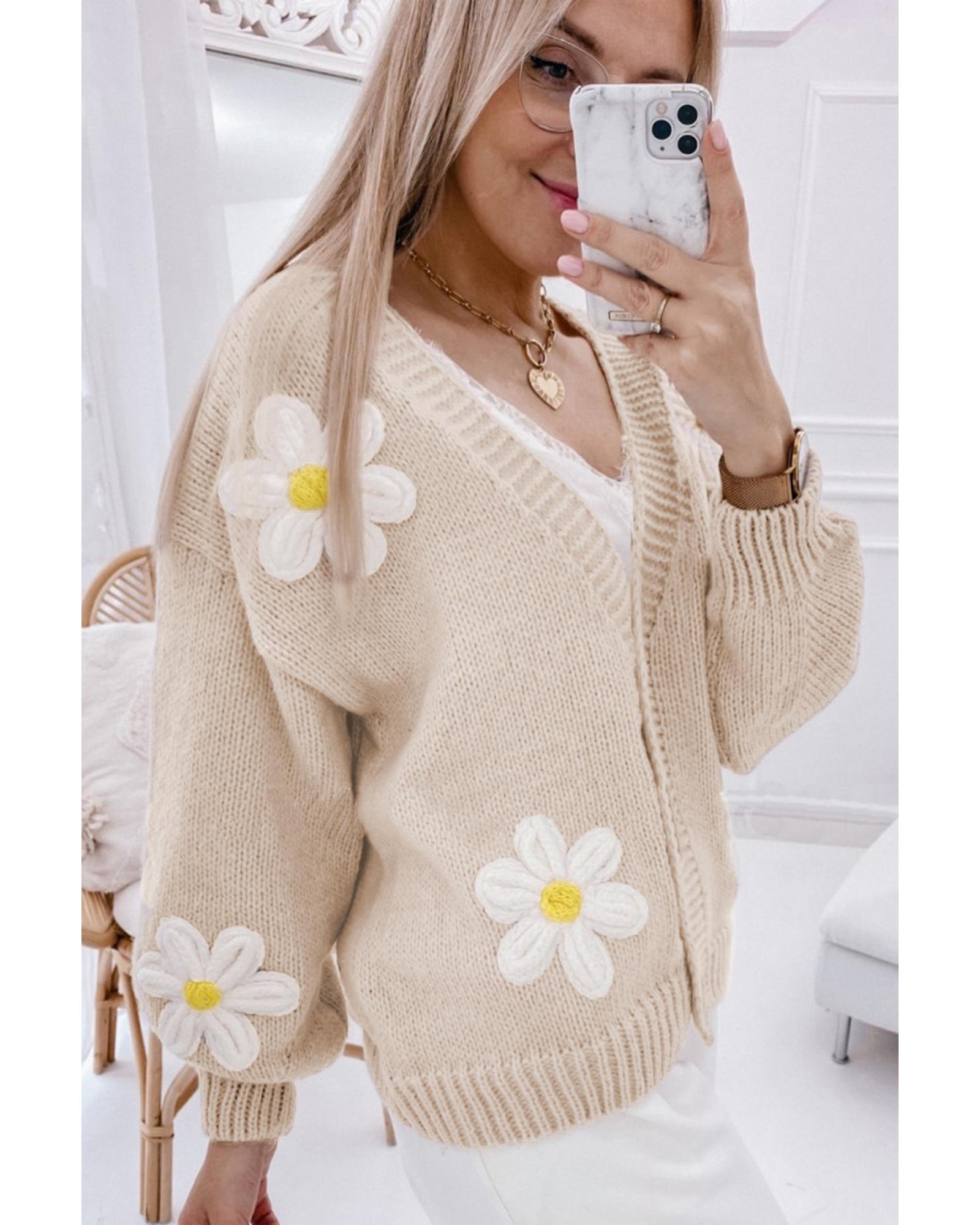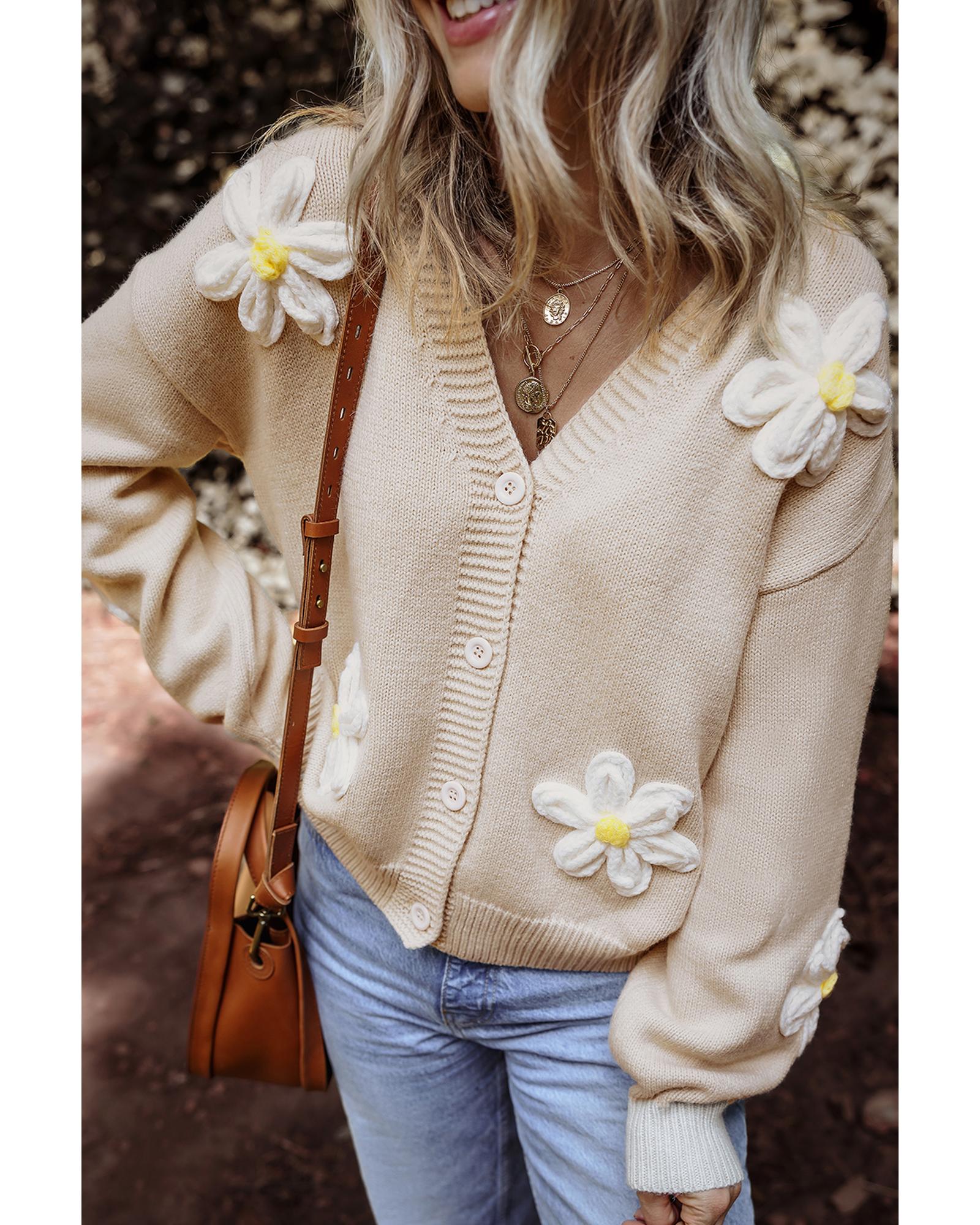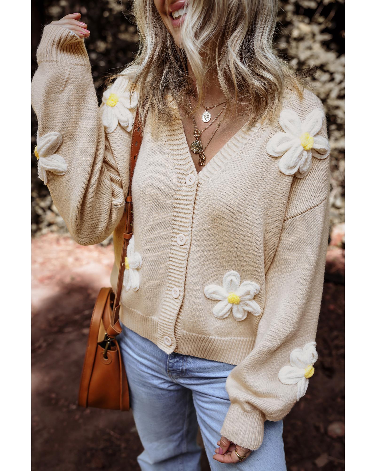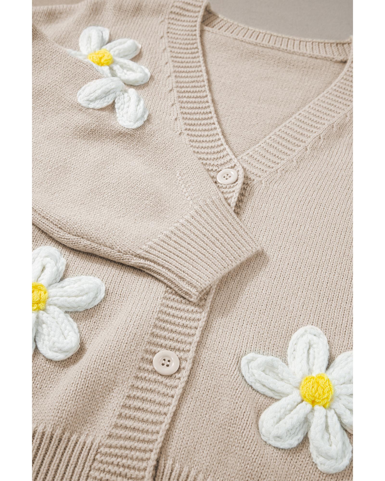 Parchment Elegant Flower Decor Button Front Cardigan – XL