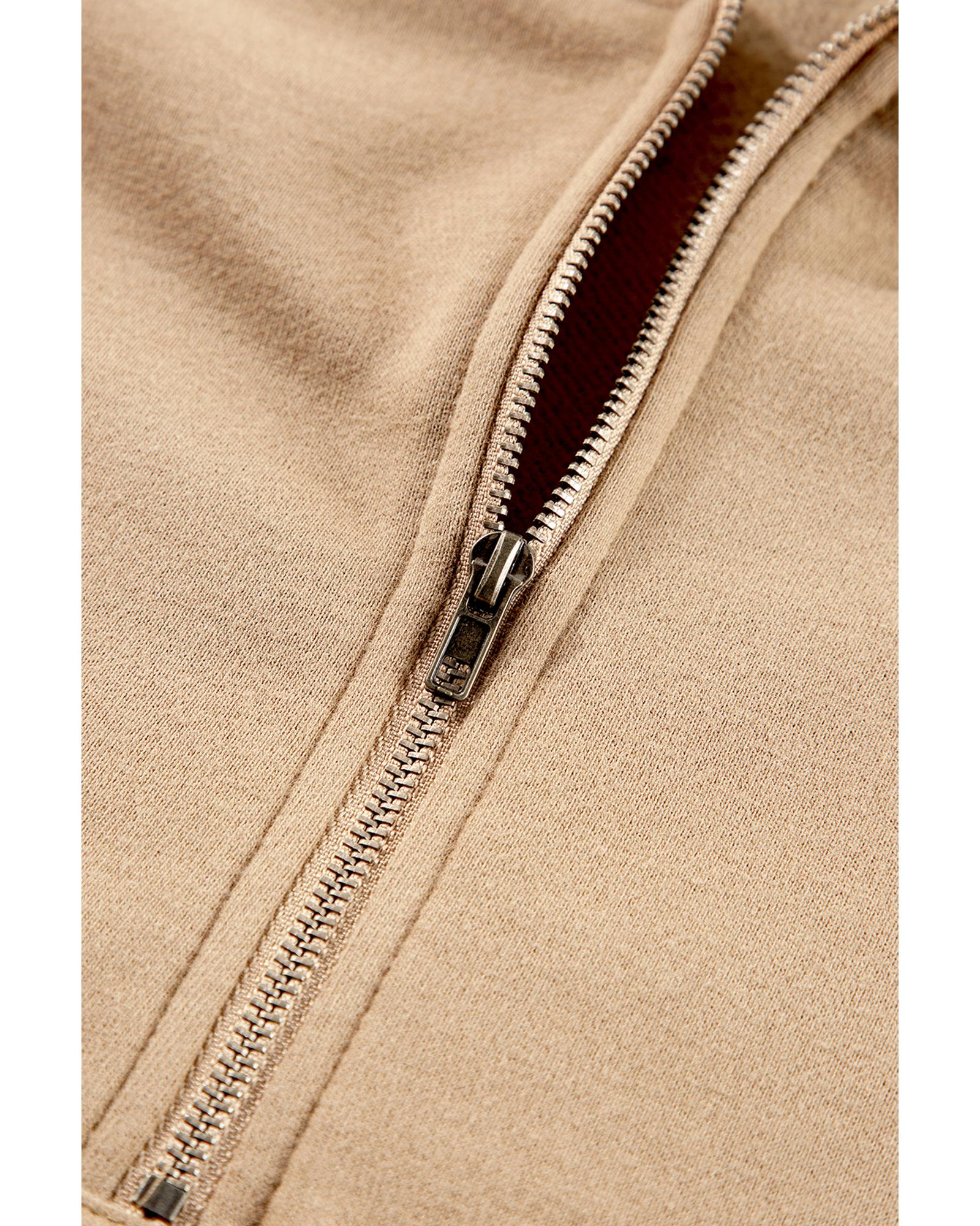 Parchment Fleece Lined Half Zipper Kangaroo Pockets Loose Hoodie – S