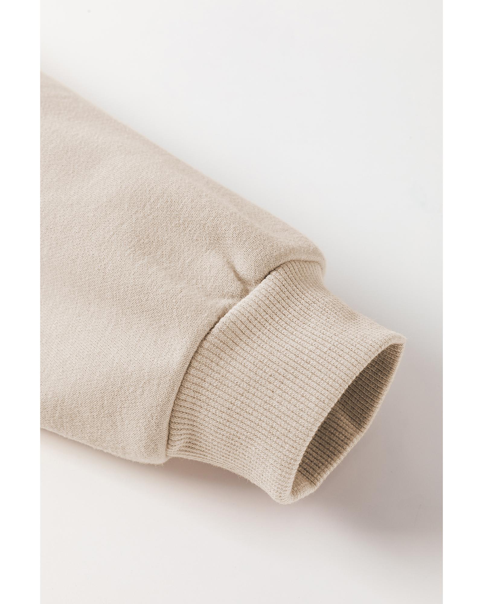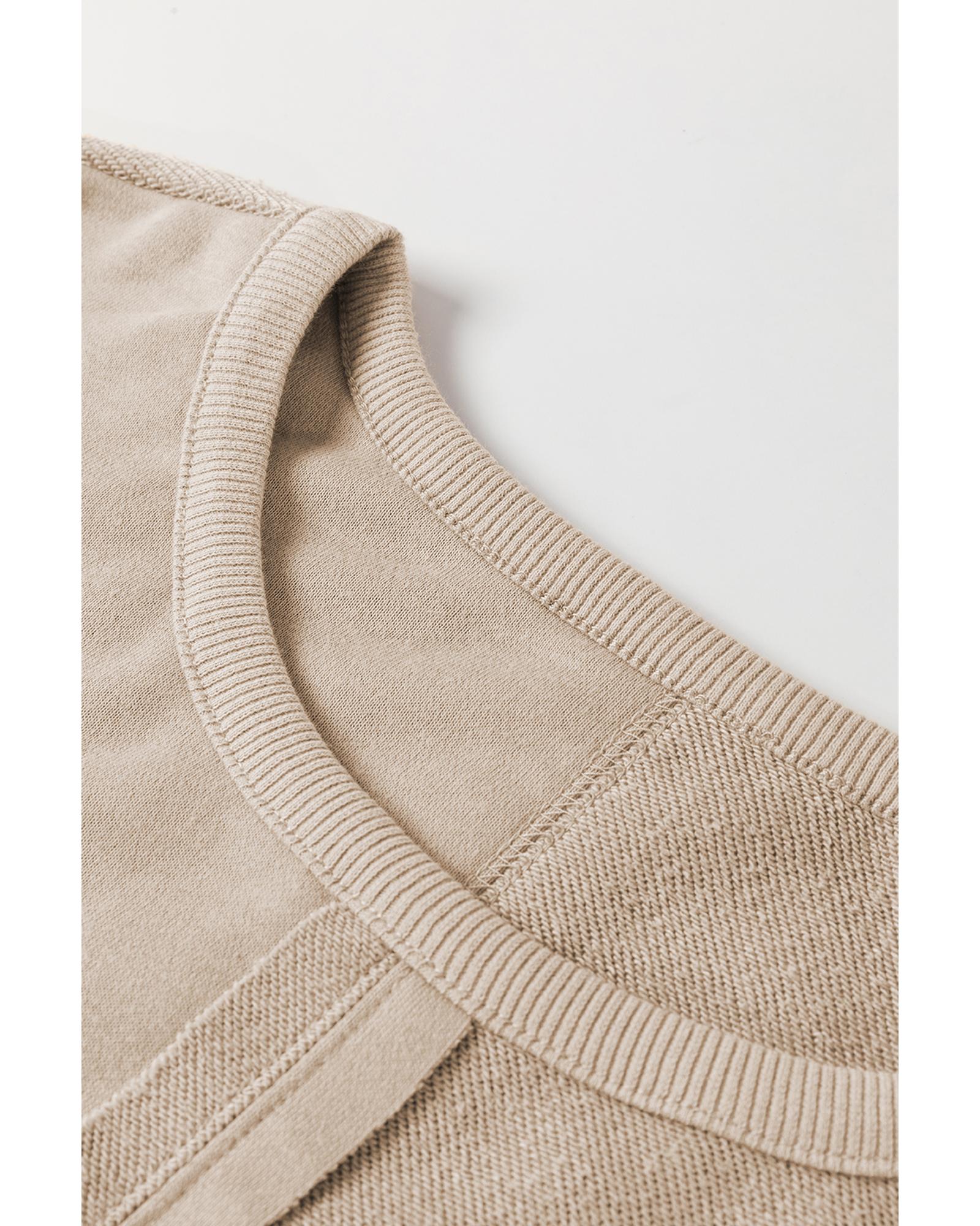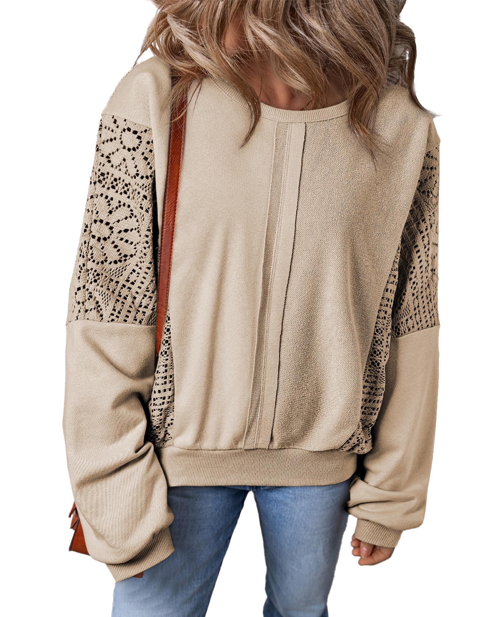 - Parchment Knit Crochet Exposed Seam Ribbed Trim Sweatshirt