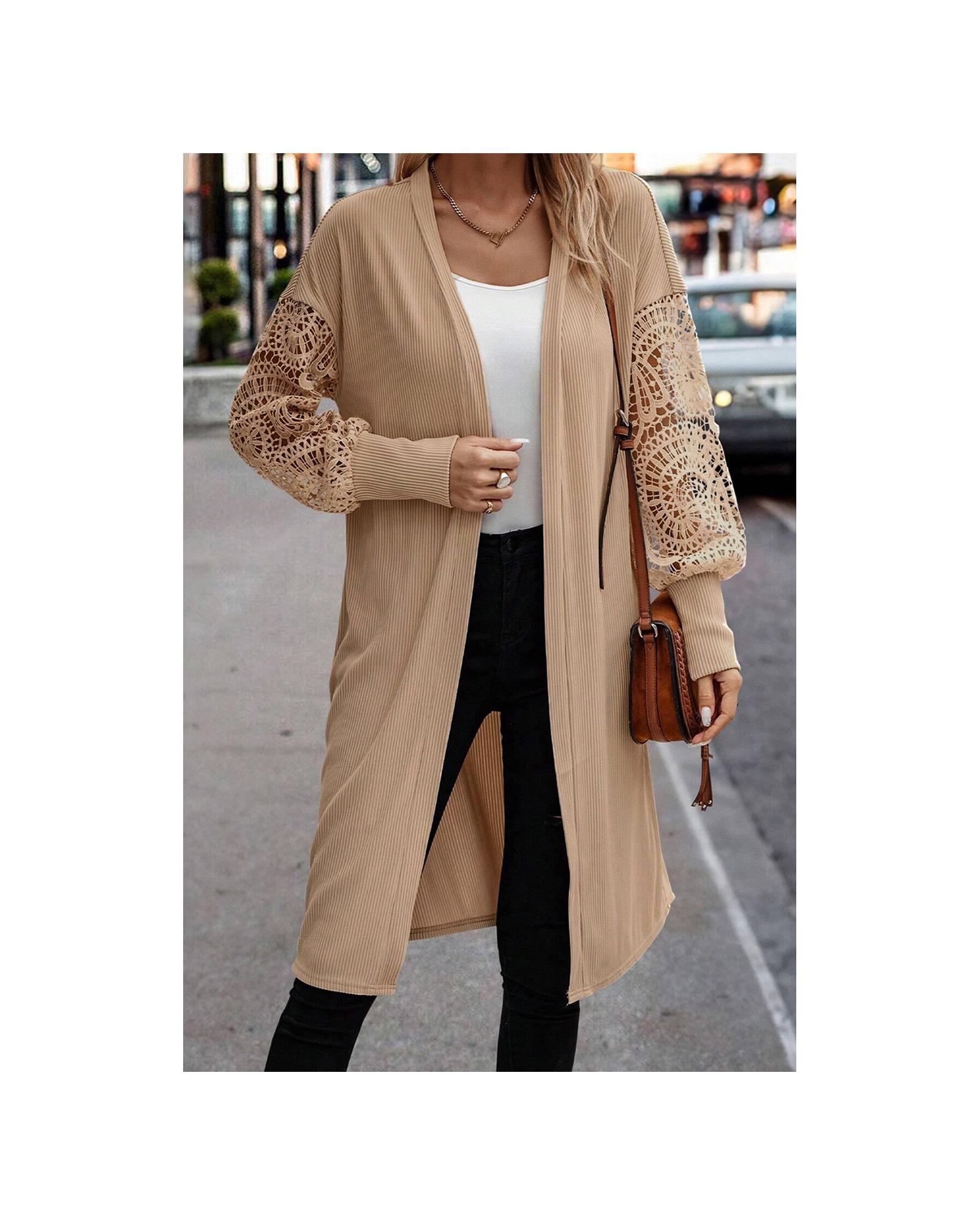 Parchment Lace Patchwork Ribbed Knit Open Front Duster Cardigan – XL